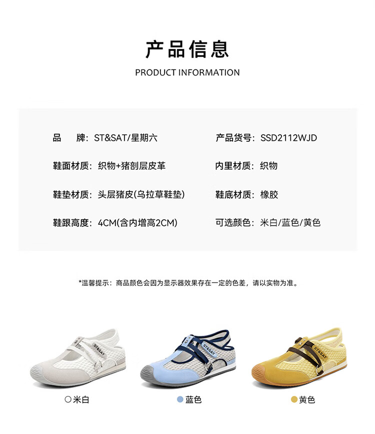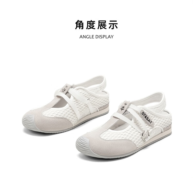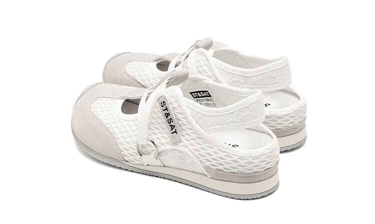 星期六时髦圆头透气休闲女鞋2025夏季新款百搭德训鞋MTSSD2112WJD 米白 35