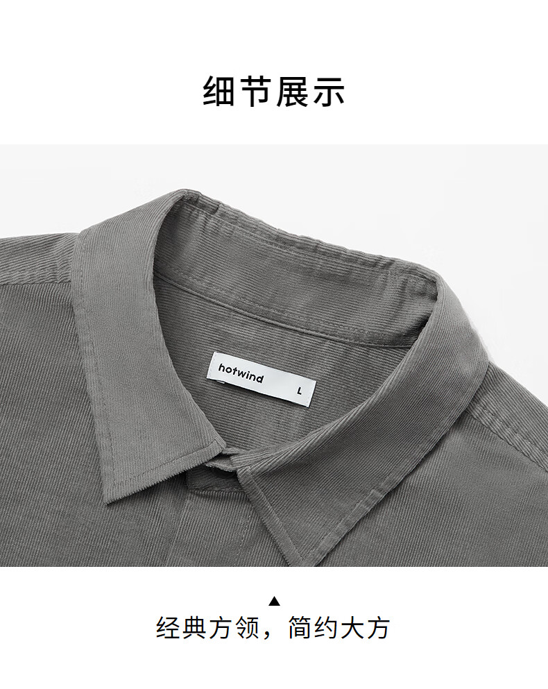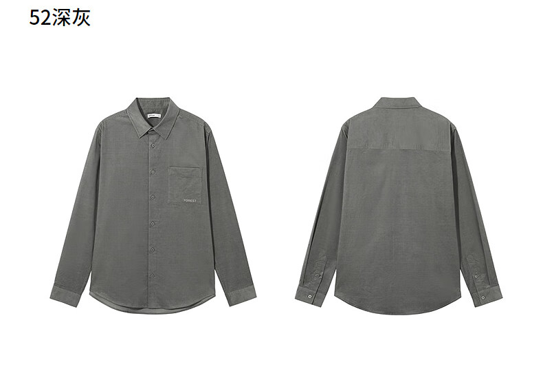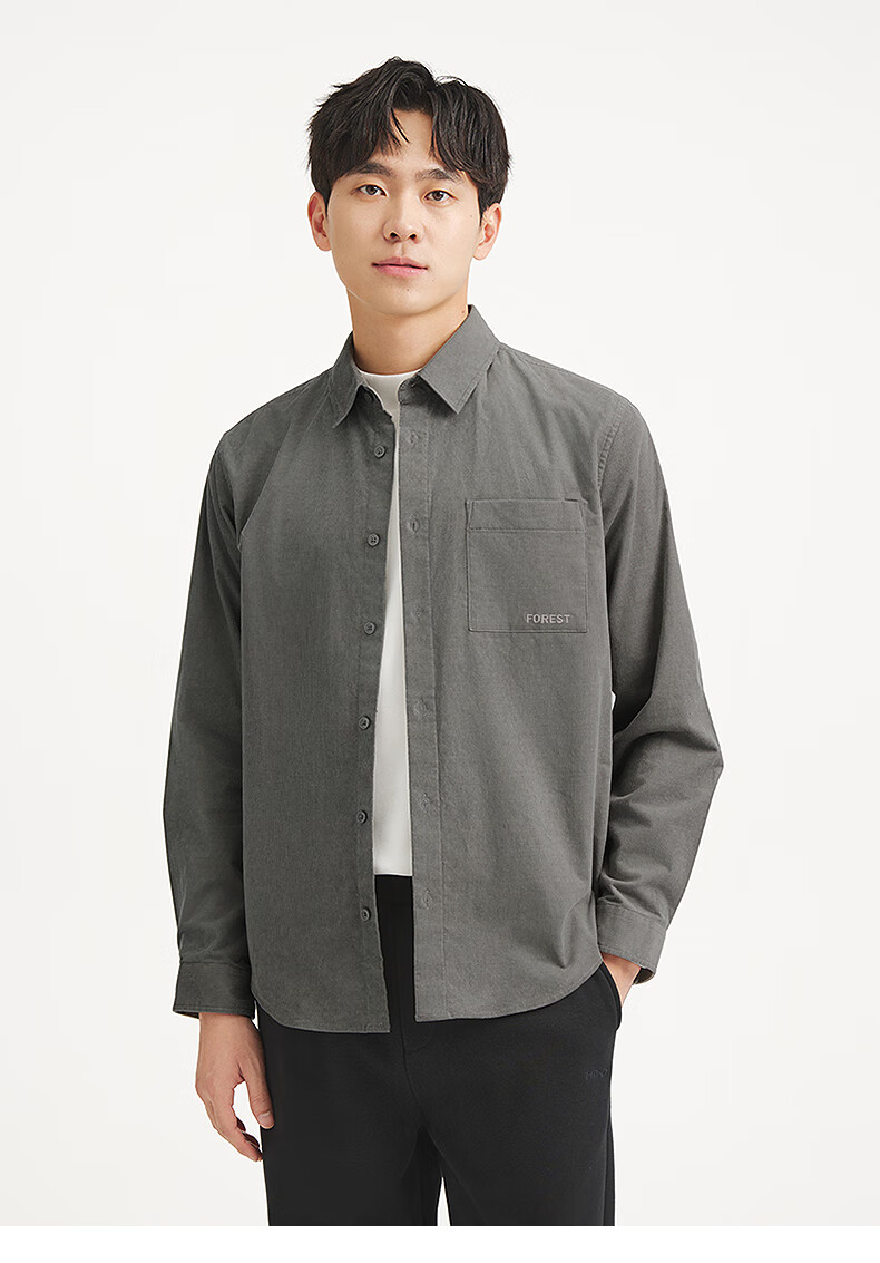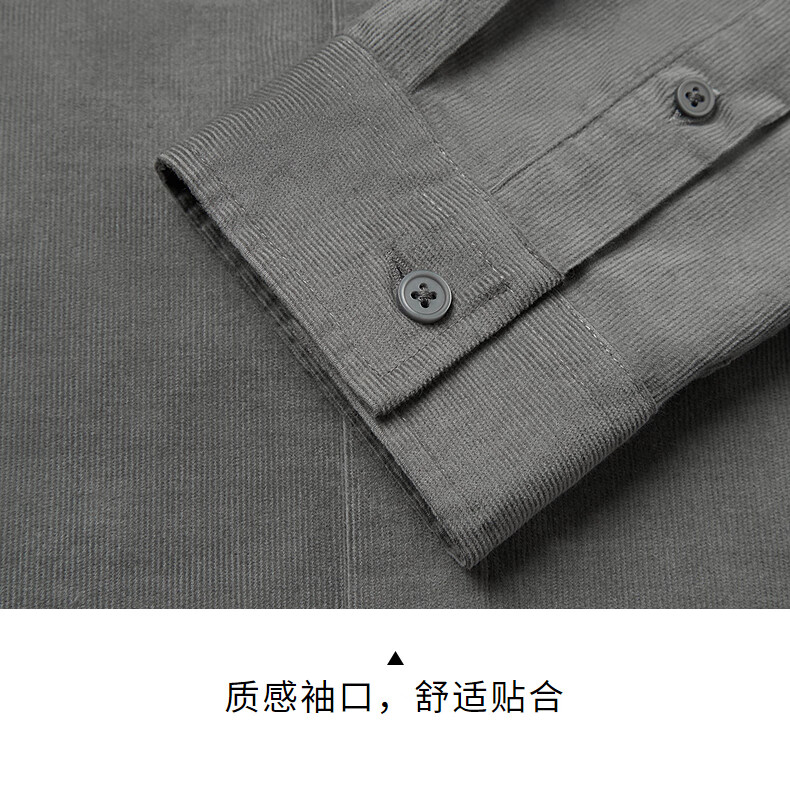 热风男士长袖衬衫2025年秋季新款复古灯芯绒衬衣早秋轻薄外套上衣 52深灰 M