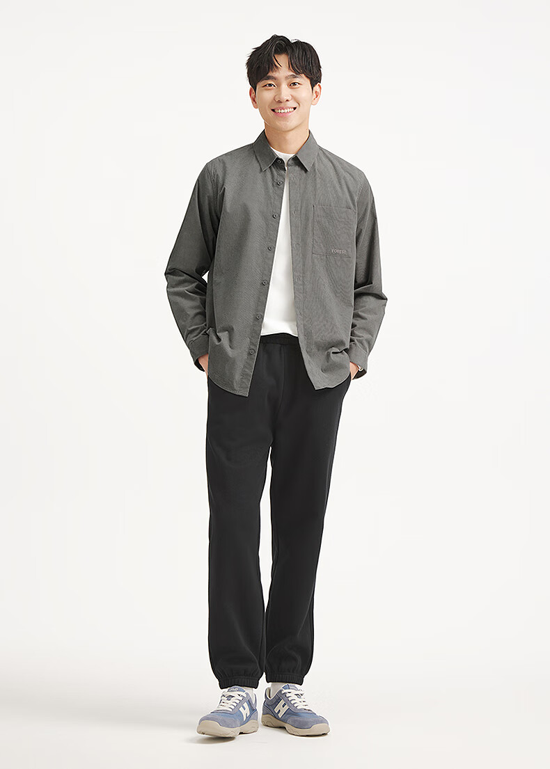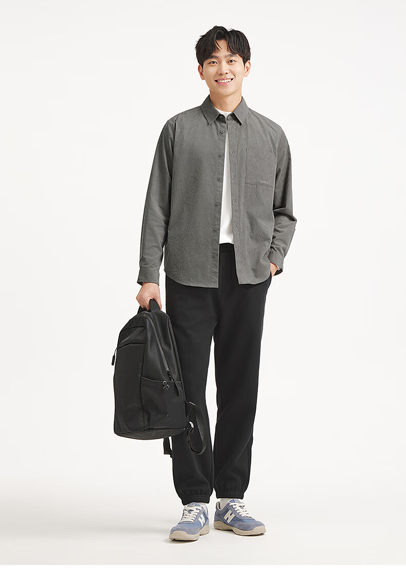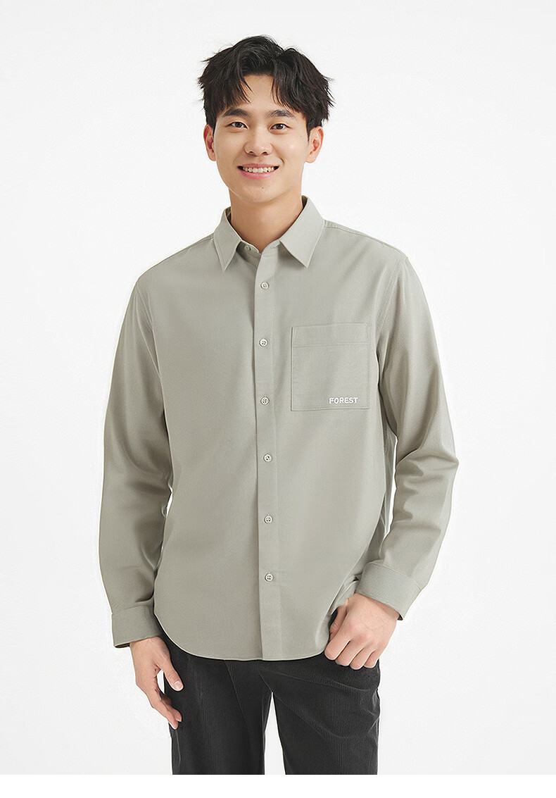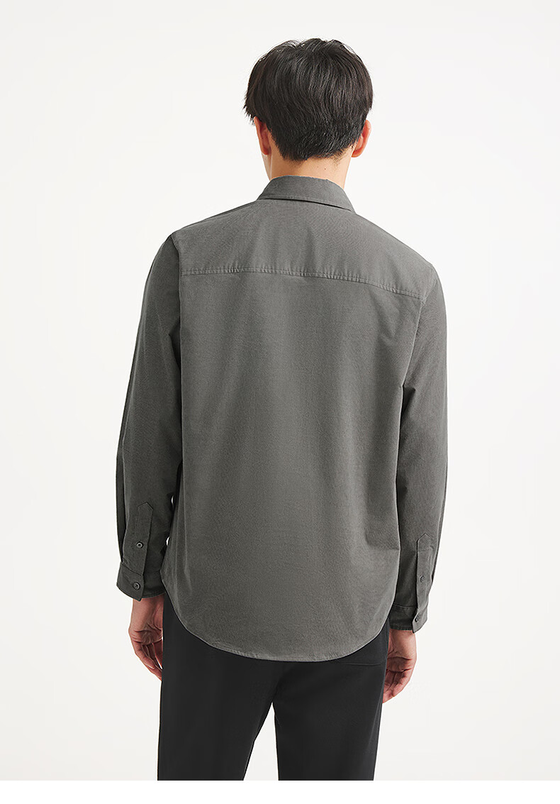 热风男士长袖衬衫2025年秋季新款复古灯芯绒衬衣早秋轻薄外套上衣 52深灰 M