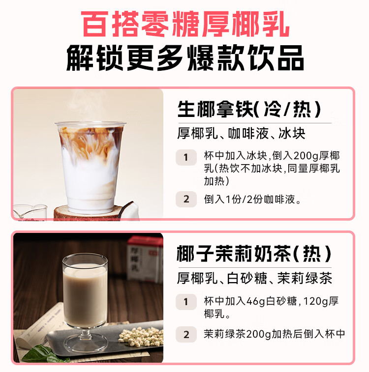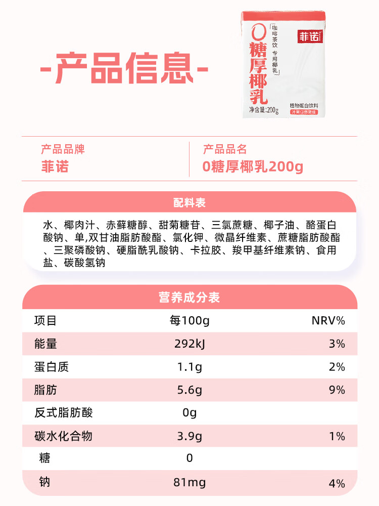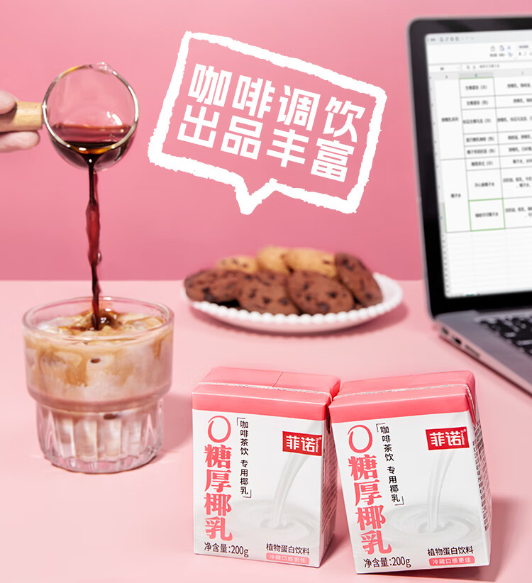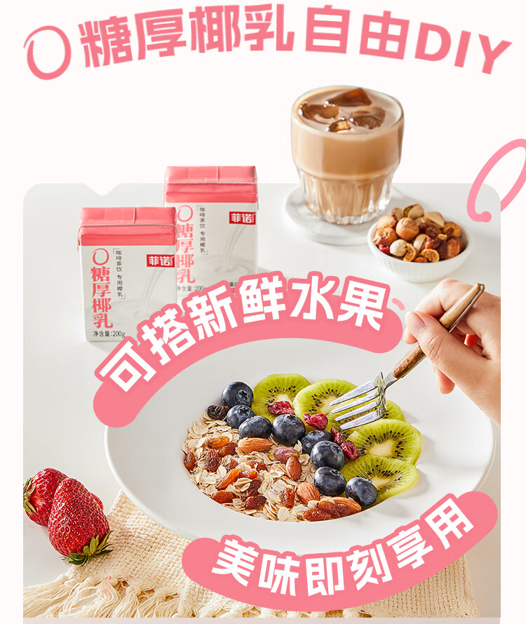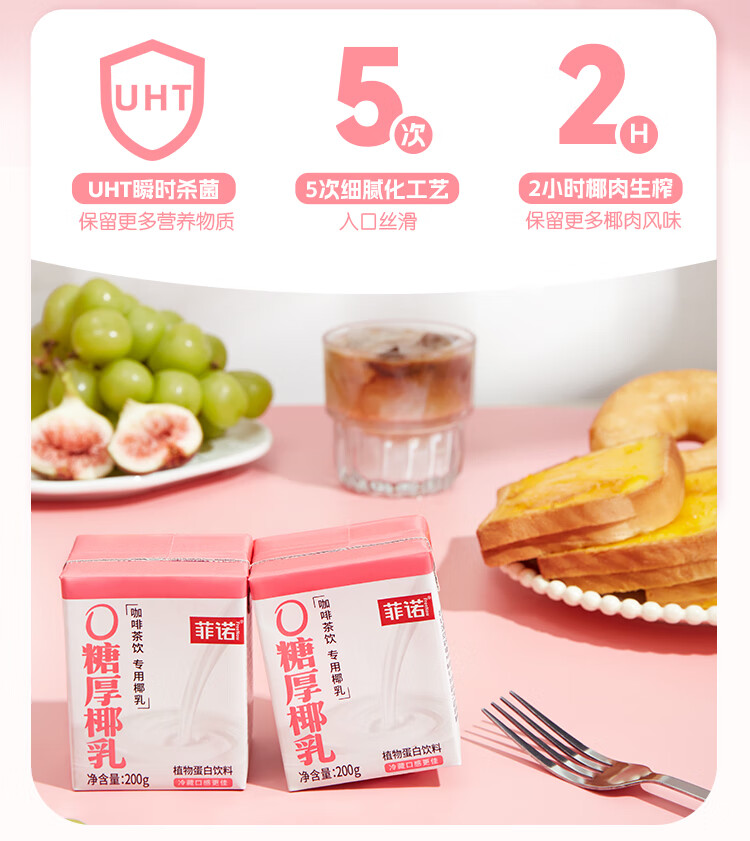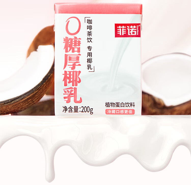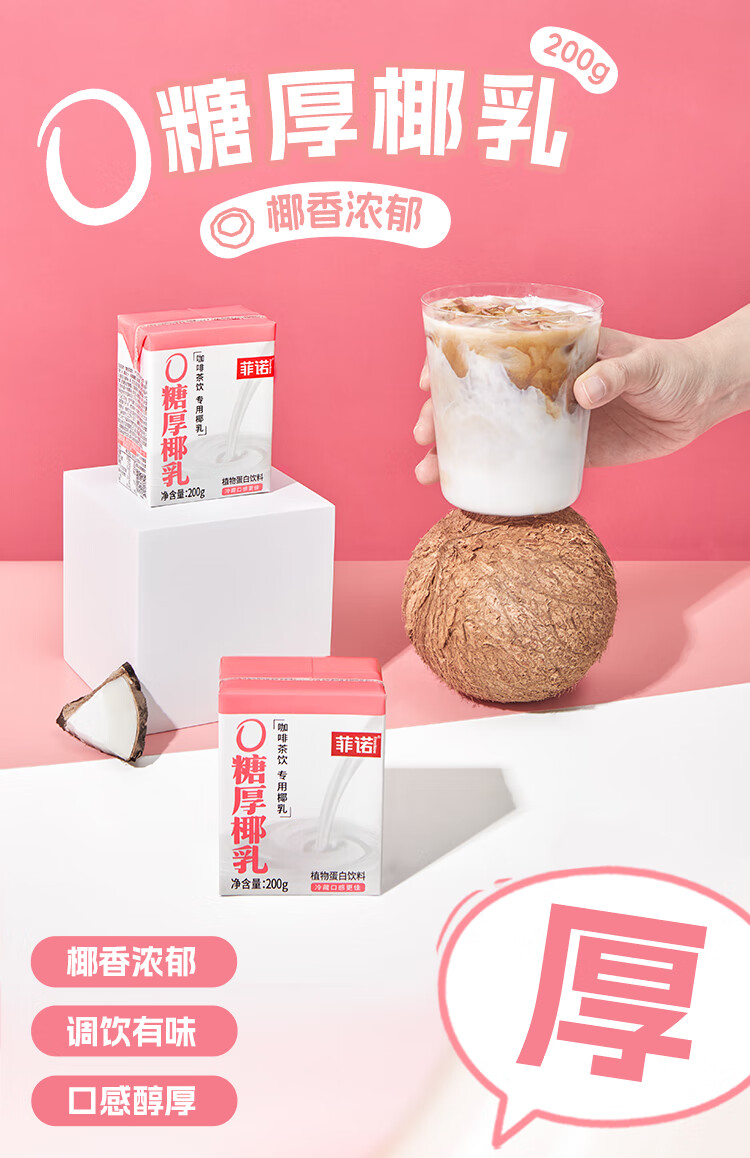 菲诺 0糖厚椰乳 椰奶椰汁咖啡奶茶调饮伴侣 200g*24盒 箱装 送礼