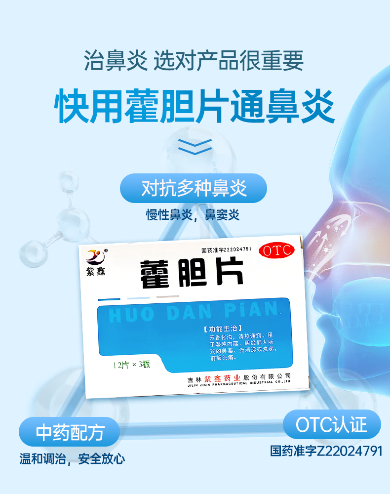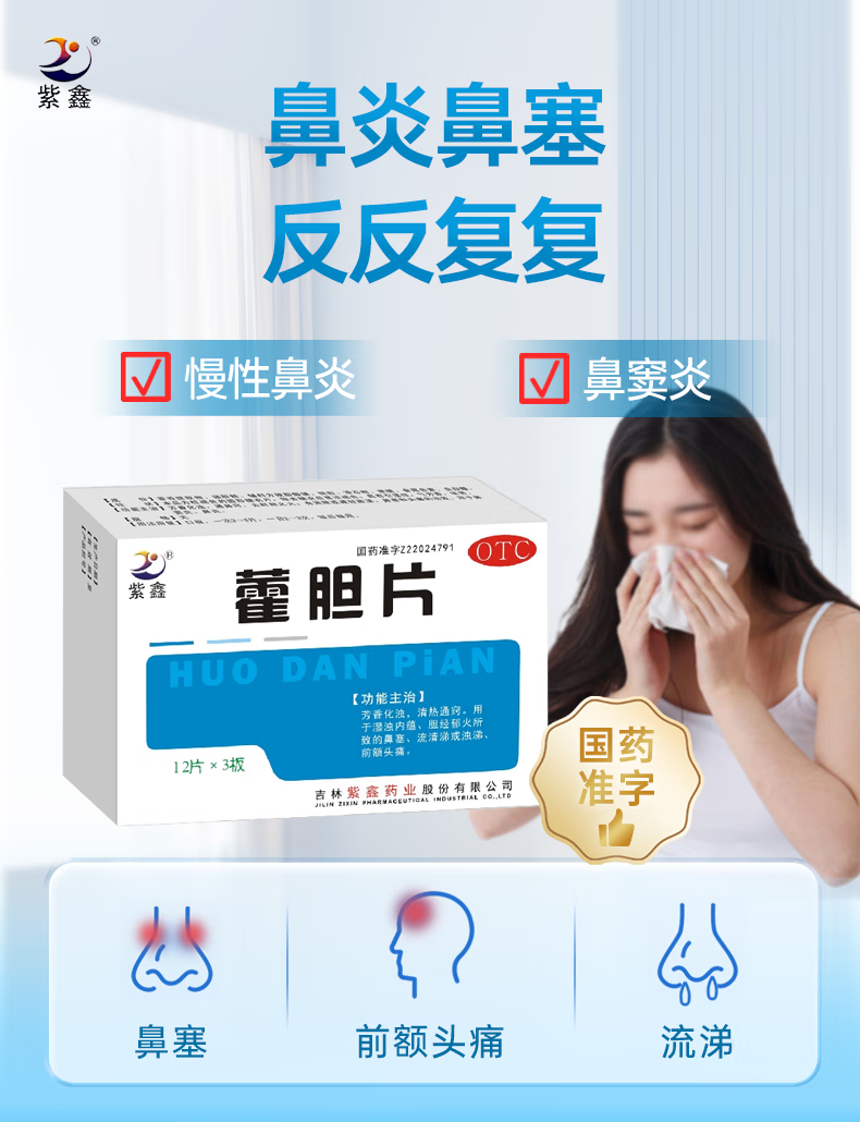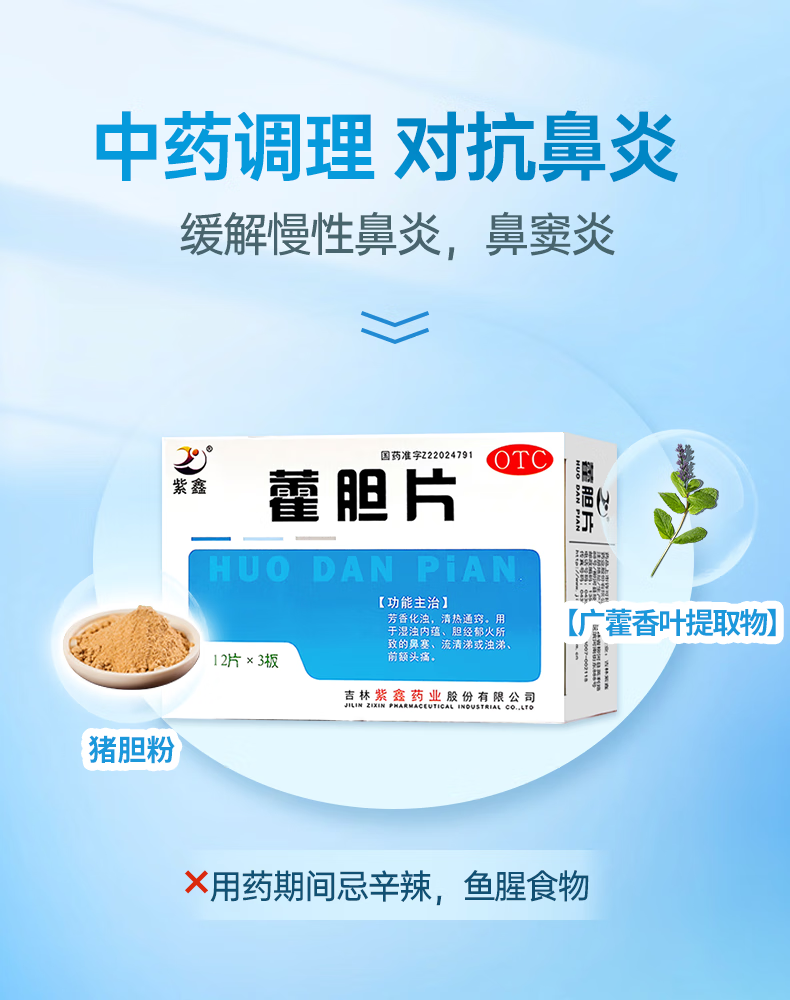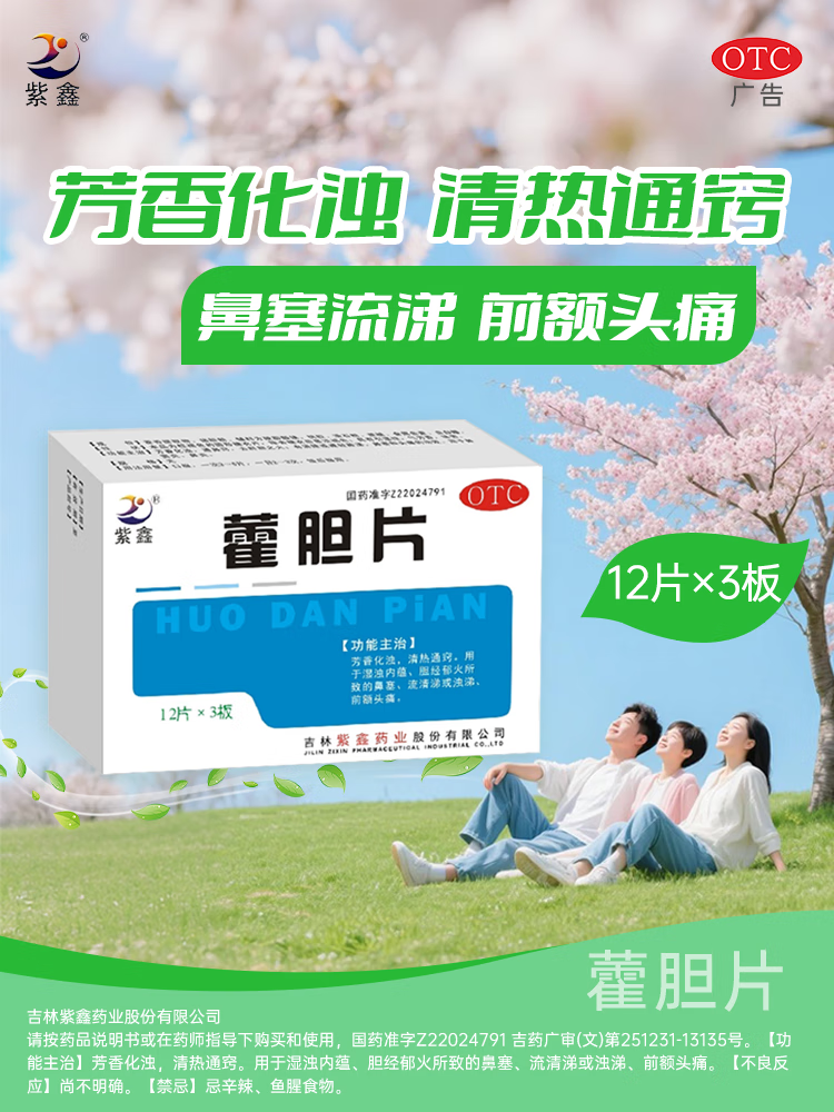 [紫鑫]藿胆片12片*3板/盒芳香化浊清热通窍湿浊内蕴胆经郁火所致的鼻塞流清涕或浊涕前额头痛京东自营