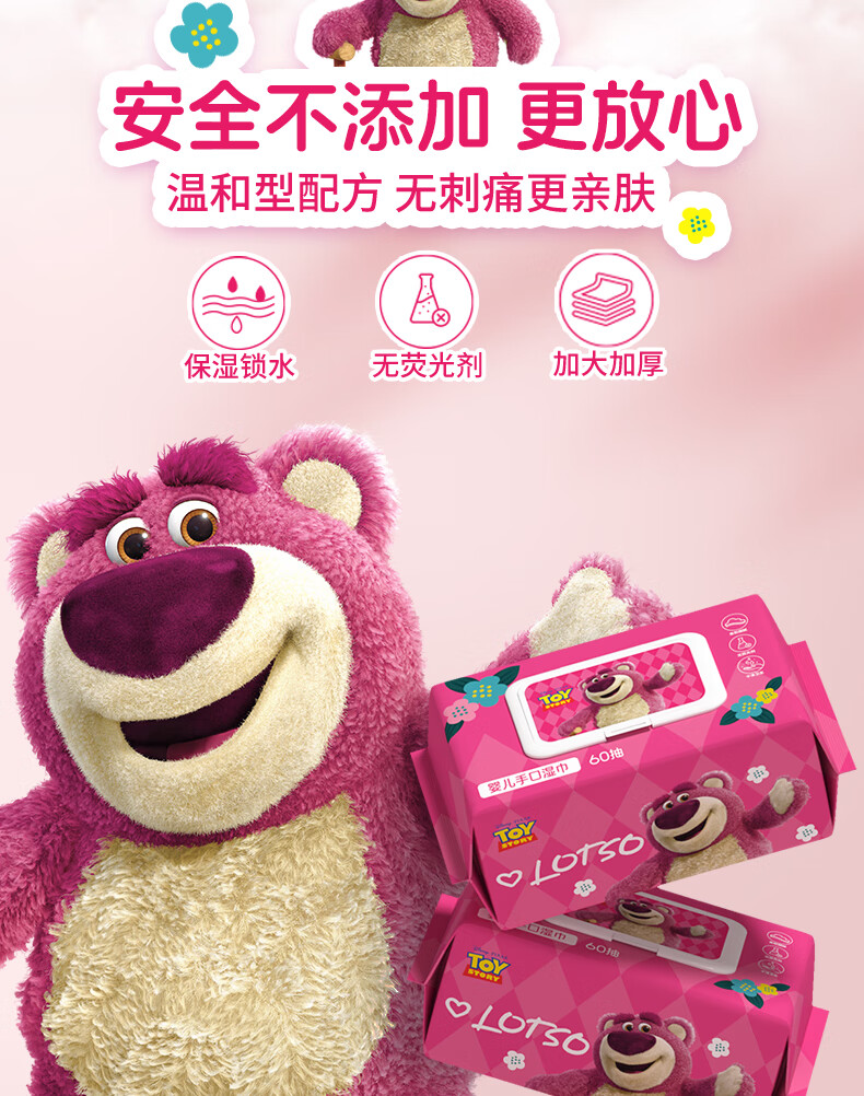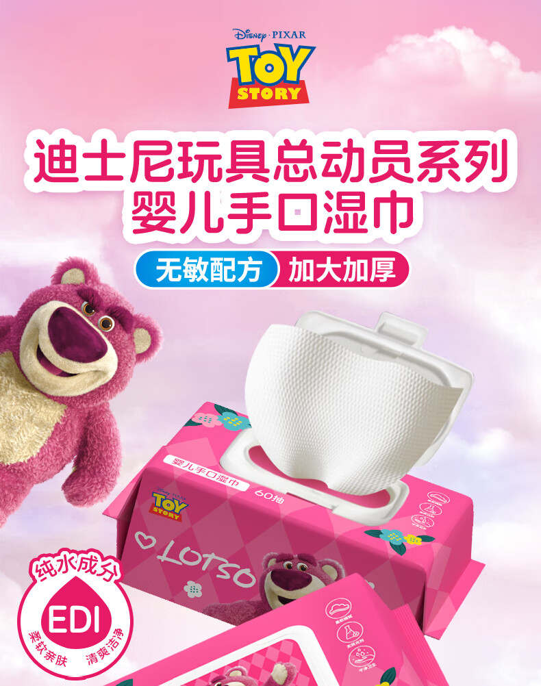 迪士尼(Disney)正版授权 湿巾婴幼儿手口专用 加大加厚不掉絮EDI纯水擦脸湿纸巾 【家庭囤货】60抽*10包