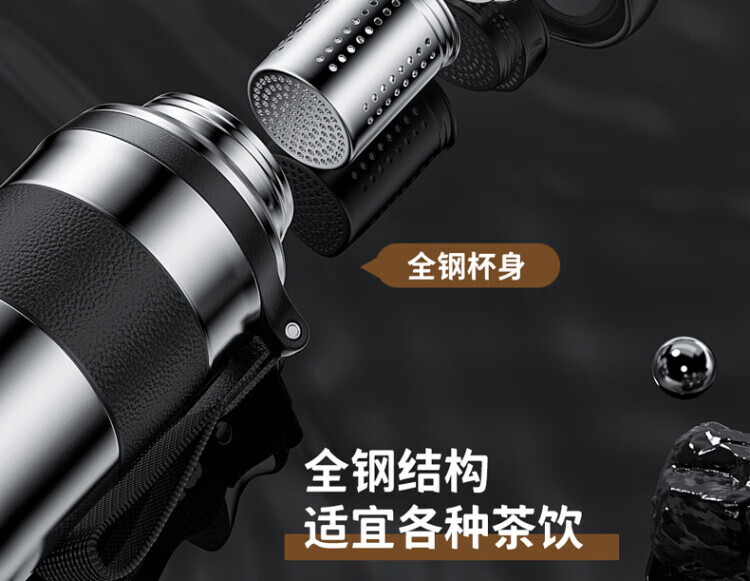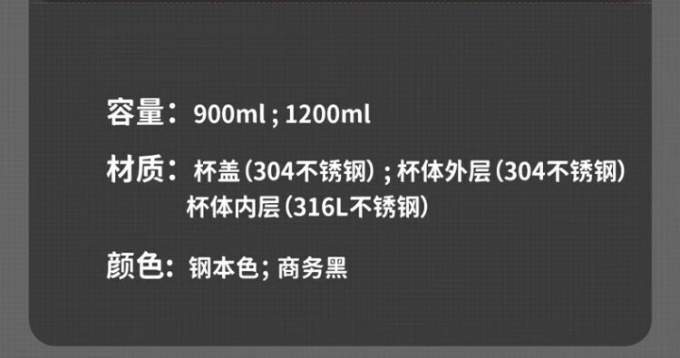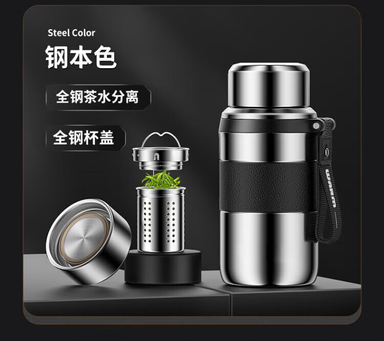 WCZ德国全钢保温杯便携大容量316不锈钢男士水杯子泡茶杯壶2025新款 900ml钢本色