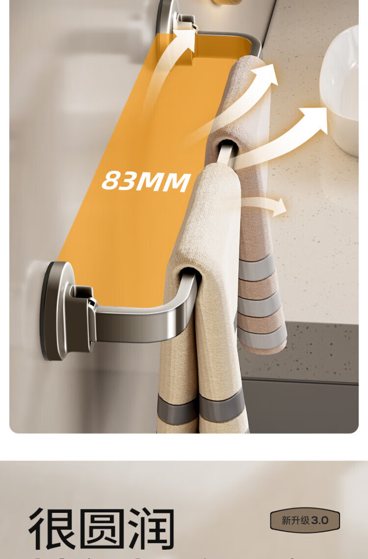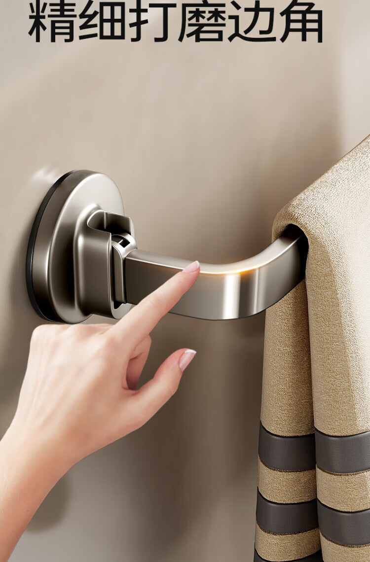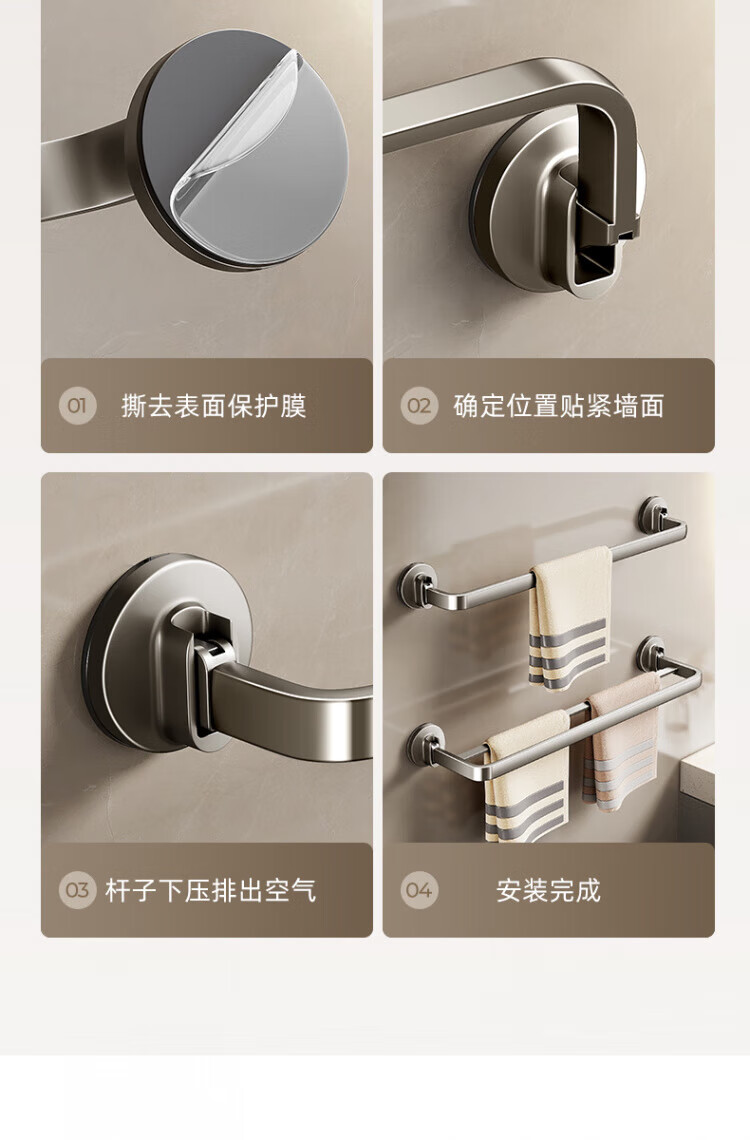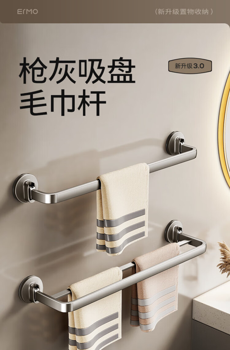 WCZ德国吸盘毛巾架子卫生间免打孔枪灰浴室毛巾杆收纳置物挂架壁挂双 【枪灰单杆】40CM|强劲吸附