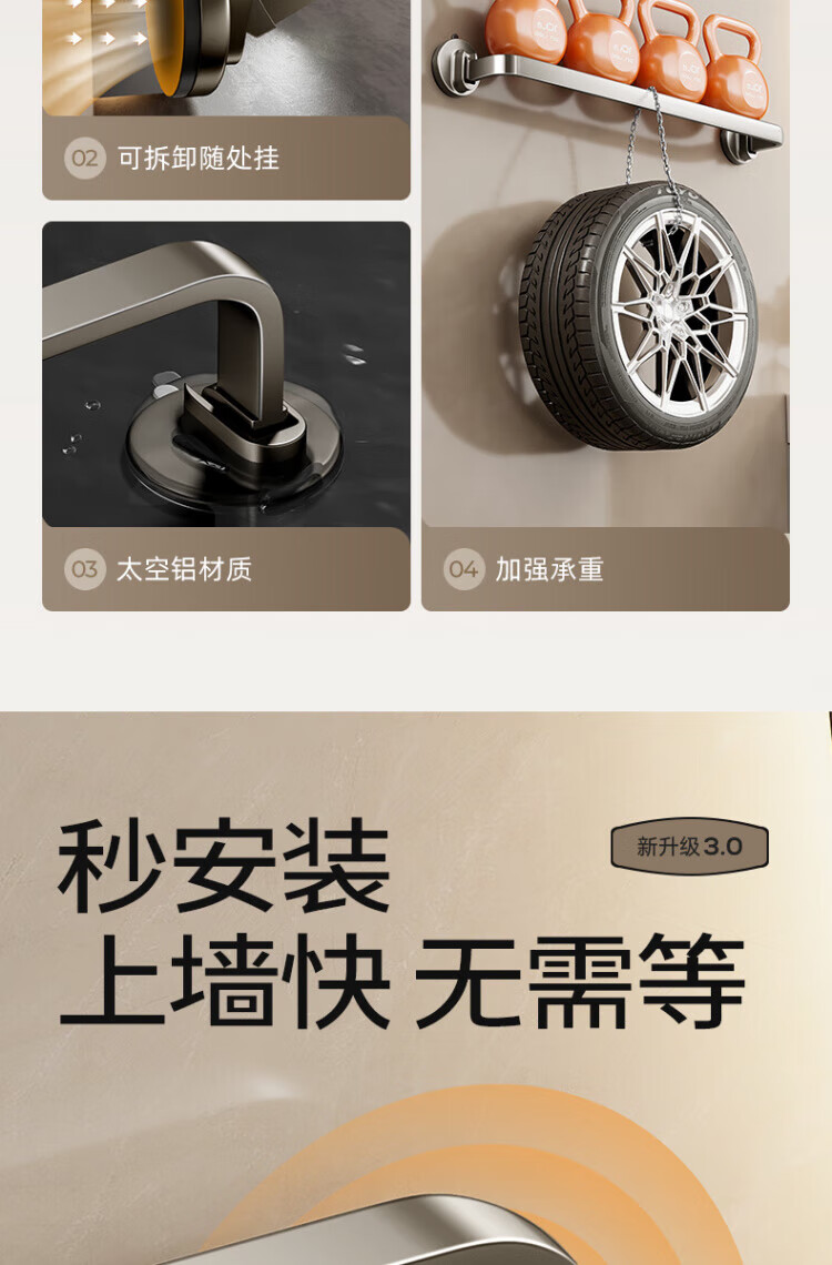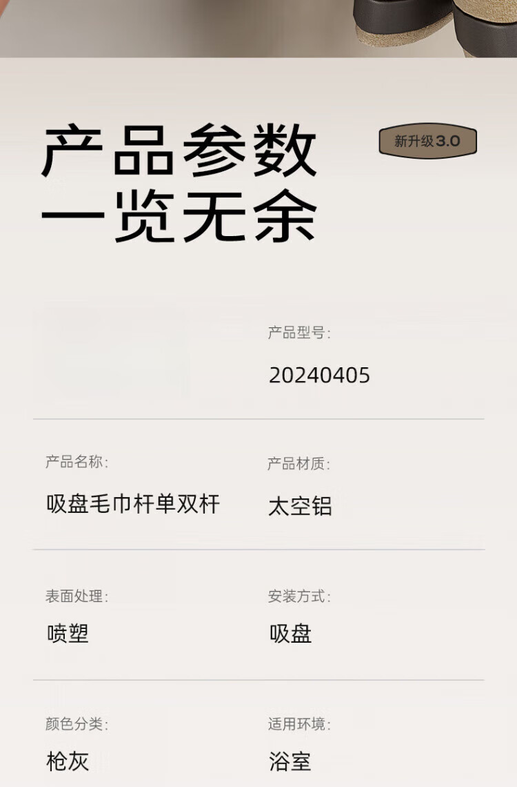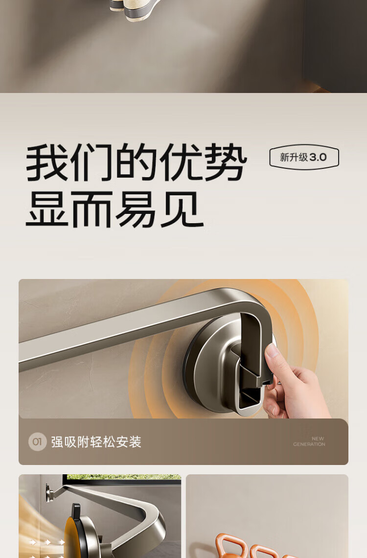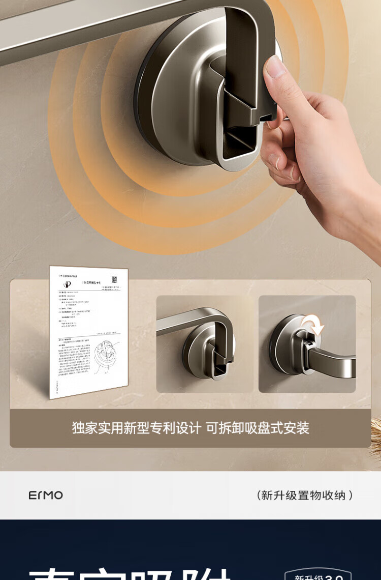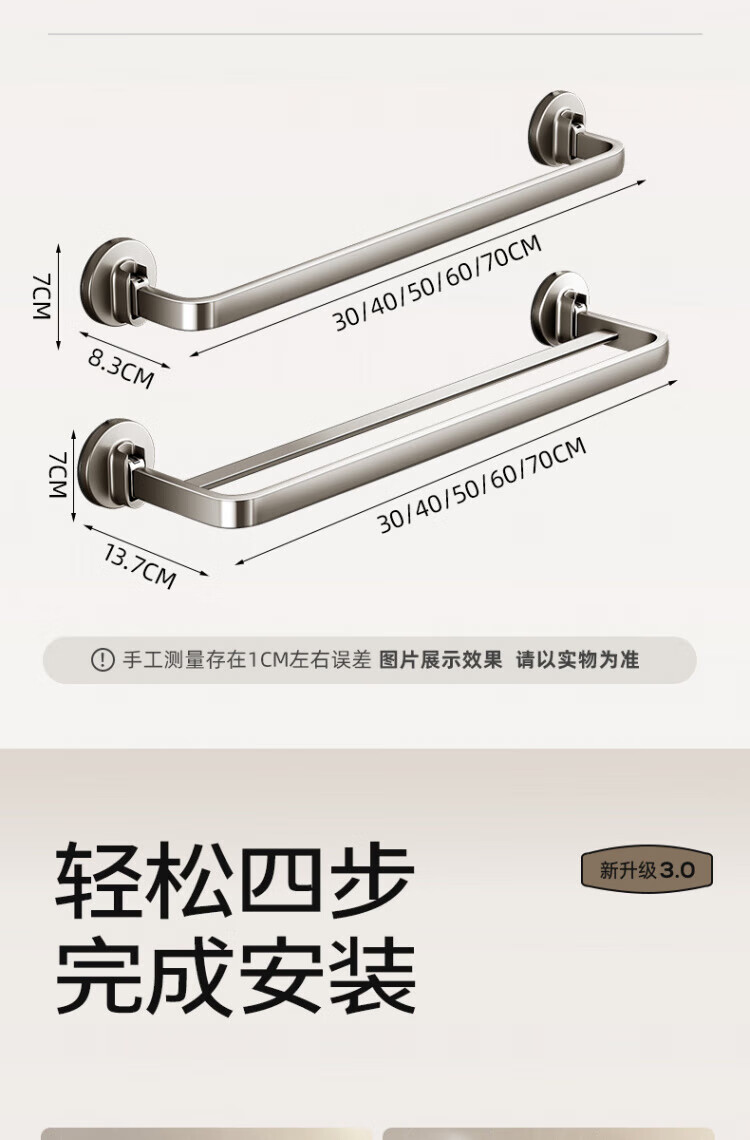 WCZ德国吸盘毛巾架子卫生间免打孔枪灰浴室毛巾杆收纳置物挂架壁挂双 【枪灰单杆】40CM|强劲吸附