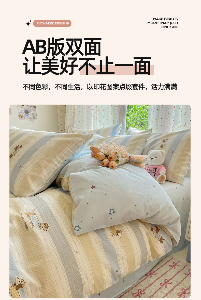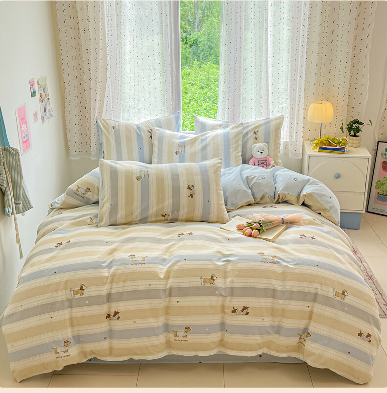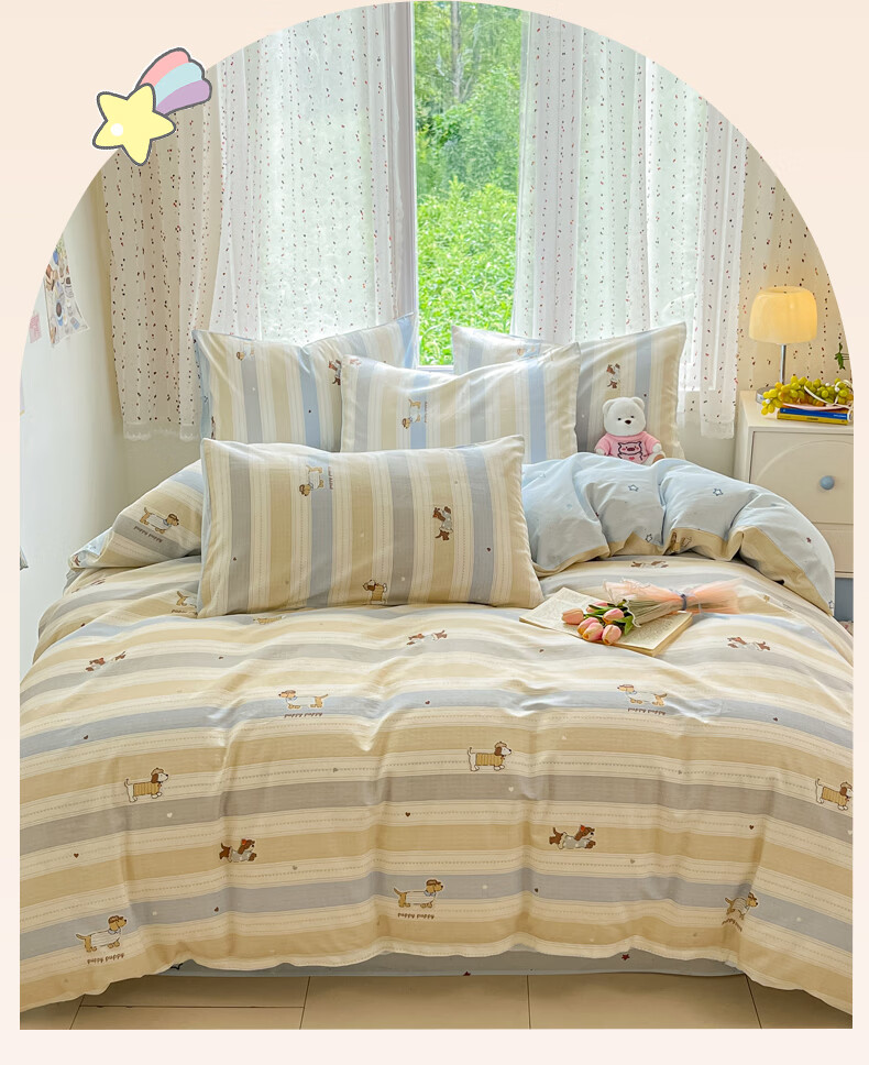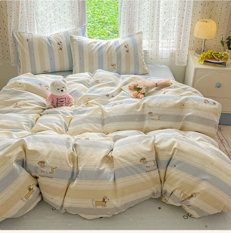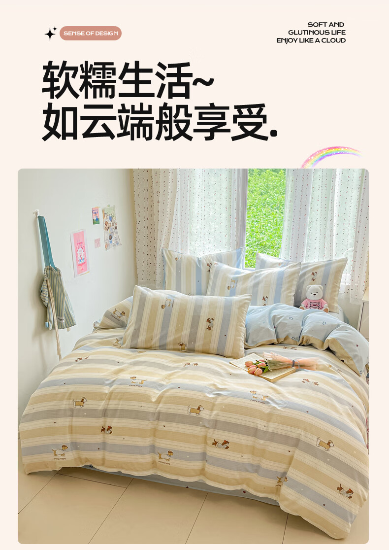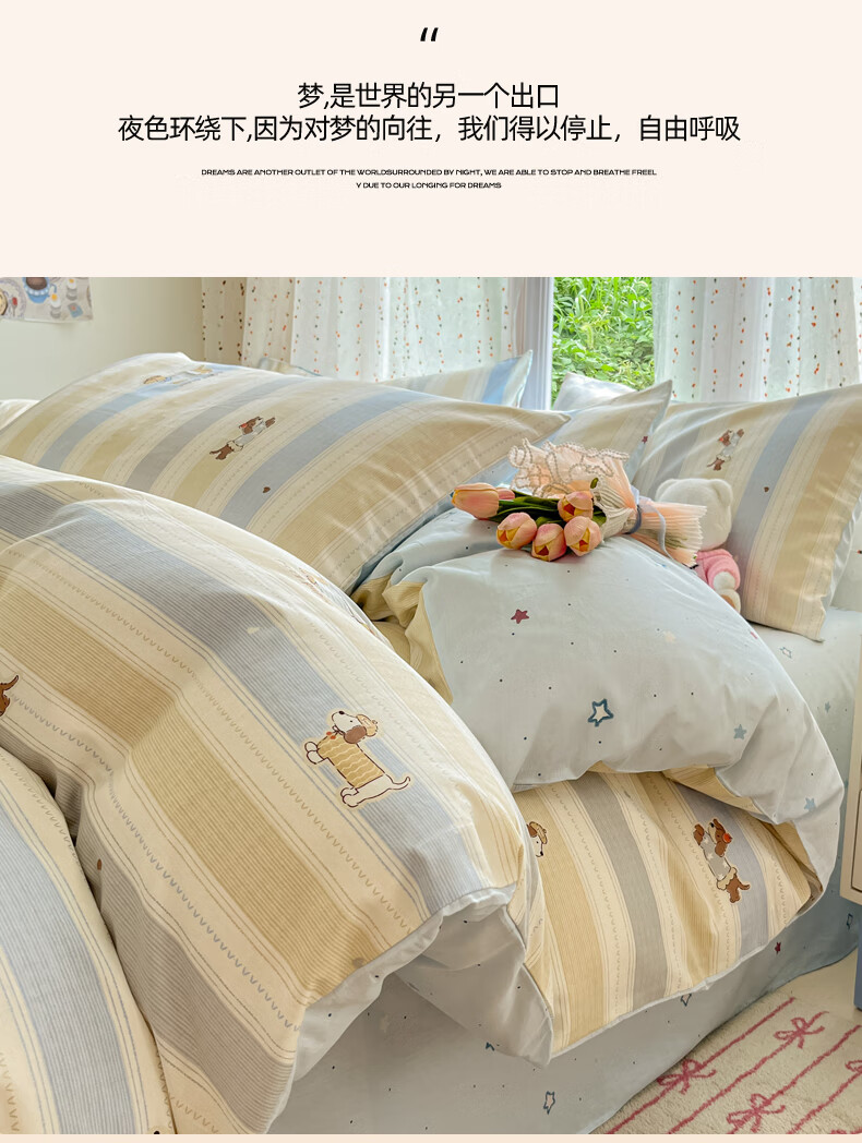 苏萱A类苹果狗毛巾绣全棉加厚磨毛四件套秋冬款纯棉被套床单床上用品4 糖果熊 1.8m 床单款 四件套-被套200x230cm