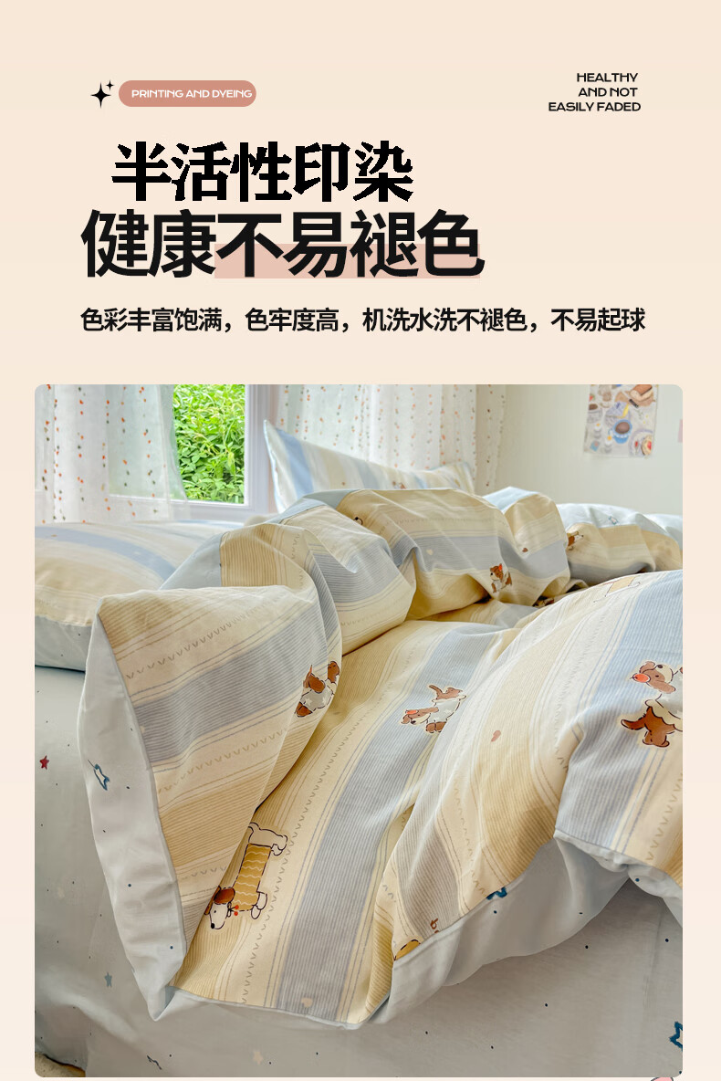 苏萱卡通可爱小熊牛奶绒床上四件套双面加绒被套儿童珊瑚法兰绒床单人 斑点熊 1.5m 床单款 四件套-被套200x230cm