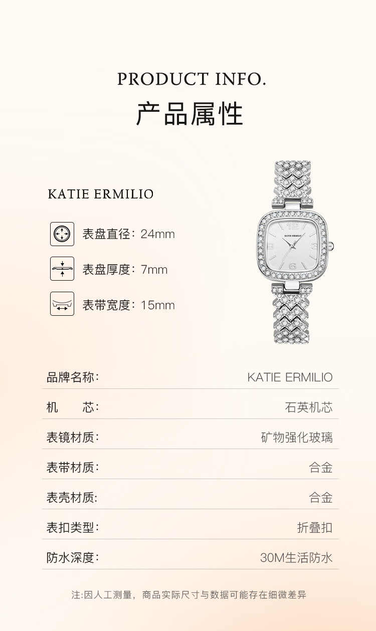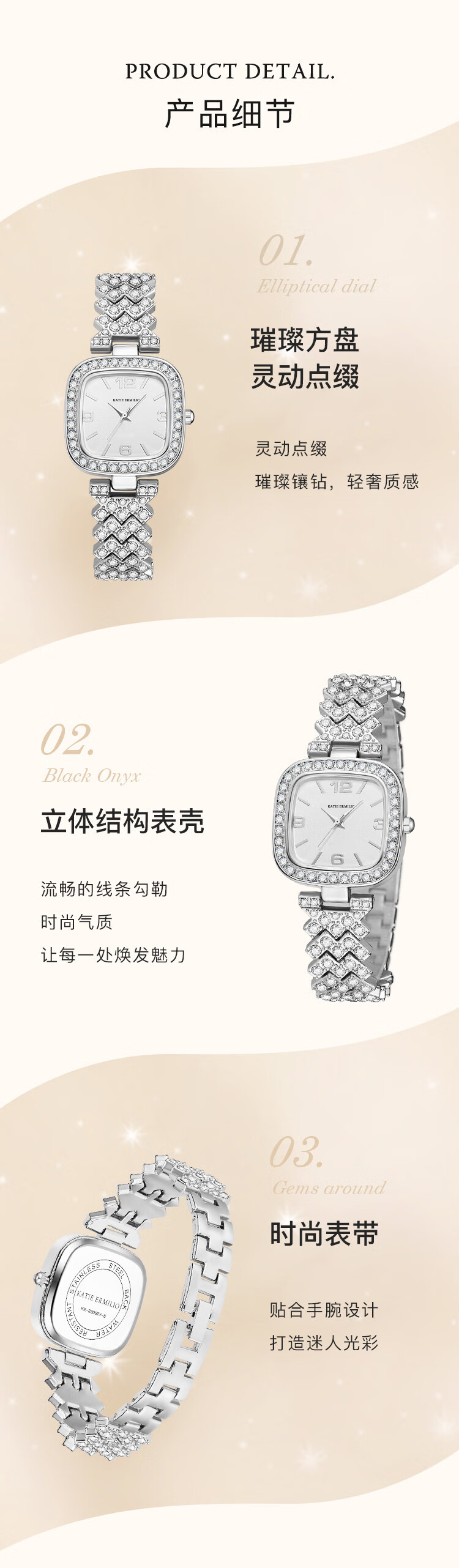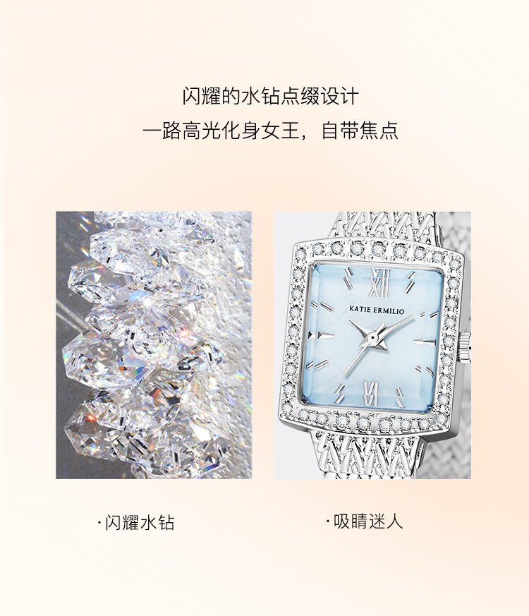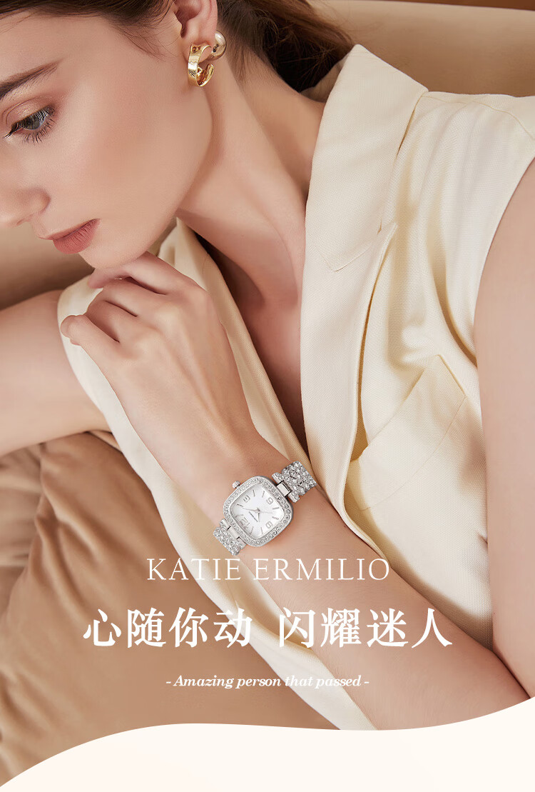 KATIE ERMILIO镶钻气质轻奢高级感手表时尚百搭石英女腕表七夕情人节礼物送女友