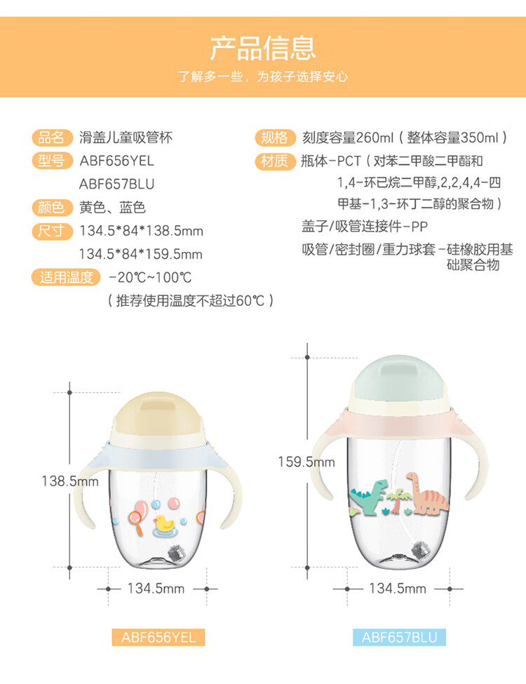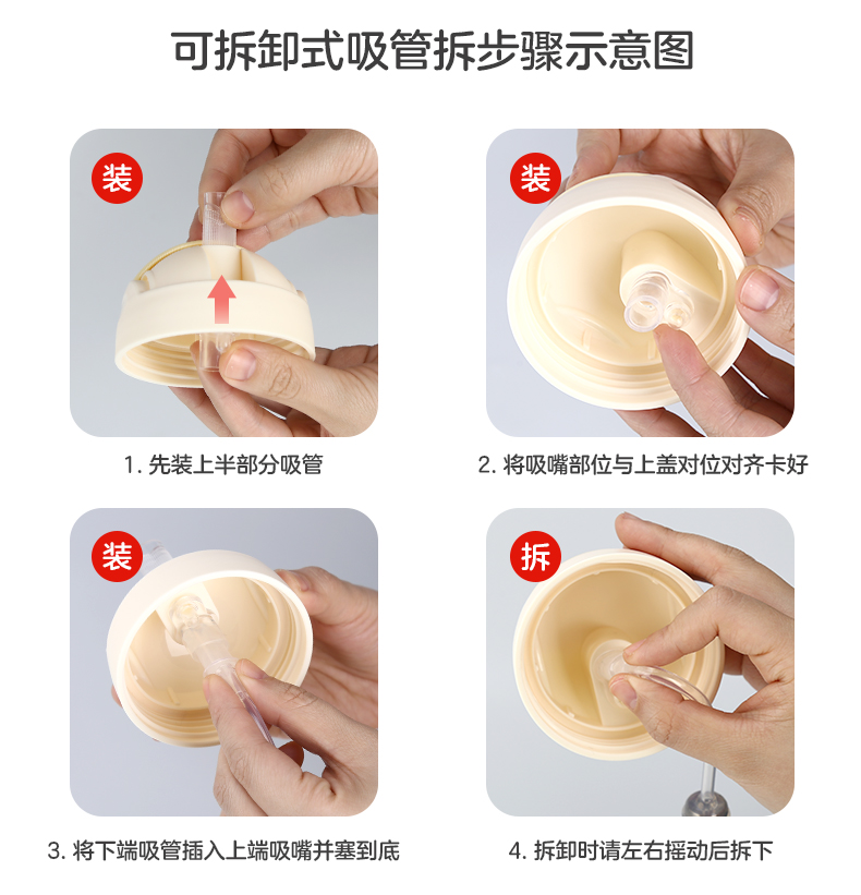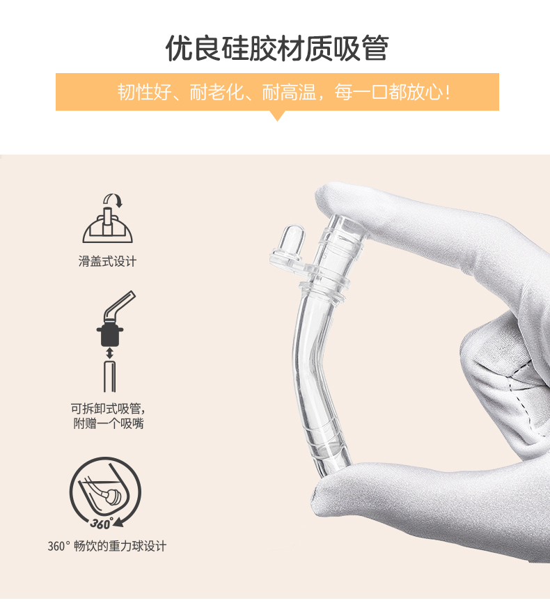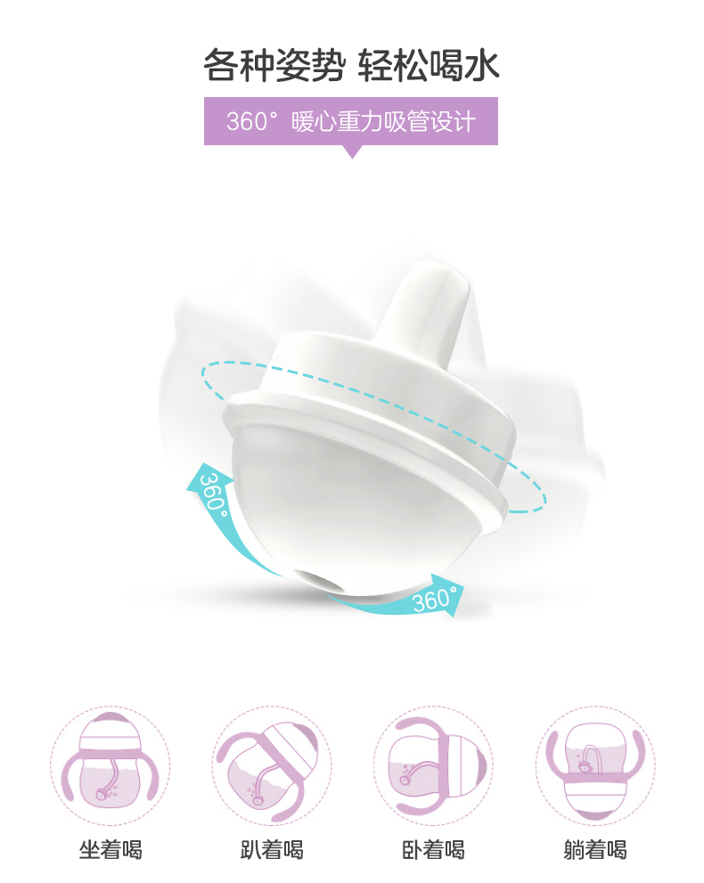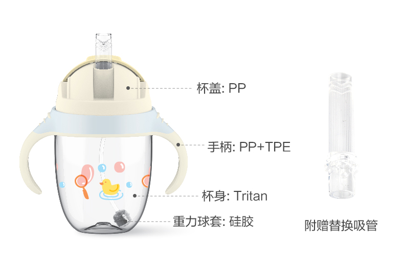 优爱心适用于贝奶瓶配件用于鸭嘴奶嘴变重力球学饮吸管杯 3代白色手柄+吸嘴+鸭嘴
