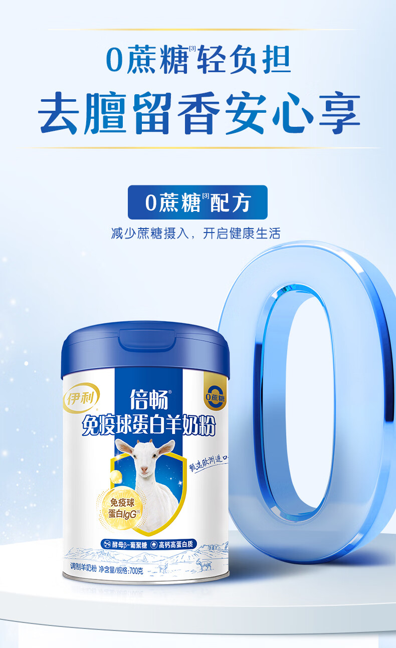 伊利免疫球蛋白羊奶粉 高蛋白质 高钙维生素D配方 0蔗糖 天然A2型蛋白 【送礼优选】限定莎能奶山羊-700g*2礼盒