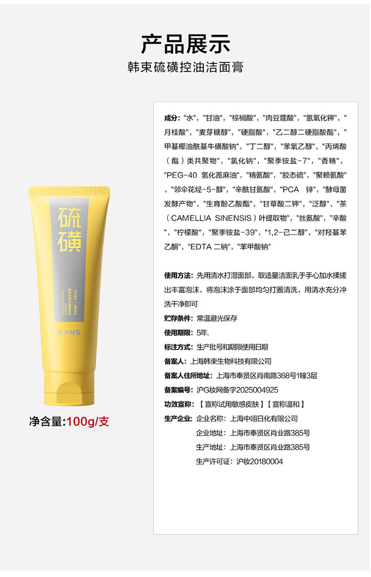 韩束硫磺洗面奶控油祛痘除螨虫去黑头男士女士专用洗面奶青少年洁面乳
