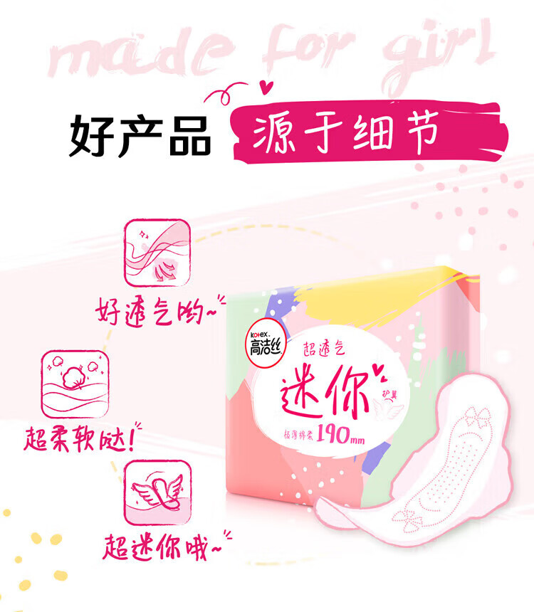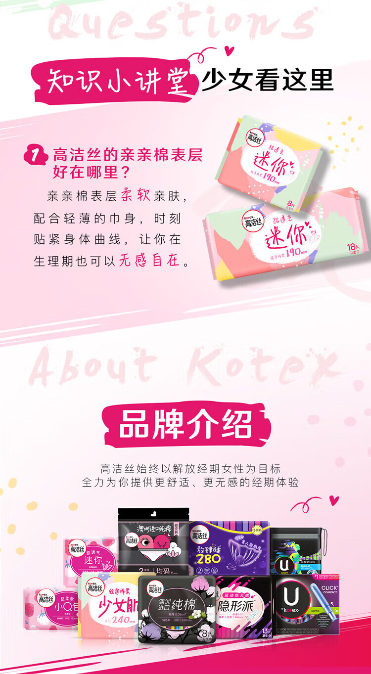 高洁丝(Kotex)亲亲棉天然阳光卫生巾组合套装日用夜用极薄透气瞬吸无感姨妈巾 夜安裤L码6条