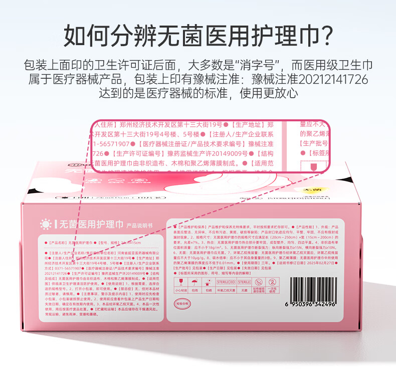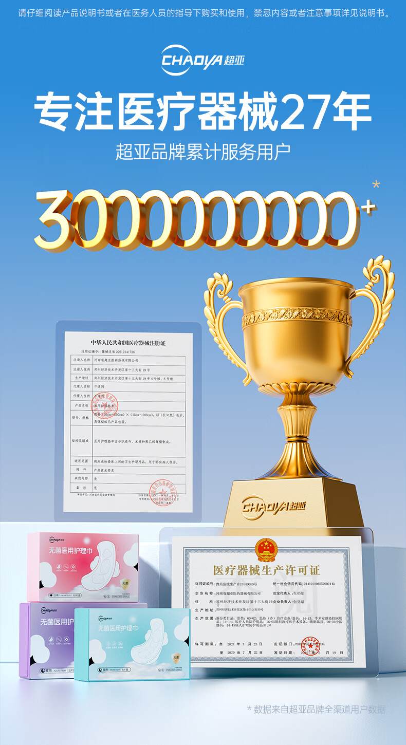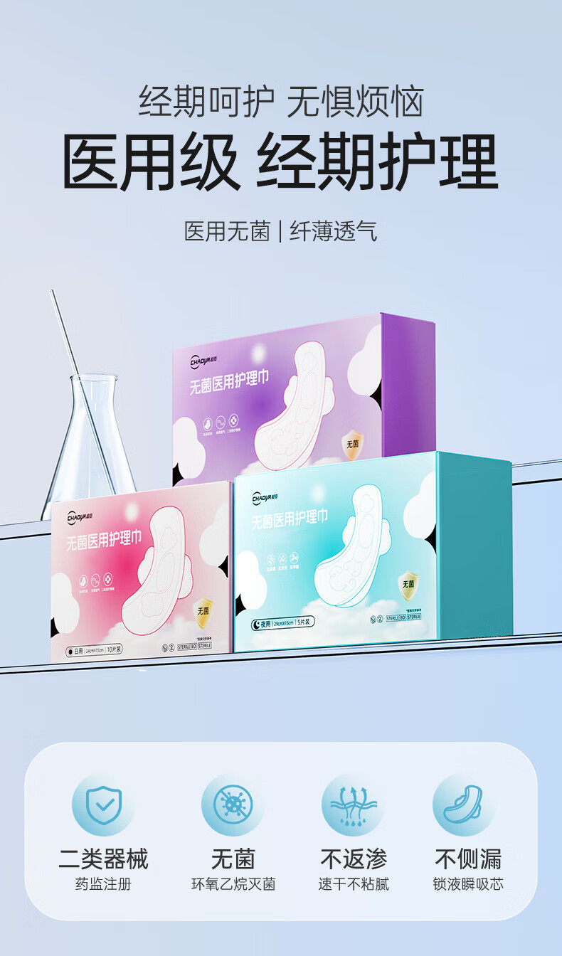 超亚医用卫生巾械字号透气医用护理垫日夜组合装灭菌型40片二类器械