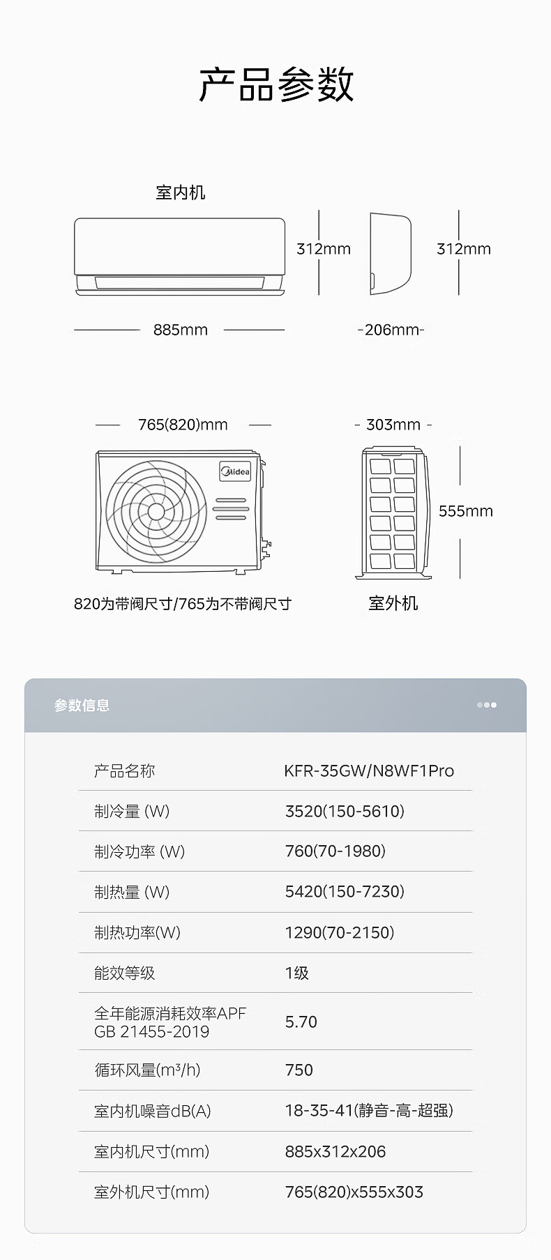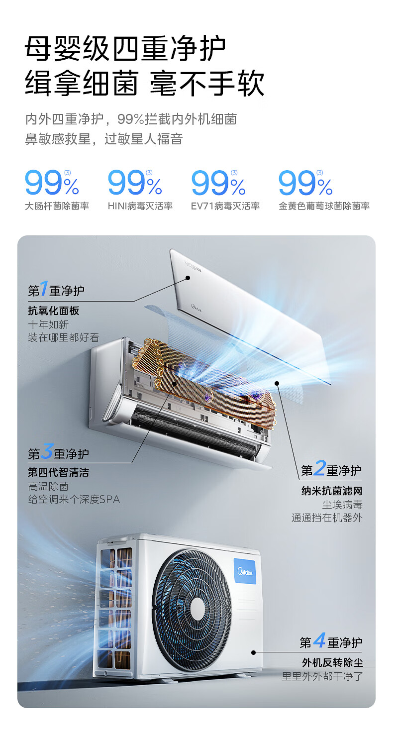 美的空调 无风感云朵Pro 大1.5匹 安睡空调 母婴级净护 家电国家补贴20% 舒适风 KFR-35GW/N8WF1Pro
