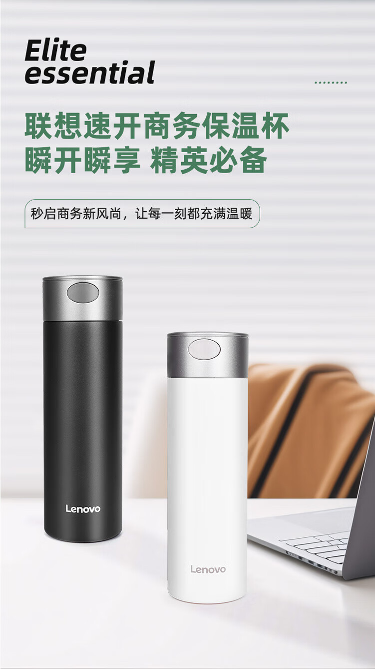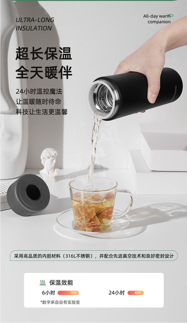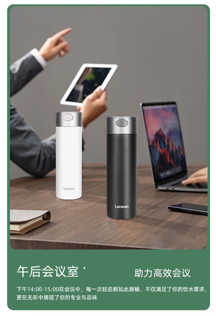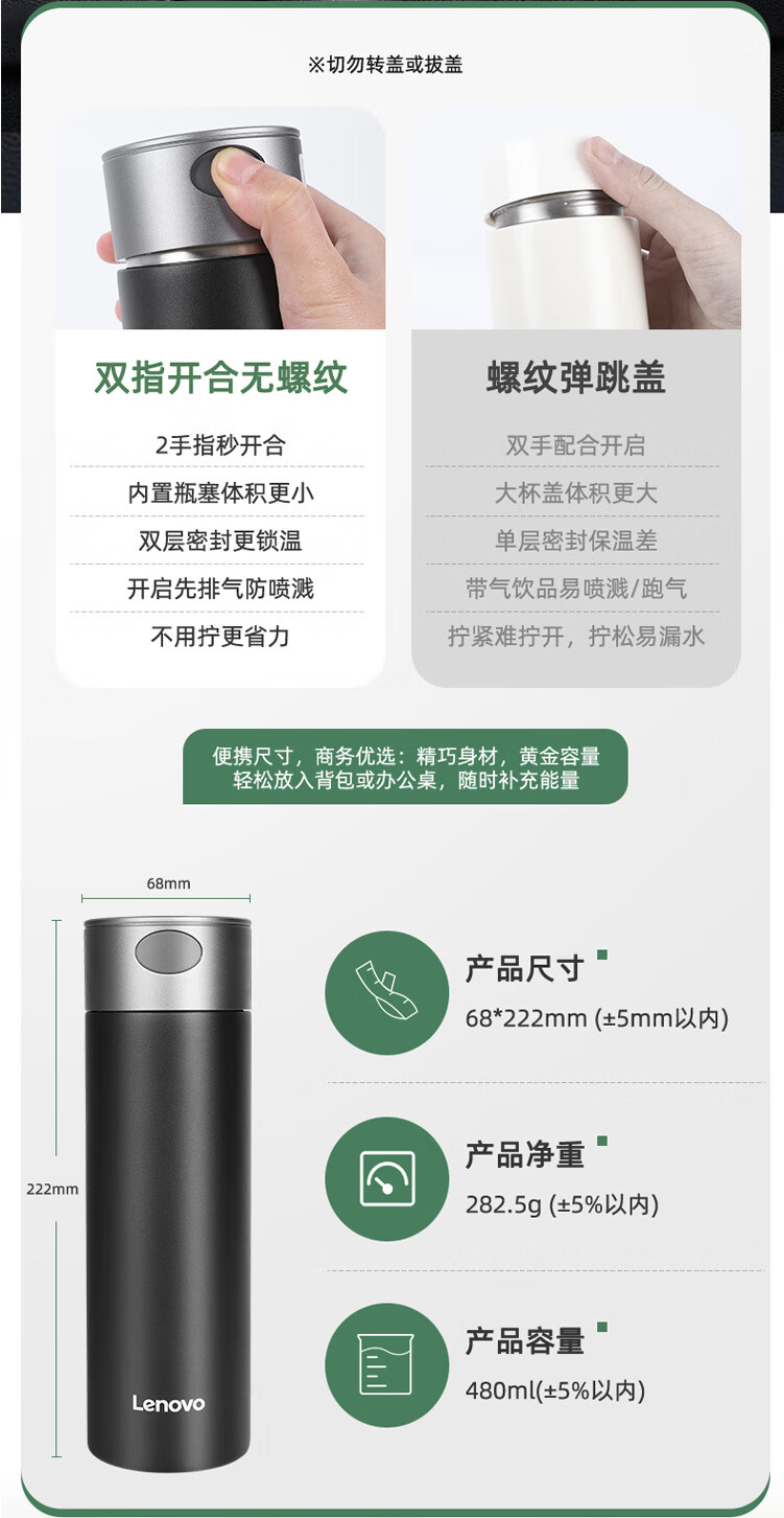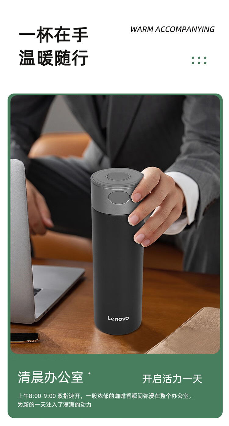 联想(Lenovo)保温杯316L不锈钢保温杯保冷杯速开商务水杯保温杯 480ml 黑色