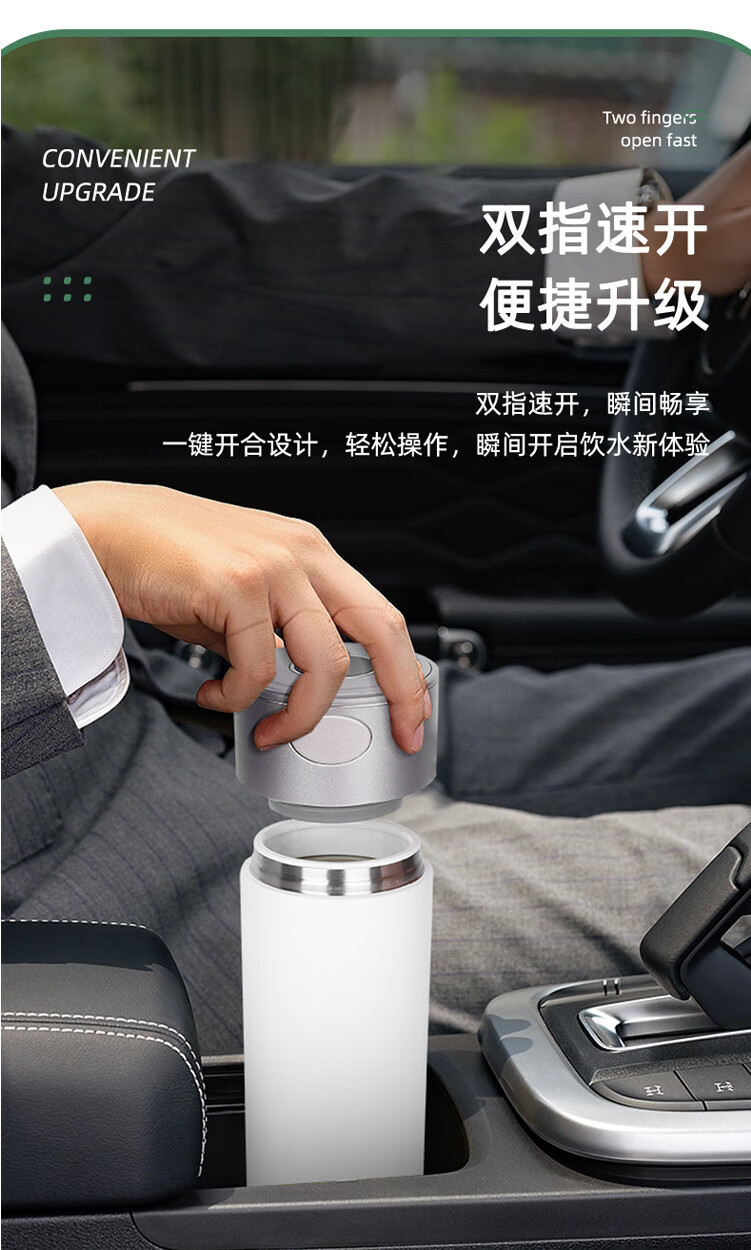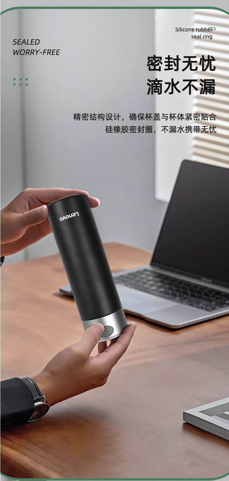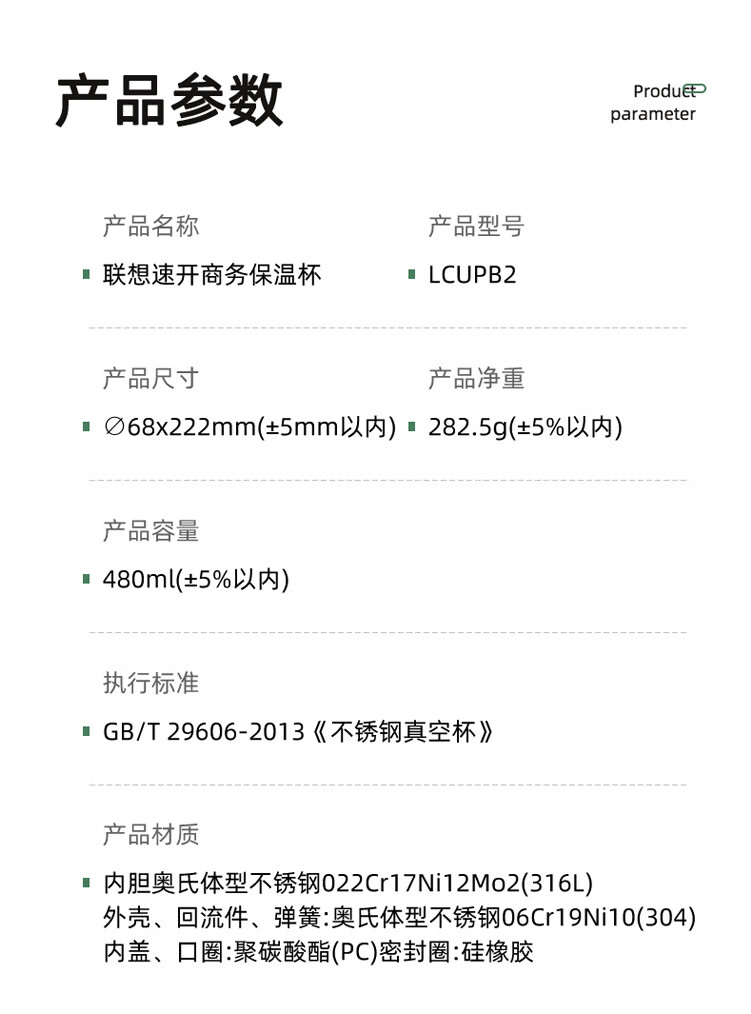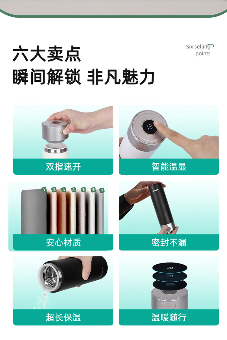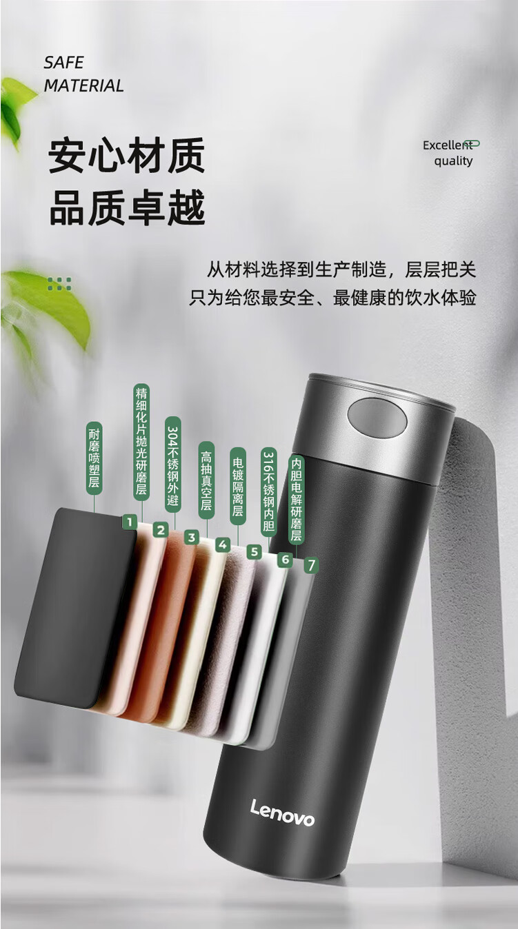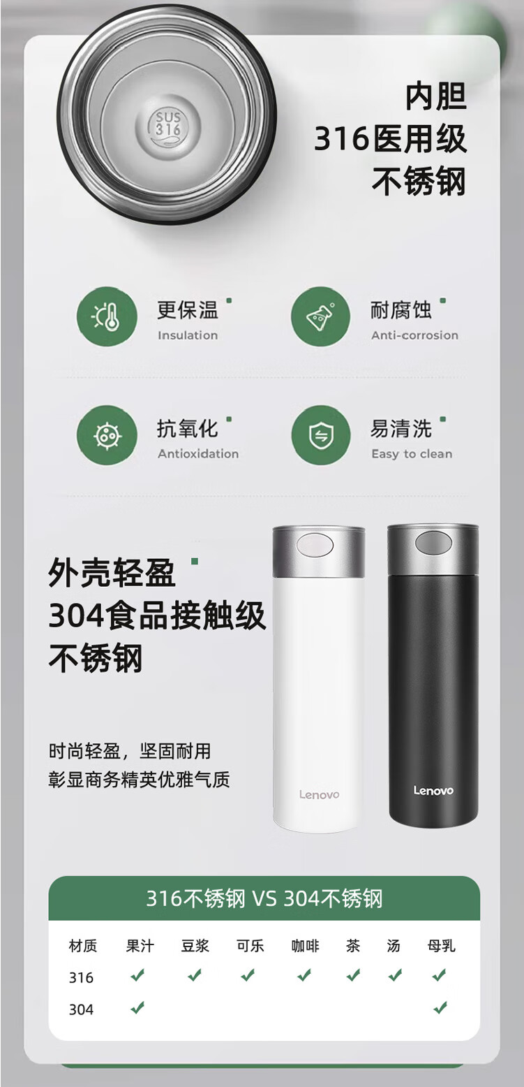 联想(Lenovo)保温杯316L不锈钢保温杯保冷杯速开商务水杯保温杯 480ml 黑色