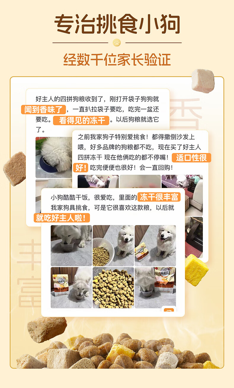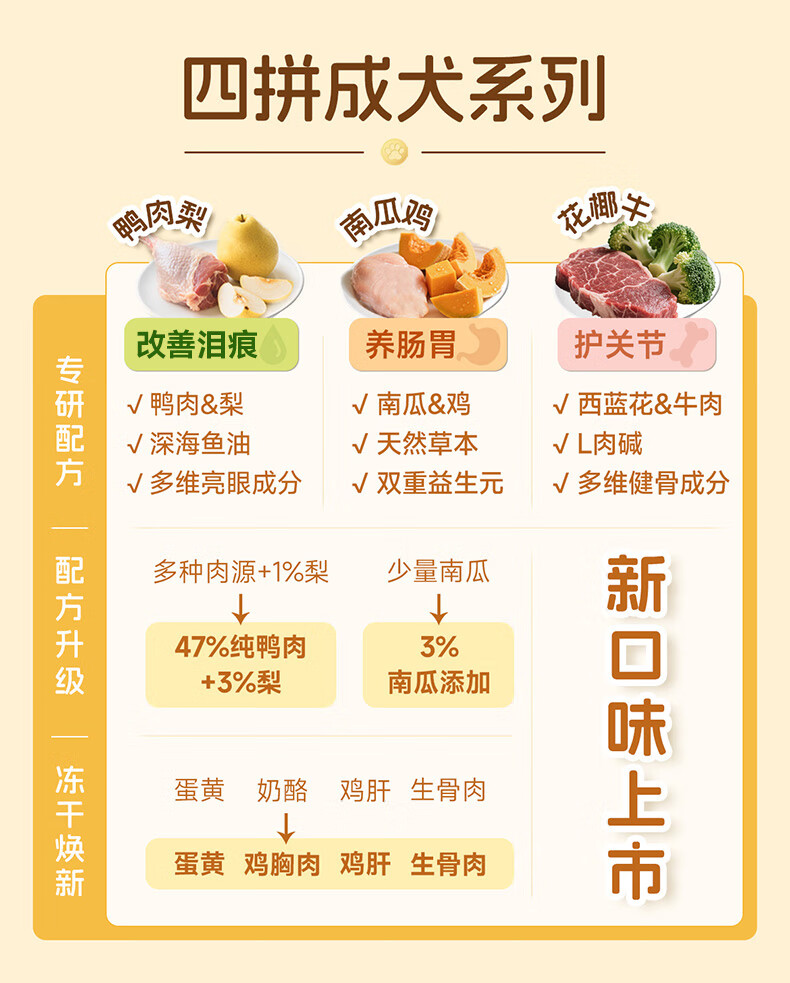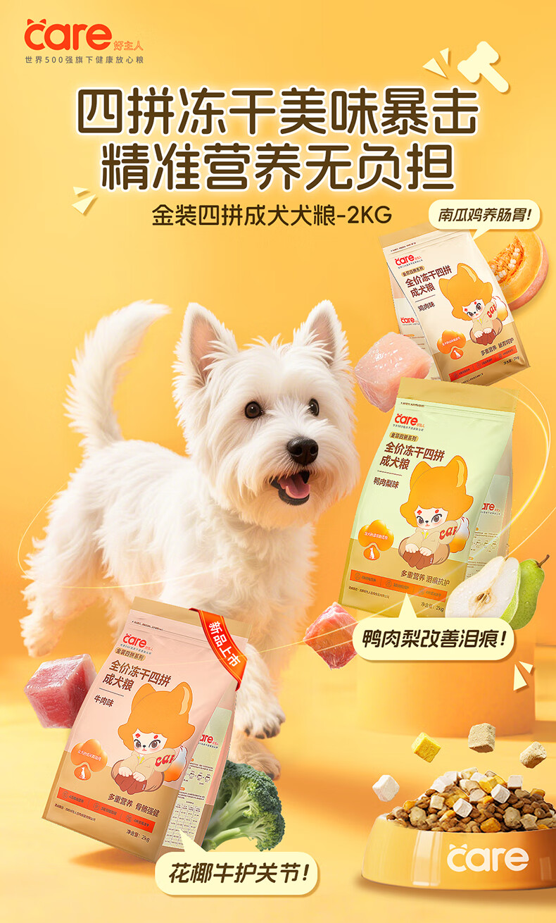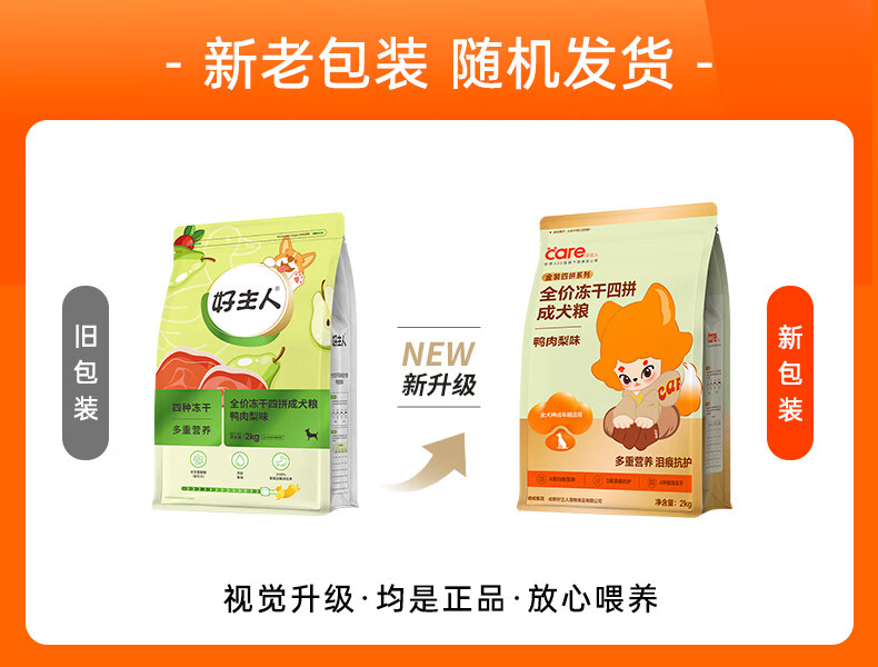 好主人新品狗粮鸭肉梨冻干四拼成犬粮【对抗泪痕】全犬种通用成犬粮2kg