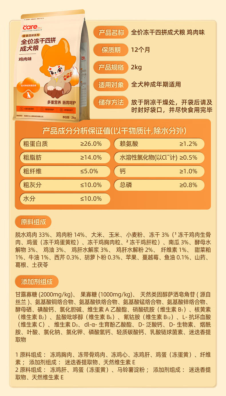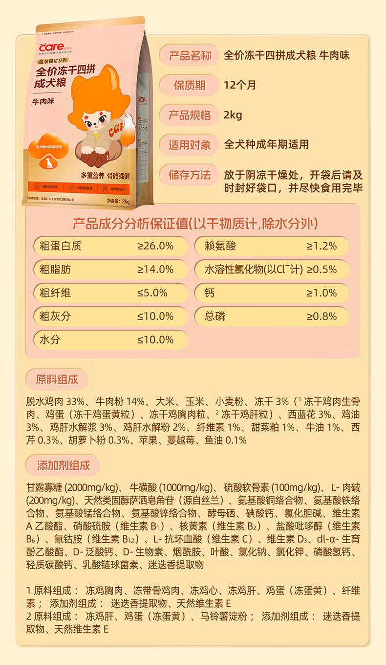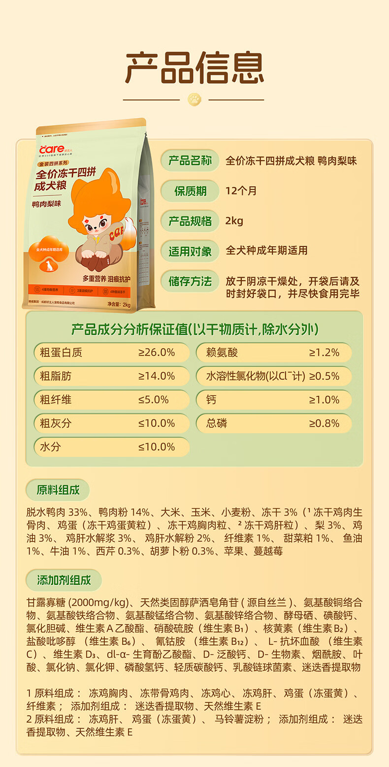 好主人新品狗粮鸭肉梨冻干四拼成犬粮【对抗泪痕】全犬种通用成犬粮2kg
