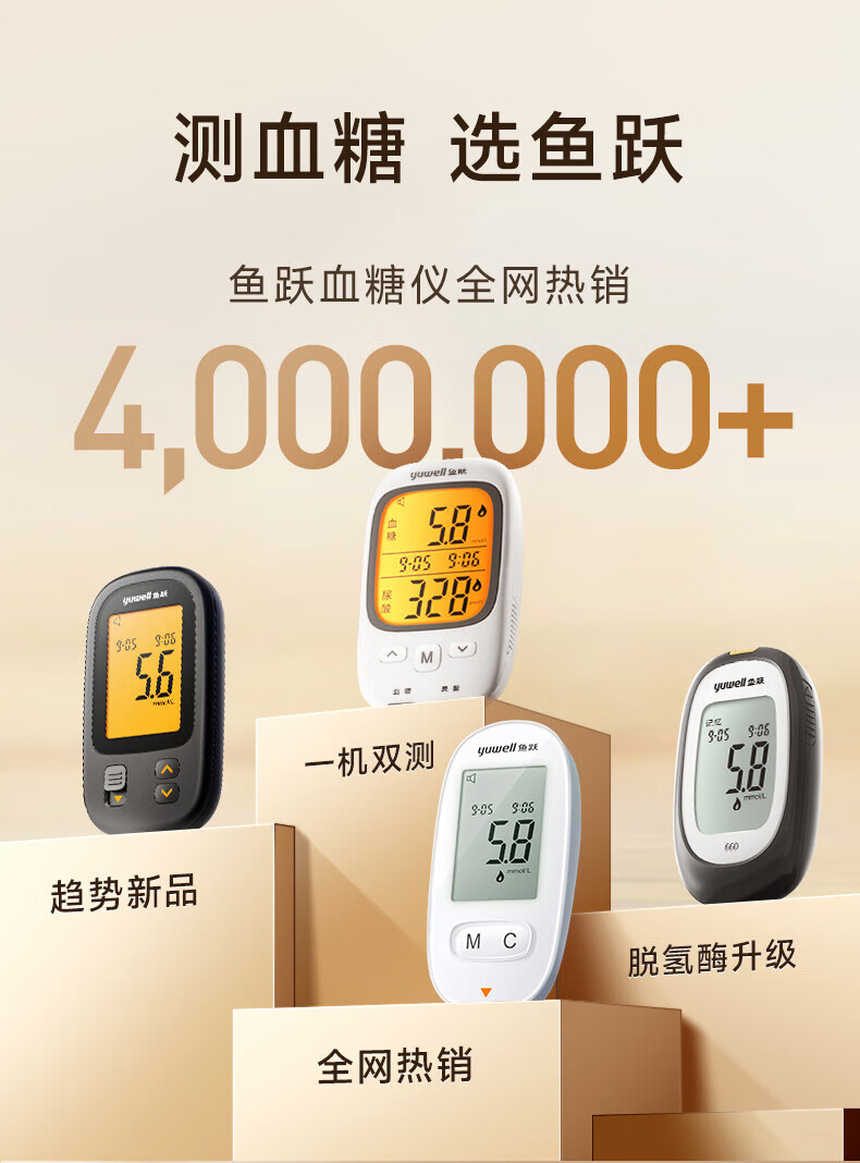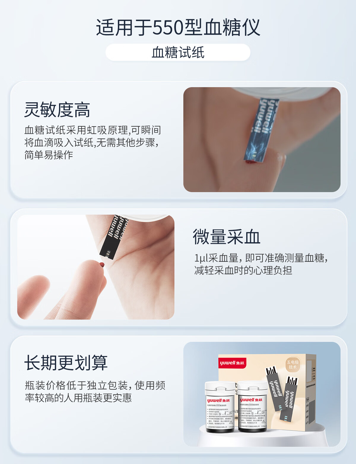 鱼跃550血糖仪家用免调码【无仪器+100试纸+100采血针】