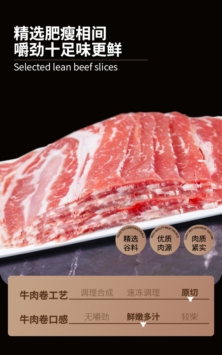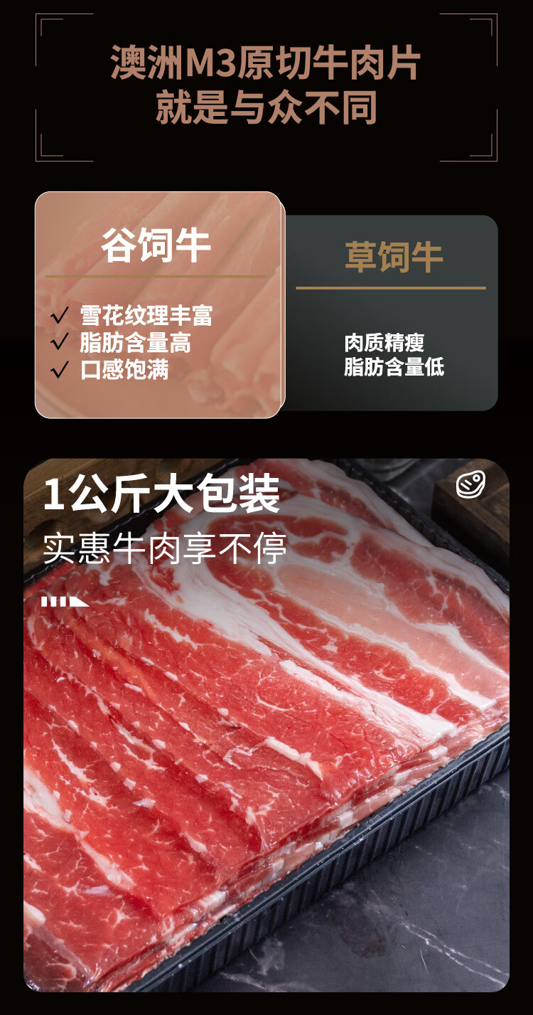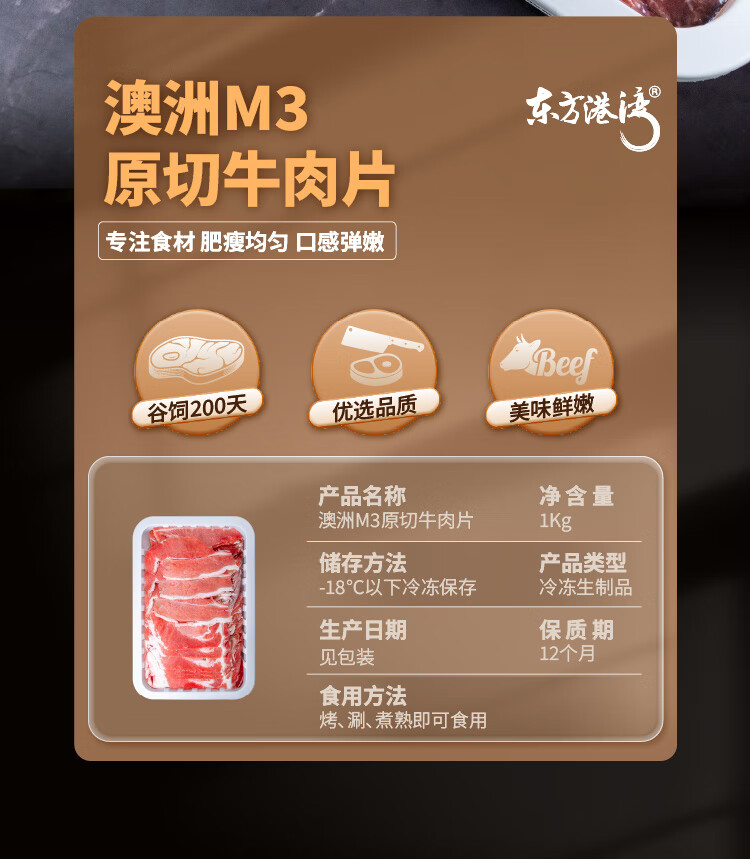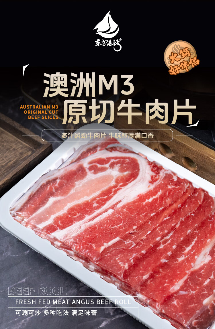 东方港湾澳洲M3原切牛肉片净重2斤肥牛片卷火锅食材生鲜无添加烤肉1kg