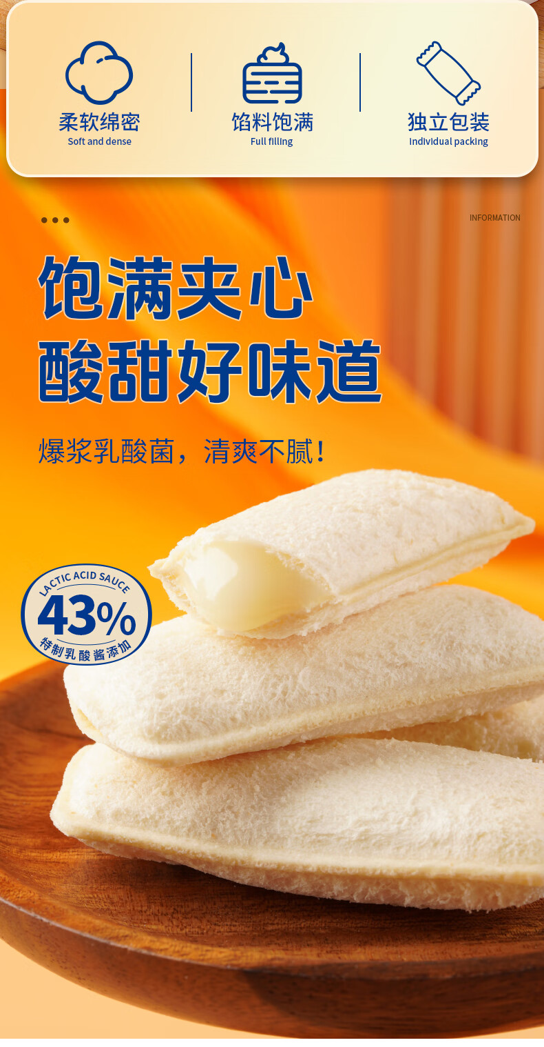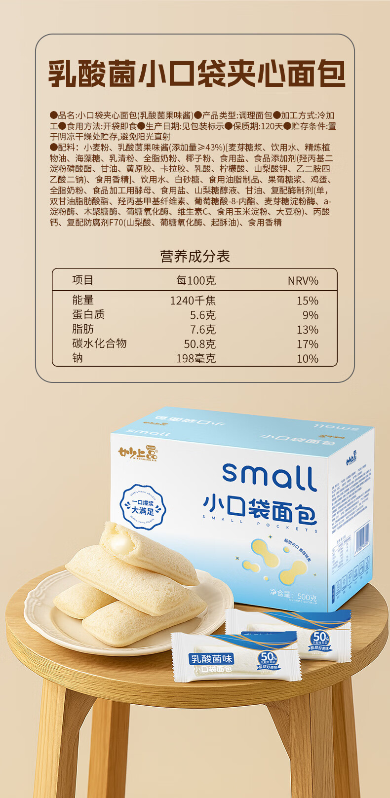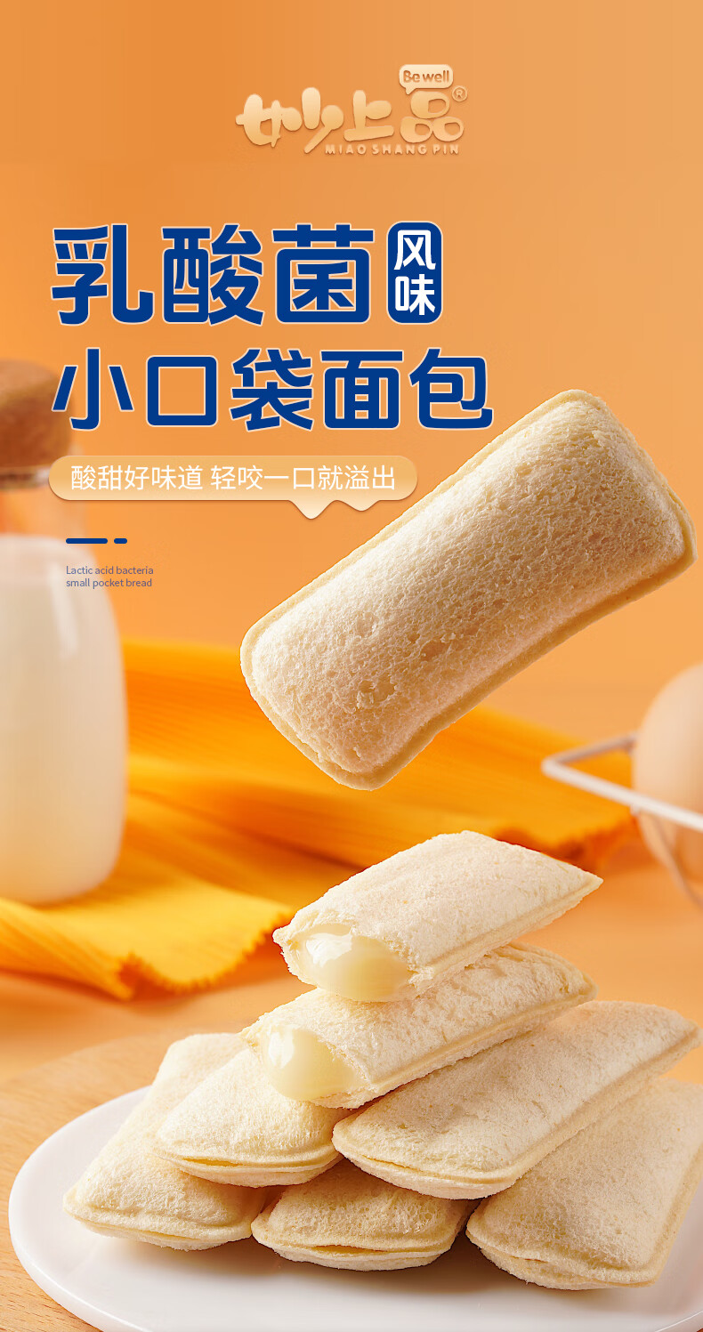 妙上品 乳酸菌味口袋面包20g*25包早餐整箱端午礼盒手撕面包夹心吐司