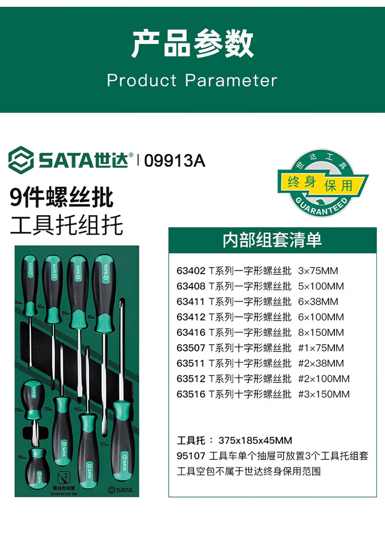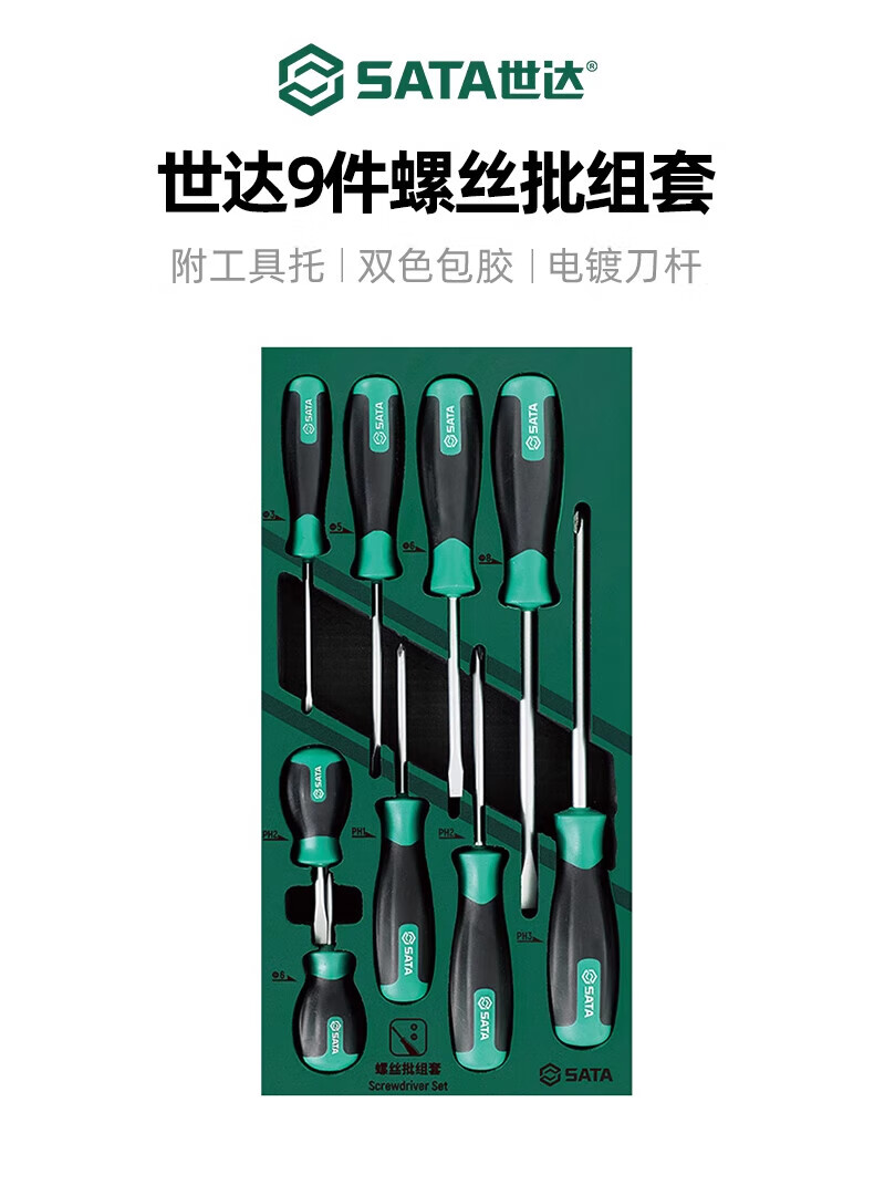 世达(SATA)T系列十字一字螺丝刀起子工具套装 9pcs 09913A