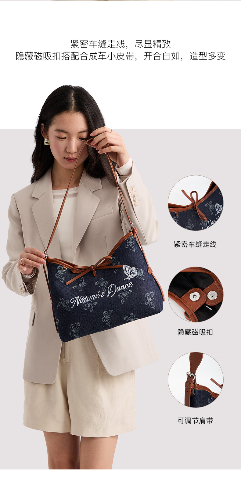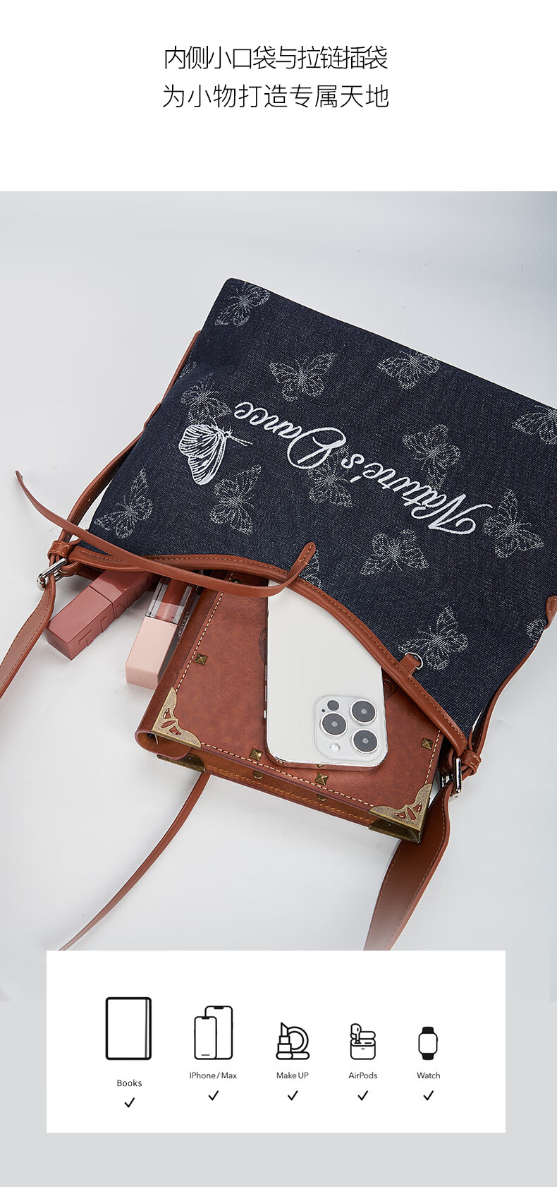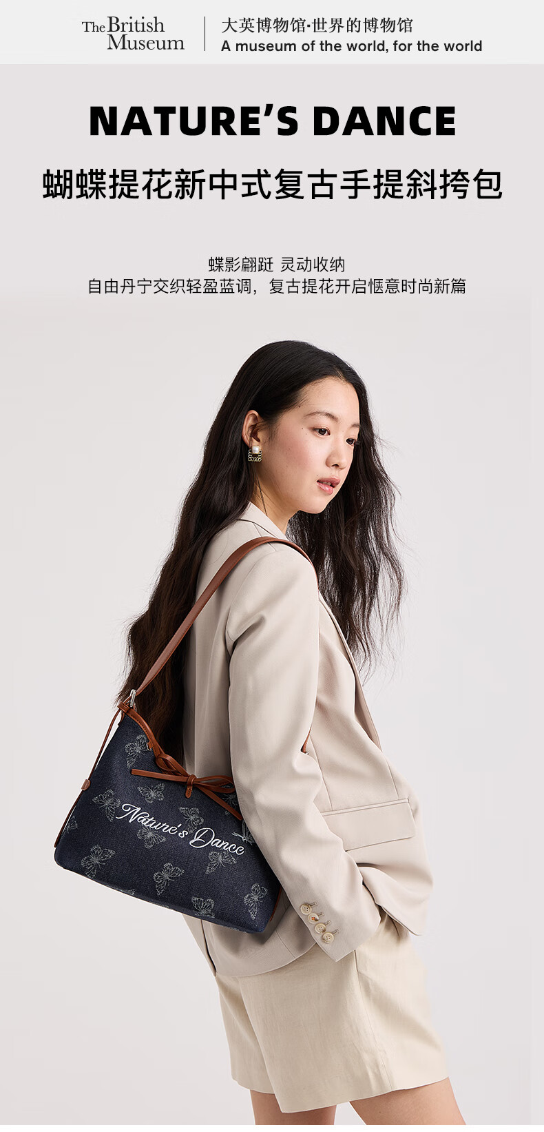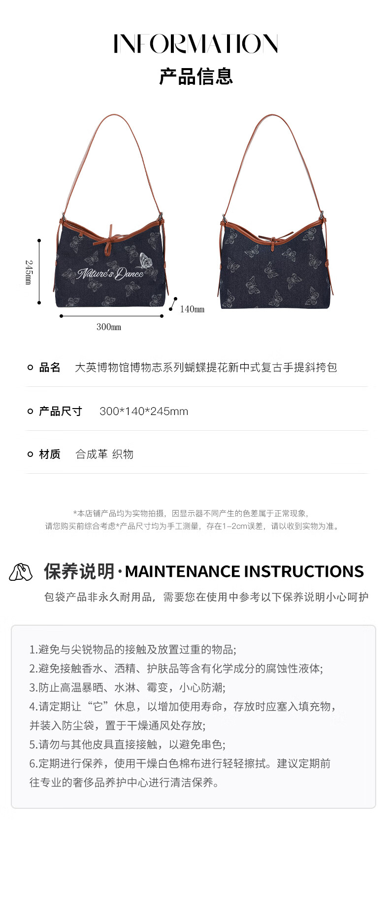 大英博物馆博物志蝴蝶提花新中式复古手提斜挎包送女生生日礼物中秋节礼物