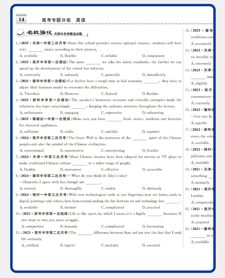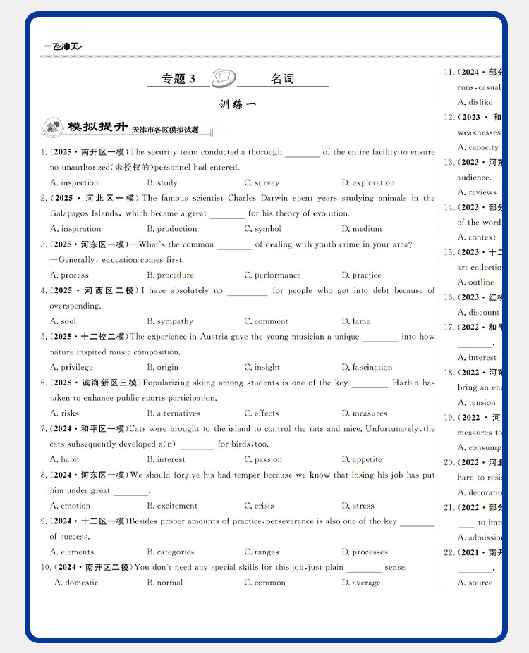 2026一飞冲天高考专题分类数学物理化学生物语文英语政治历史地理150套试题天津专用高考专项训练 高三高考总复习资料模拟高考题 2026 专题分类【物化生】