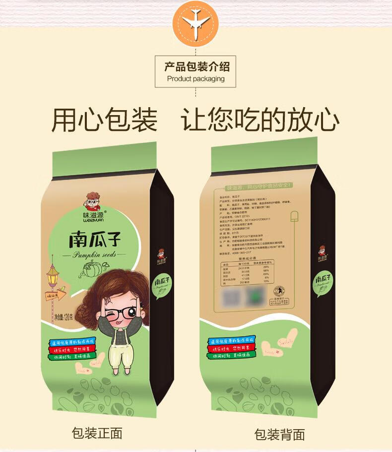 味滋源南瓜子薄壳坚果炒货干果 熟南瓜籽休闲零食解馋小吃追剧磨牙干货 120g/袋 3袋装