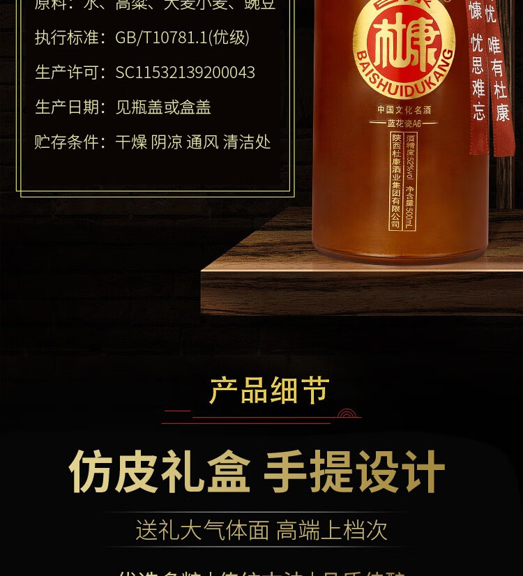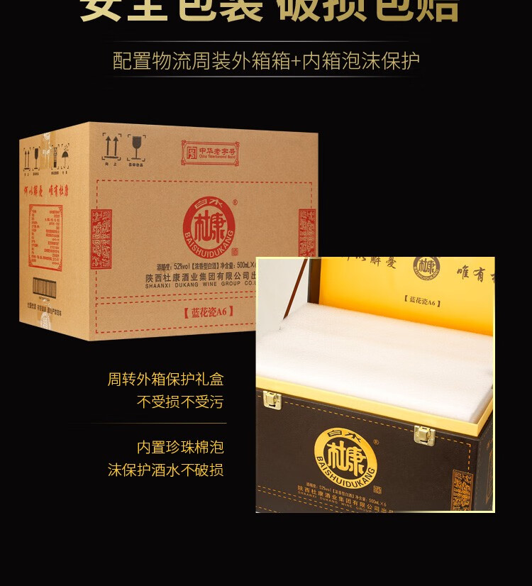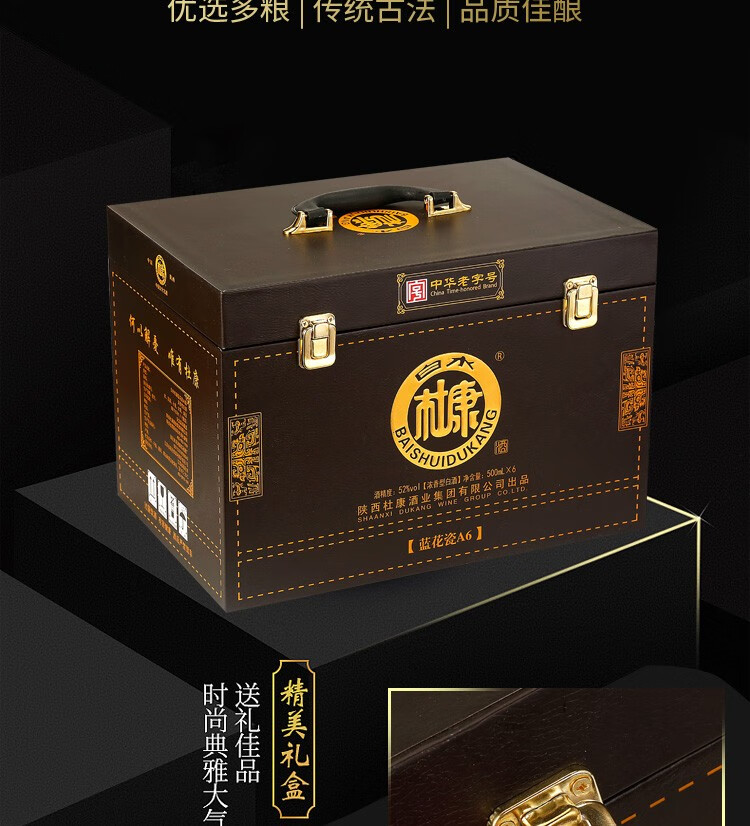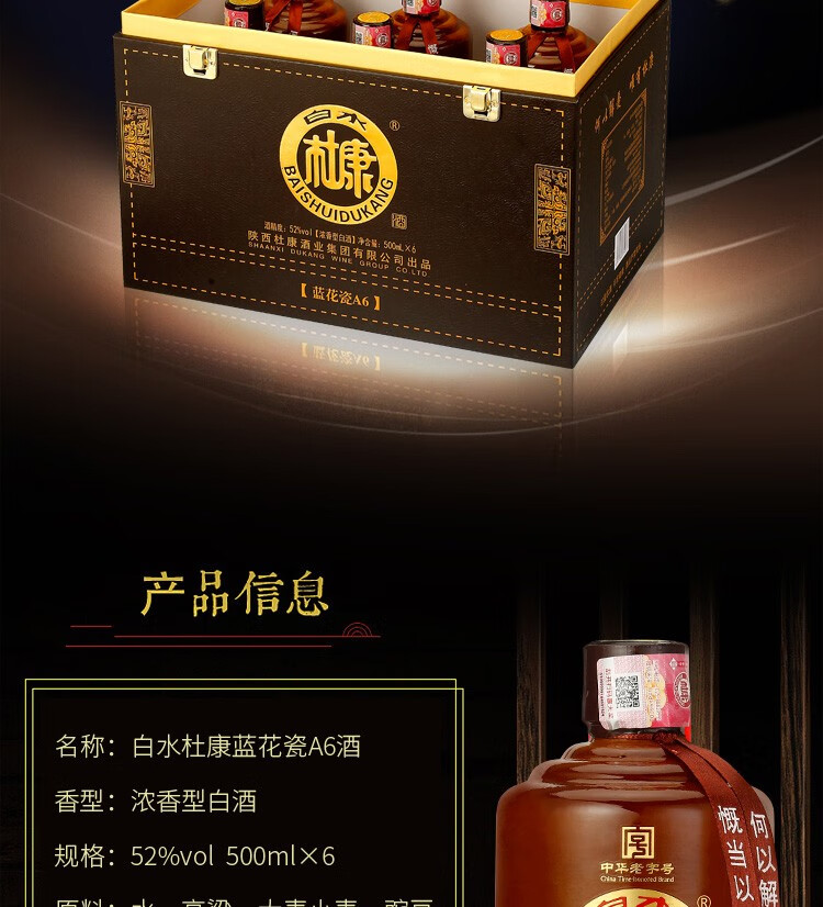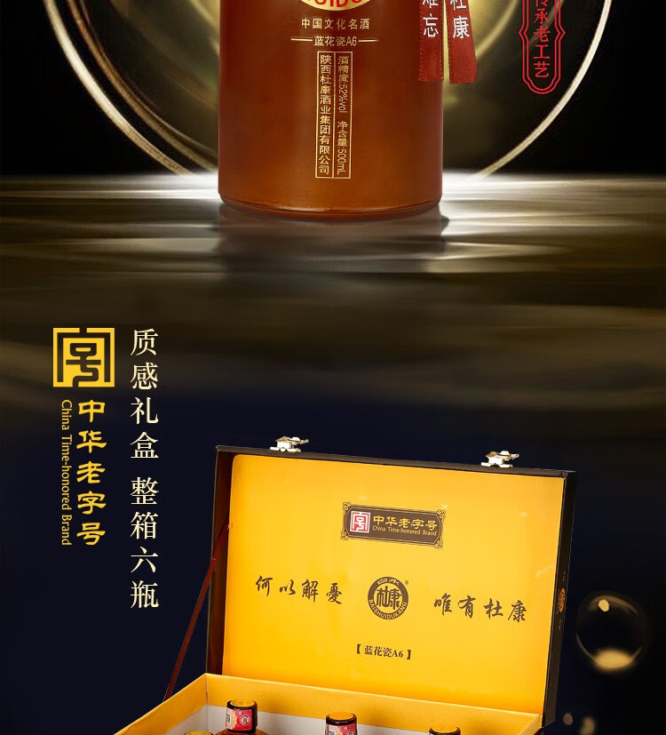 白水杜康蓝花瓷A6酒整箱特价浓香型52度500ml*6瓶礼盒装请客送礼佳品
