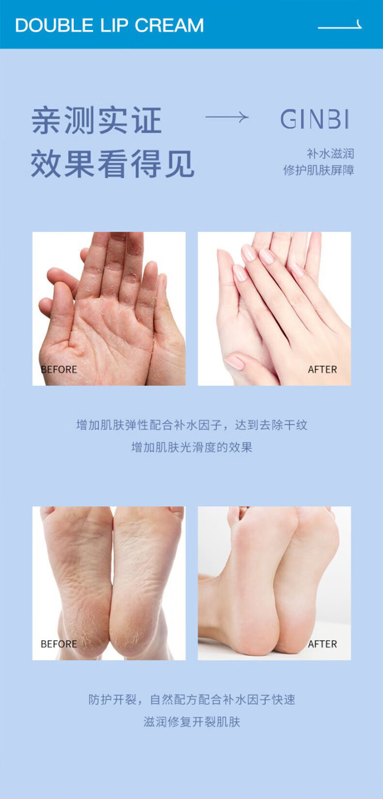 GINBI莹润倍护膏手足干裂润肤霜脚后跟干裂防裂护手霜保湿补水身体乳 【干裂专用】40g倍护膏 ×2瓶