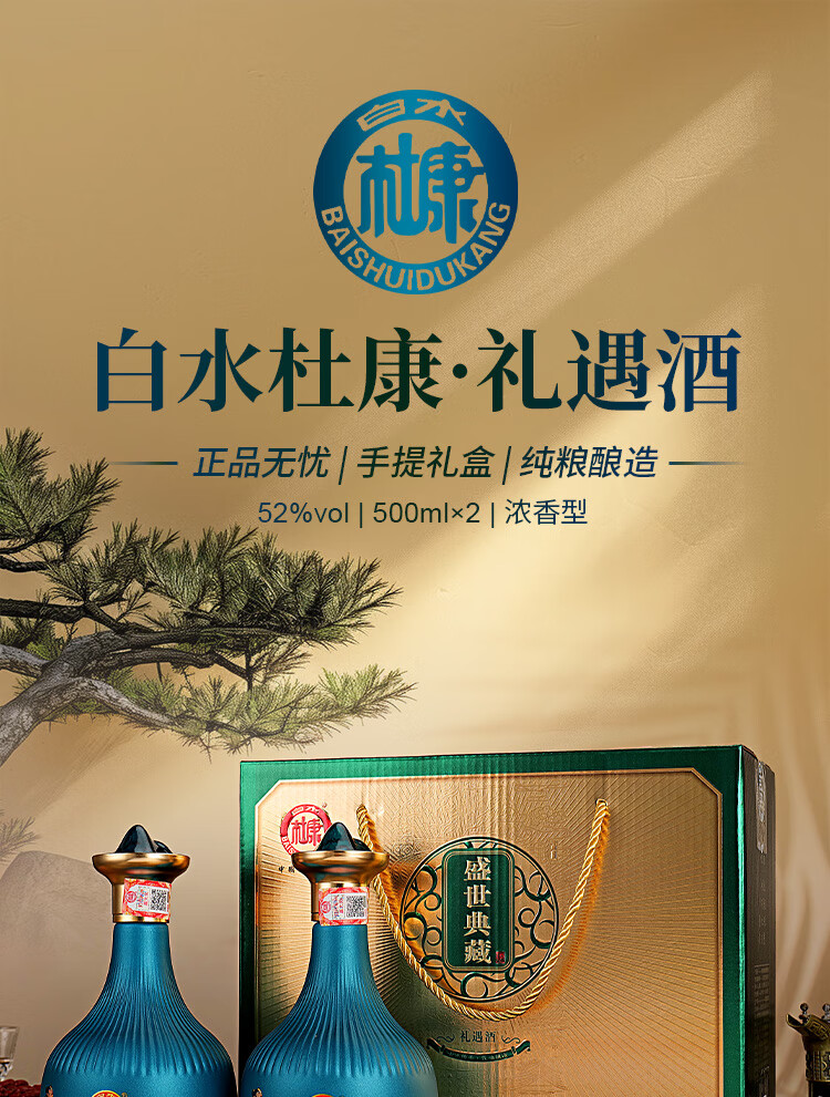 白水杜康(BAISHUIDUKANG)白水杜康礼遇酒52度浓香型500ml*2瓶礼盒装请客送礼佳品 52度 500mL 2瓶