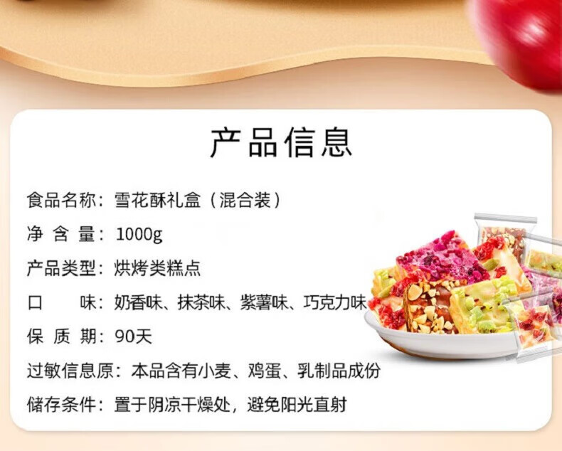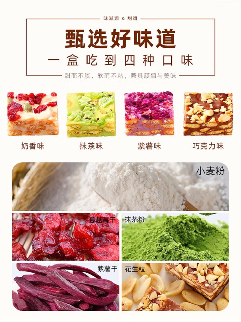味滋源 雪花酥 网红零食礼盒装软牛轧奶芙抹茶巧克力糕点小吃-6 雪花酥 抹茶味 125克 1件