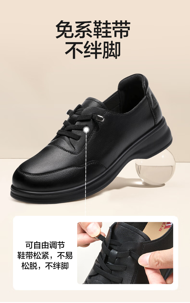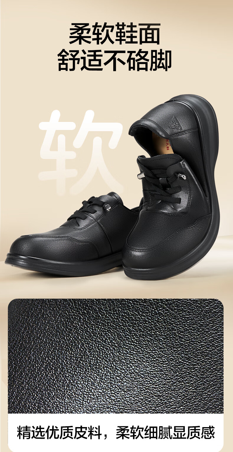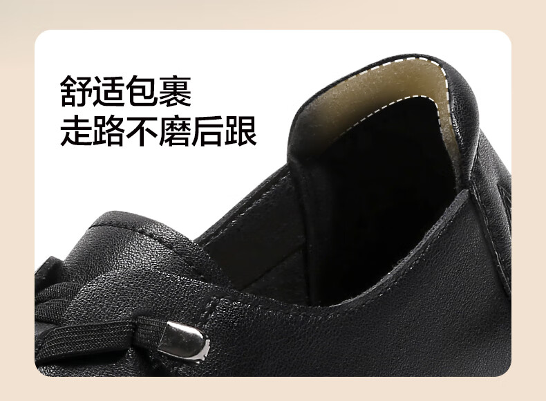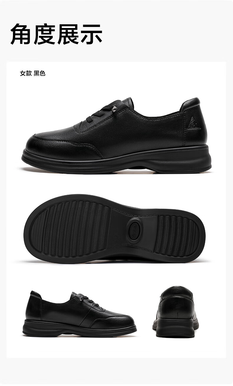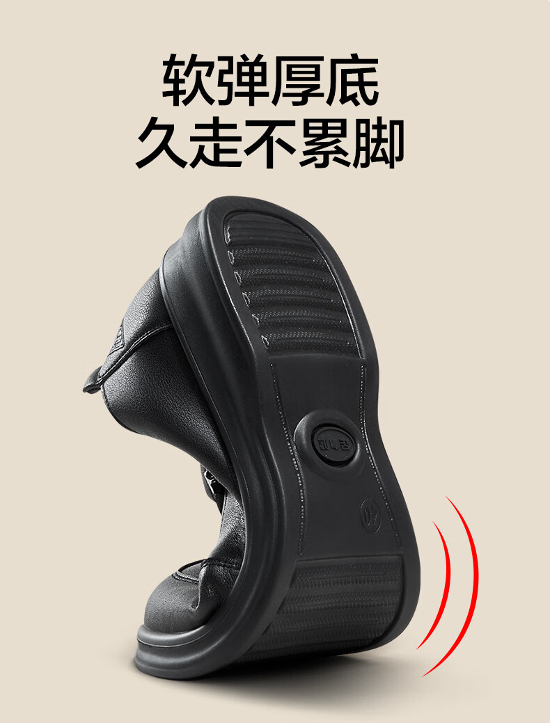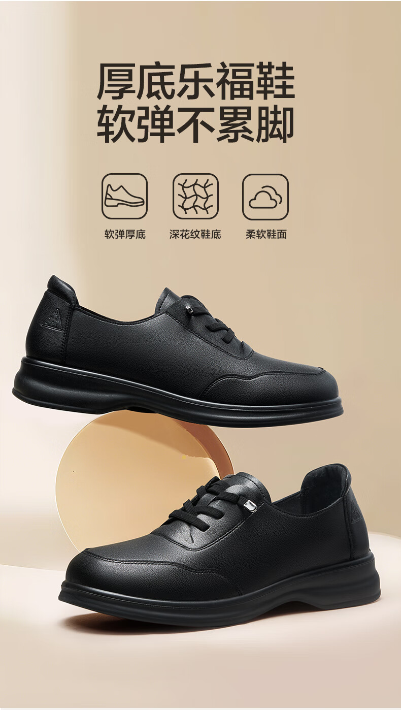 足力健老人鞋中老年女鞋休闲舒适软底乐福鞋百搭送礼 黑色 38