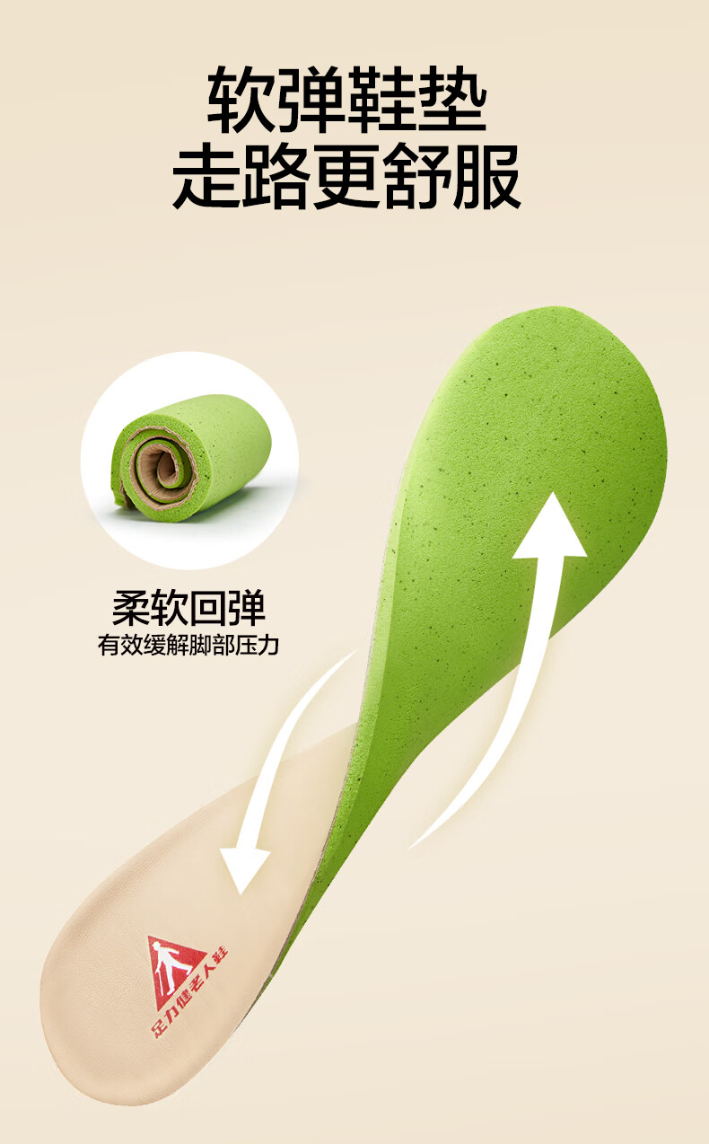 足力健中老年秋冬季爸妈鞋网纱透气不闷脚男女鞋轻盈舒适柔软休闲散步鞋 豆沙色 37