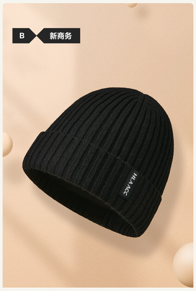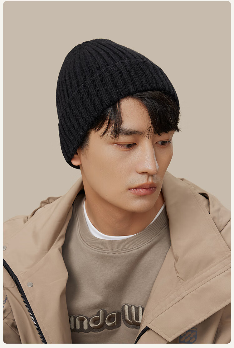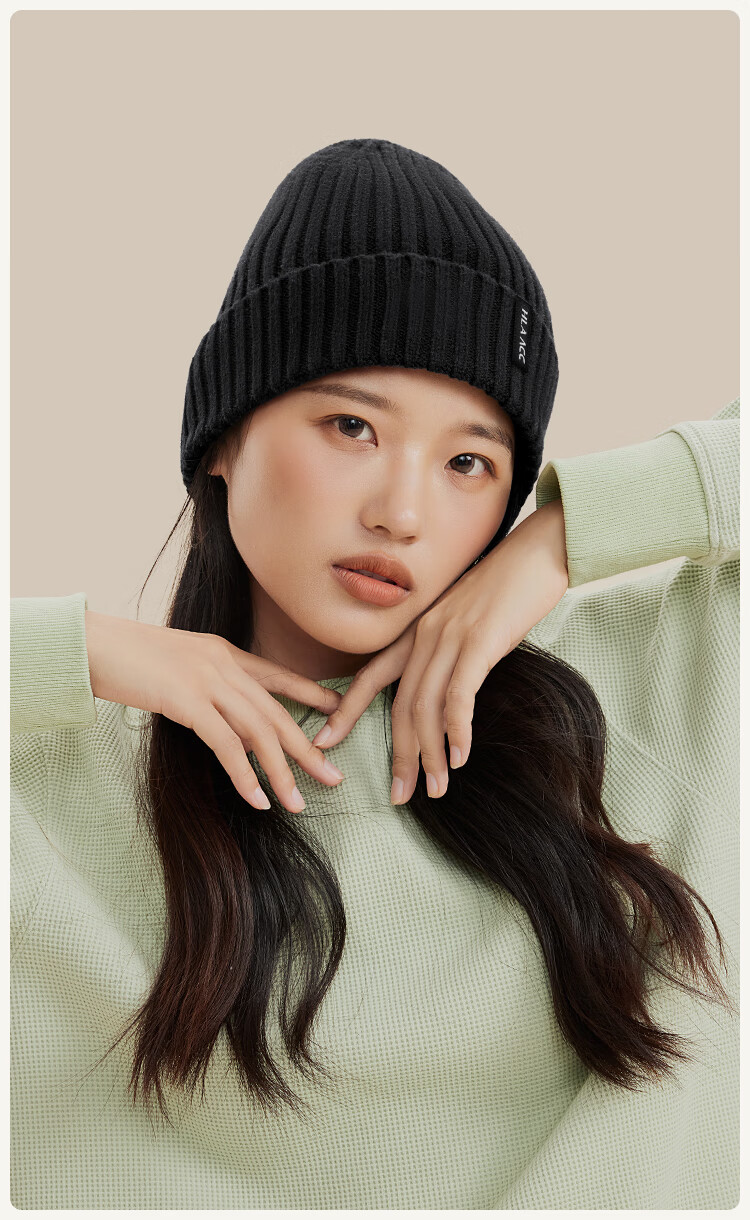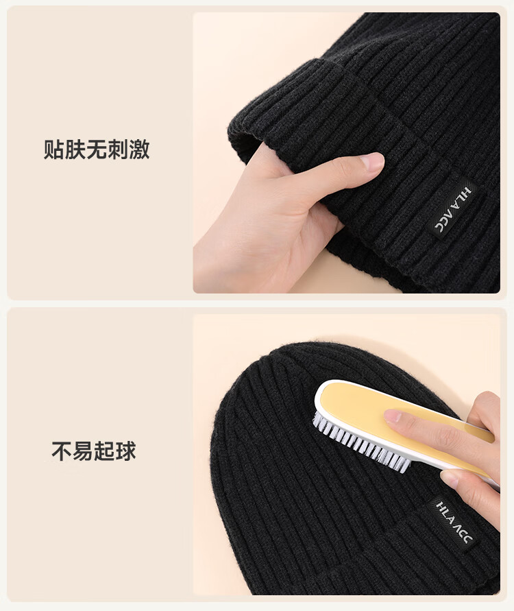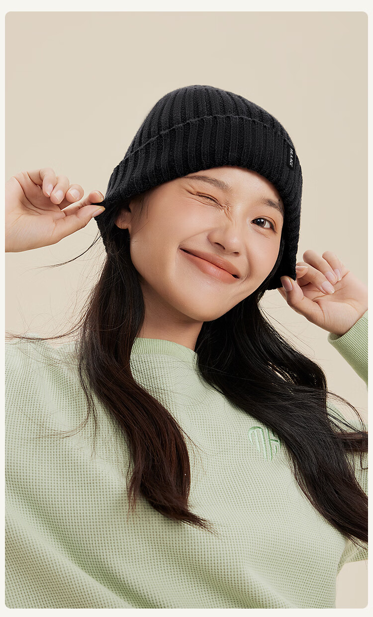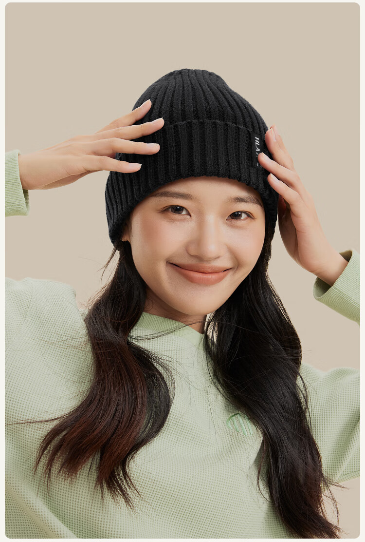 海澜之家(HLA)帽子男士秋冬季保暖加绒毛线针织帽女含羊毛防风防寒 黑色