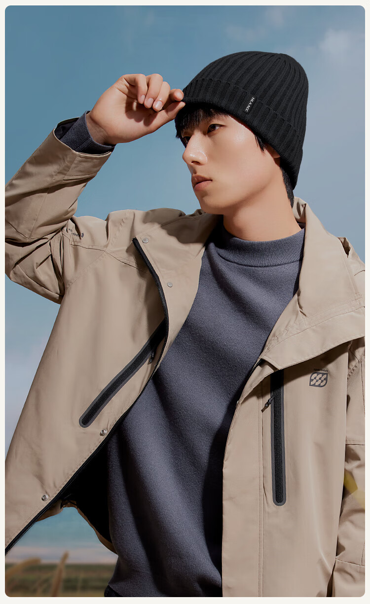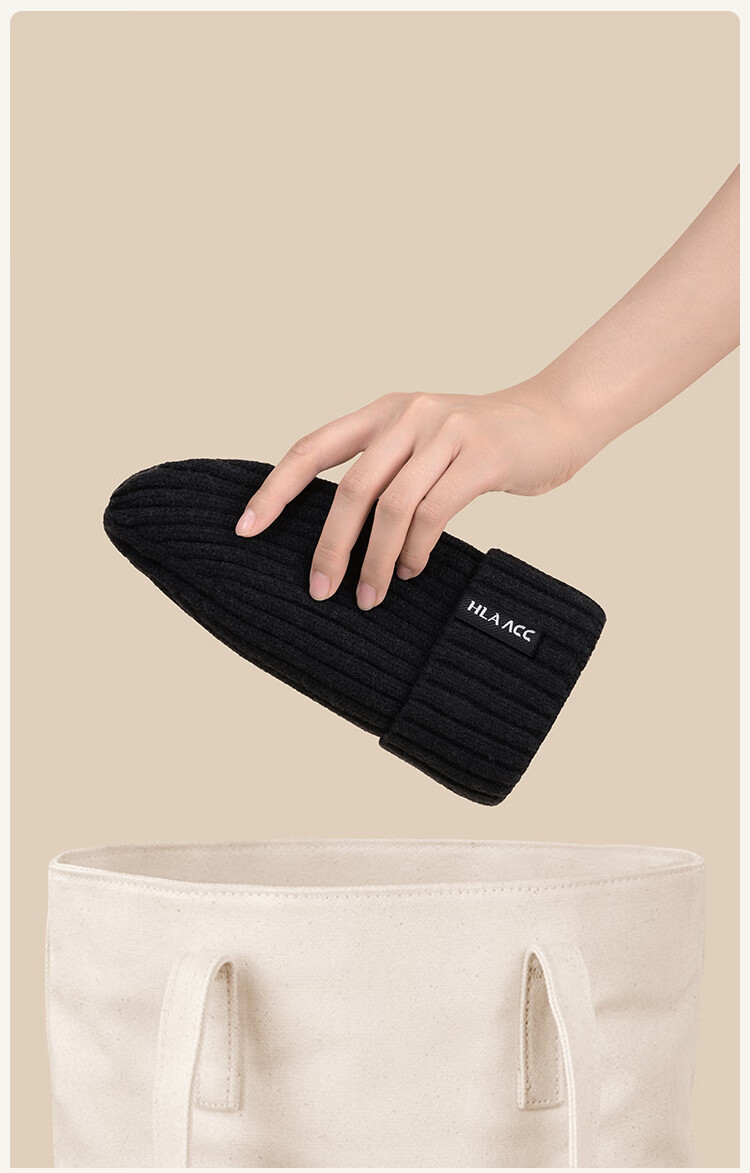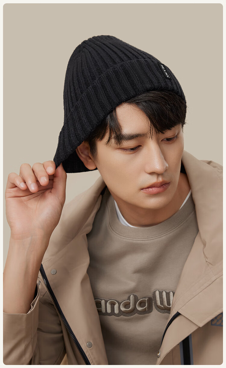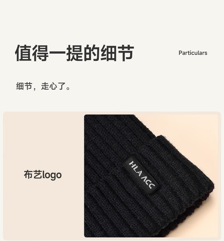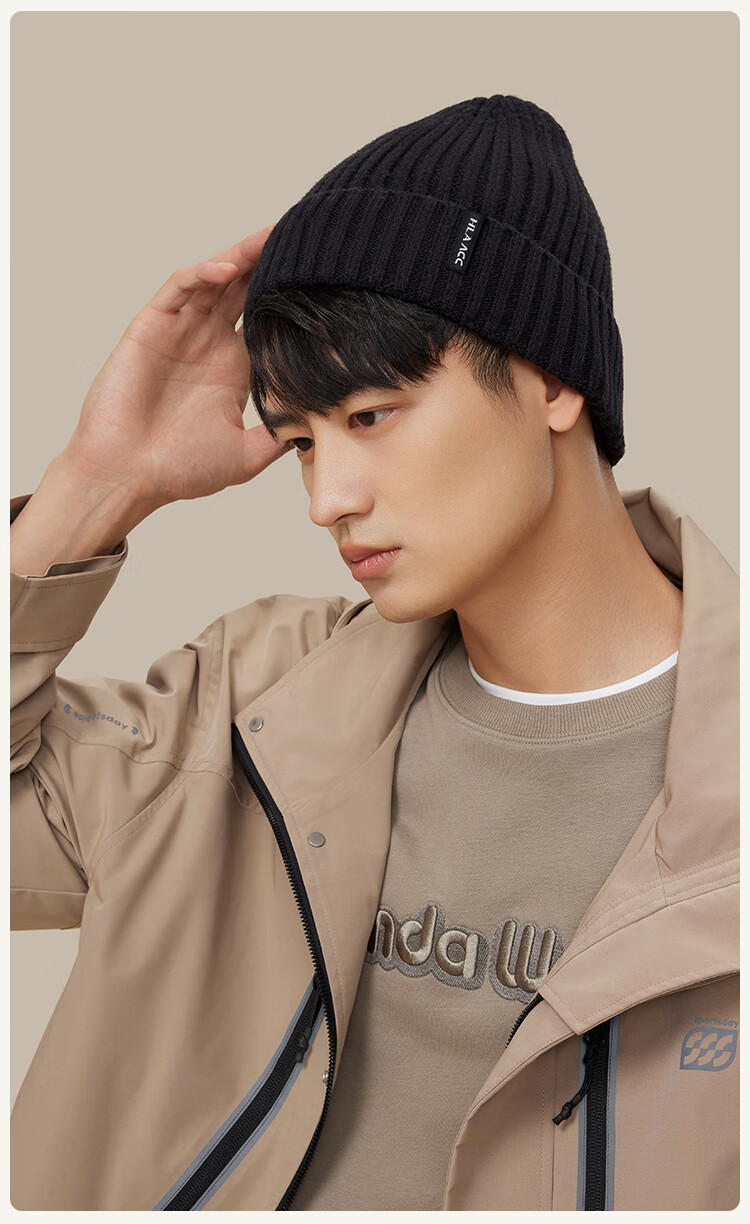 海澜之家(HLA)帽子男士秋冬季保暖加绒毛线针织帽女含羊毛防风防寒 黑色