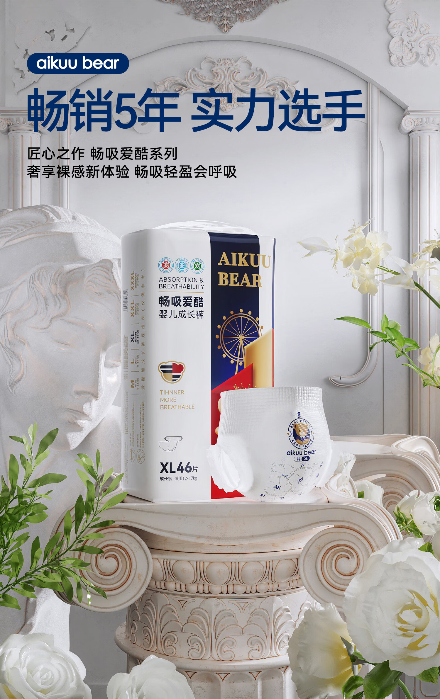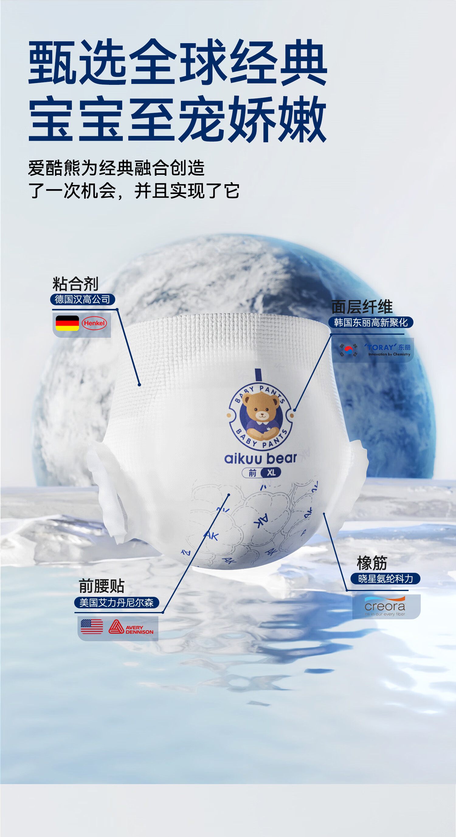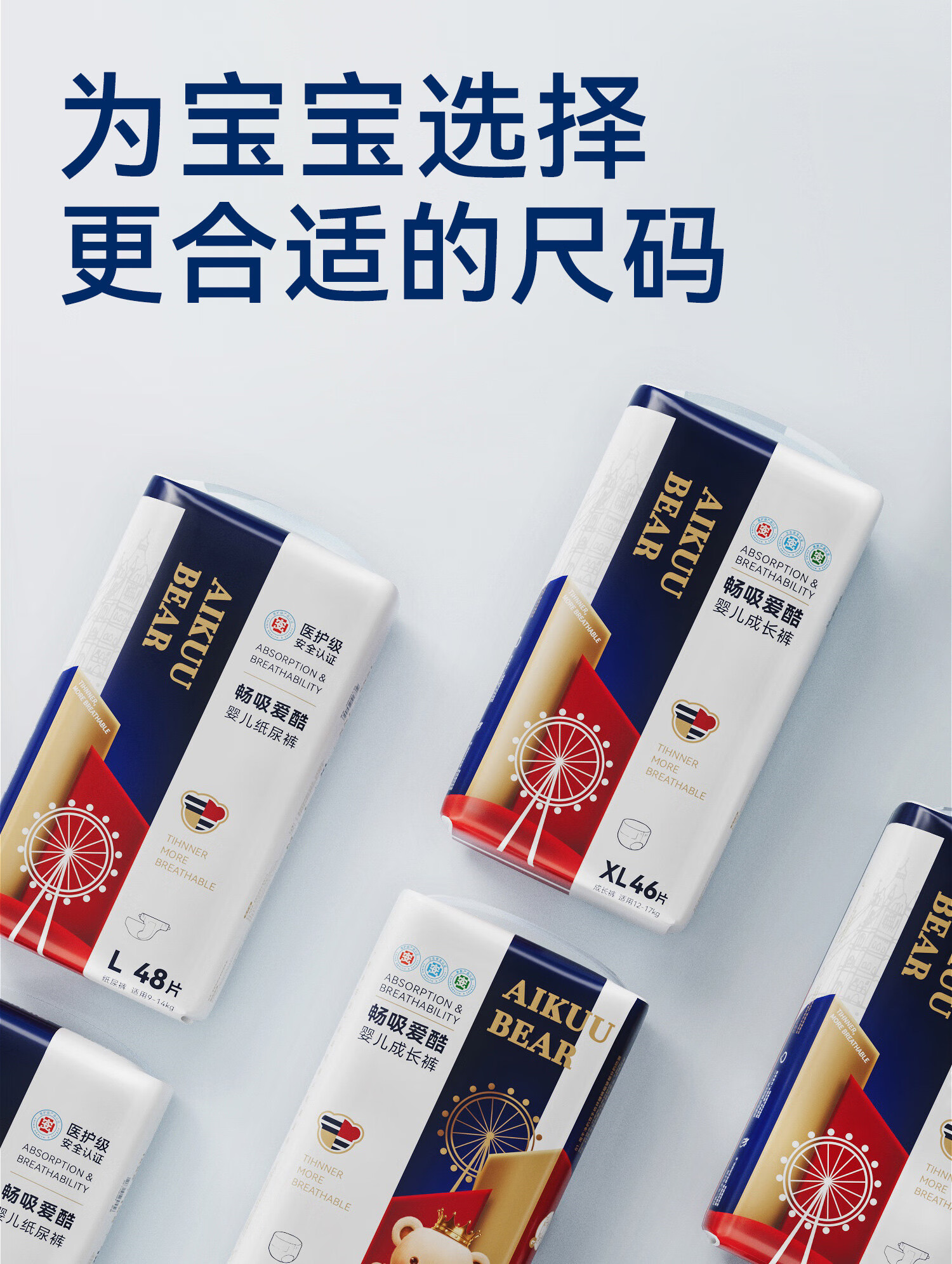 爱酷熊(AIKUUBEAR)畅吸纸尿裤M100片尿不湿新生儿中码超薄大吸量透气尿裤国货精选