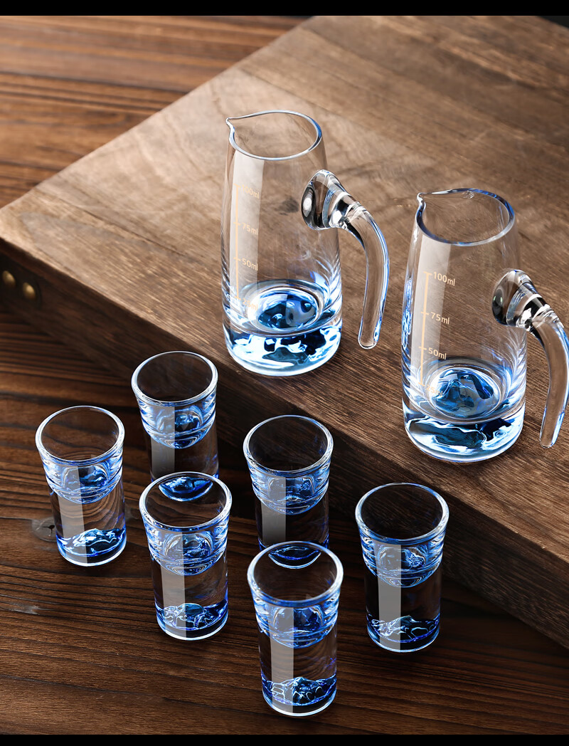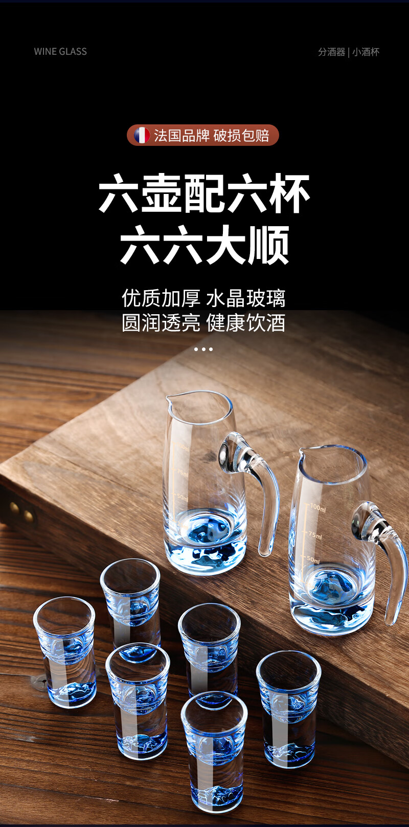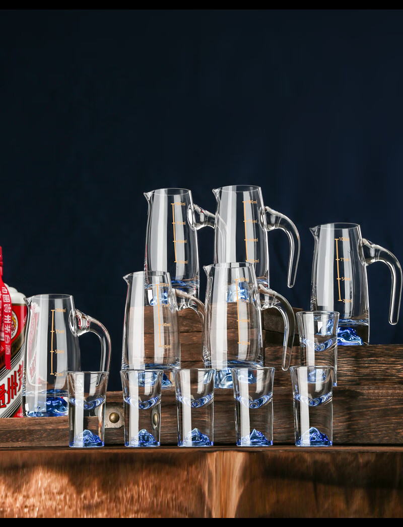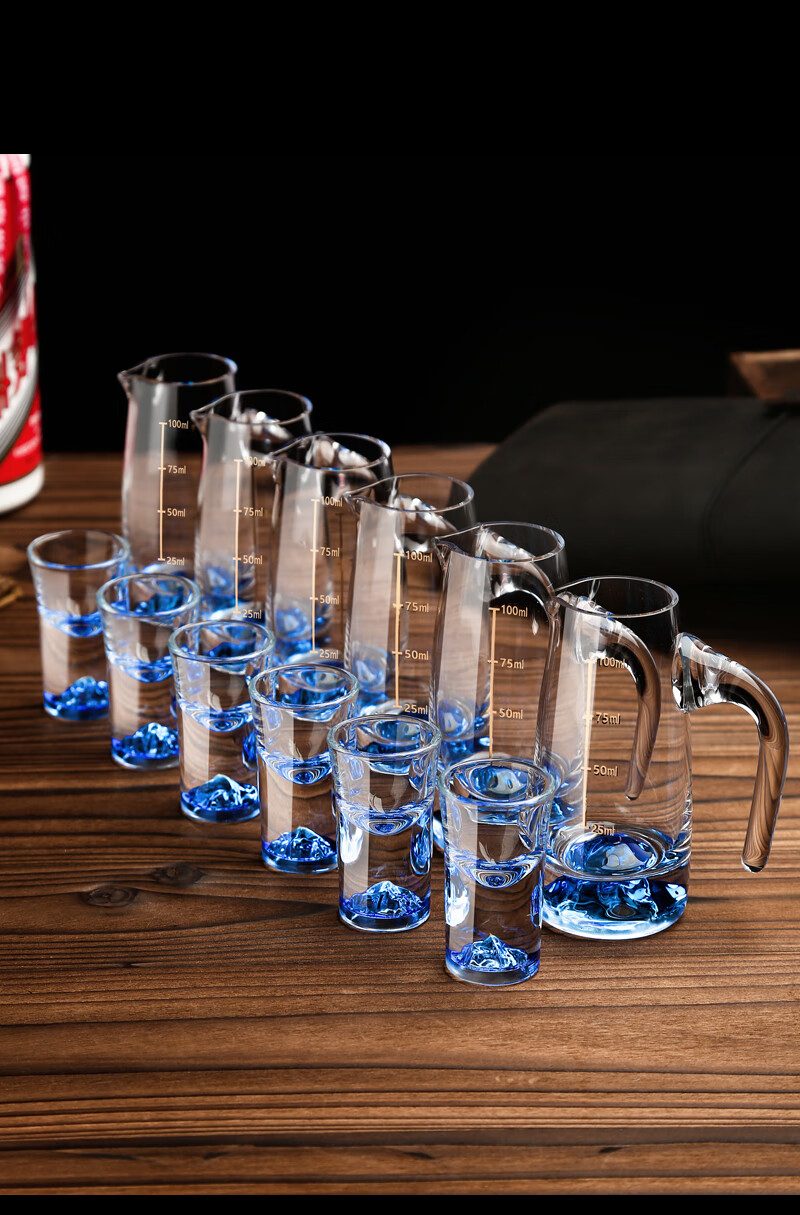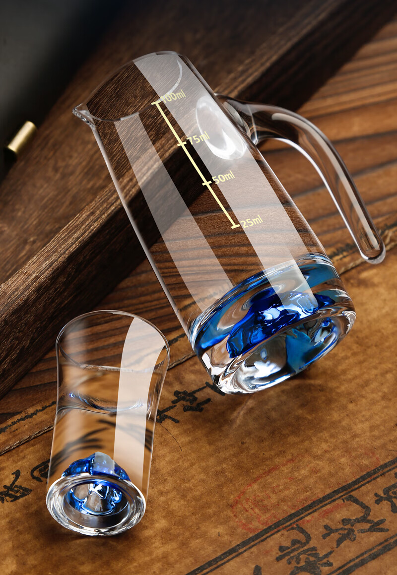 梵卡奇(FANKAQI)蓝色冰山白酒杯分酒器套装家用水晶玻璃带刻度中式酒壶酒具