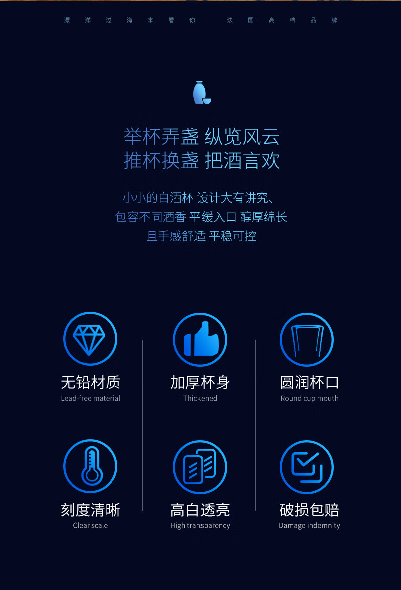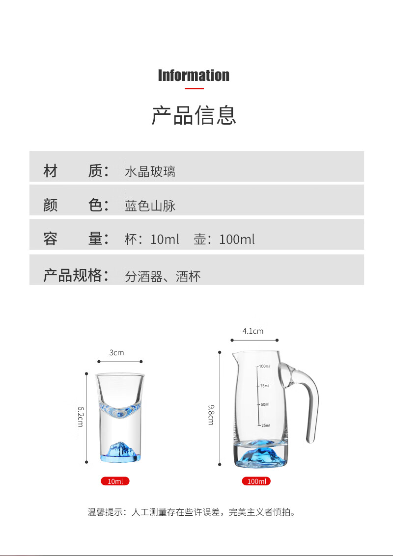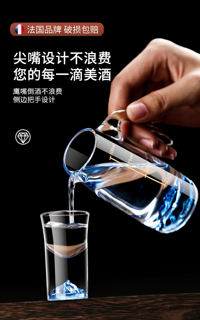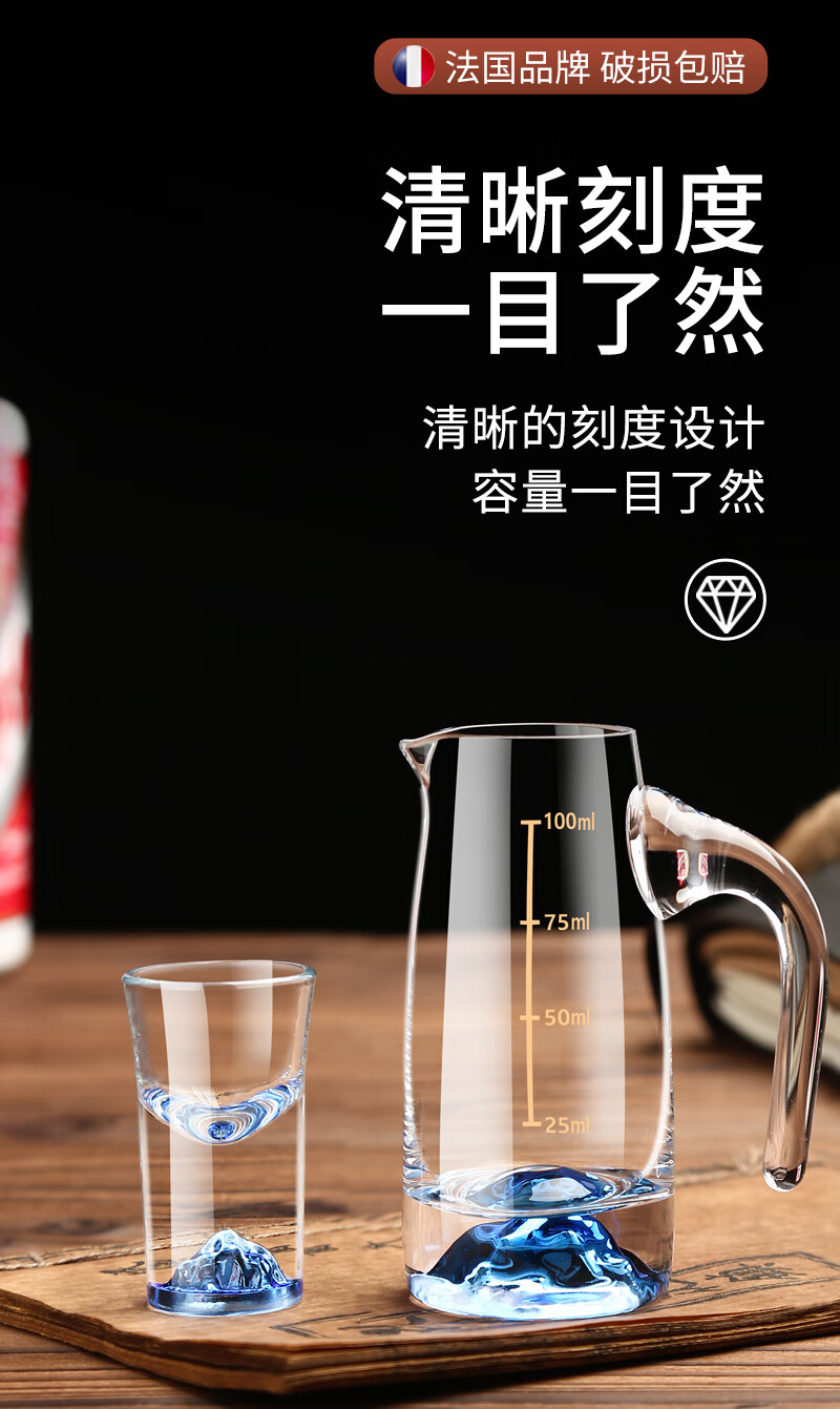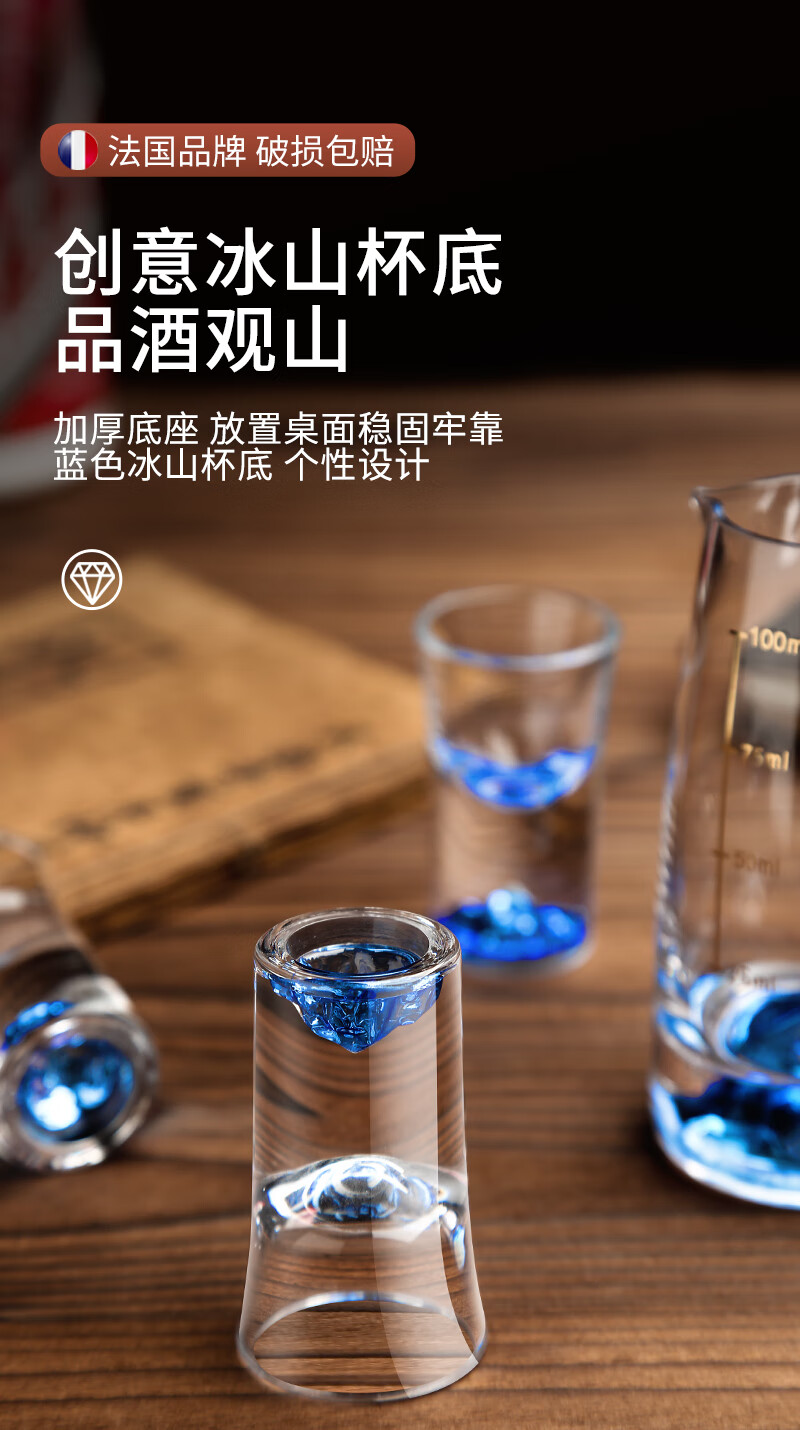 梵卡奇(FANKAQI)蓝色冰山白酒杯分酒器套装家用水晶玻璃带刻度中式酒壶酒具