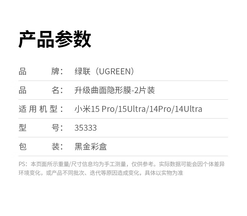 绿联适用小米15Pro/15S Pro/15Ultra手机膜小米14pro/ultra手机膜非钢化隐形软膜高清曲面保护膜