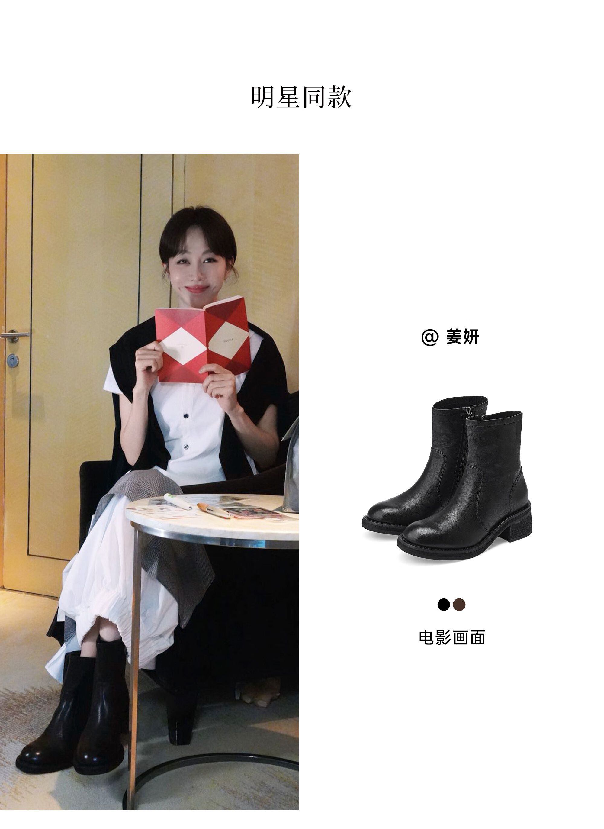 73Hours姜妍同款女鞋电影画面25冬季新款水洗皮切尔西靴弹力靴短靴瘦瘦靴 咖色 【白鹿同款/建议拍大一码】 33
