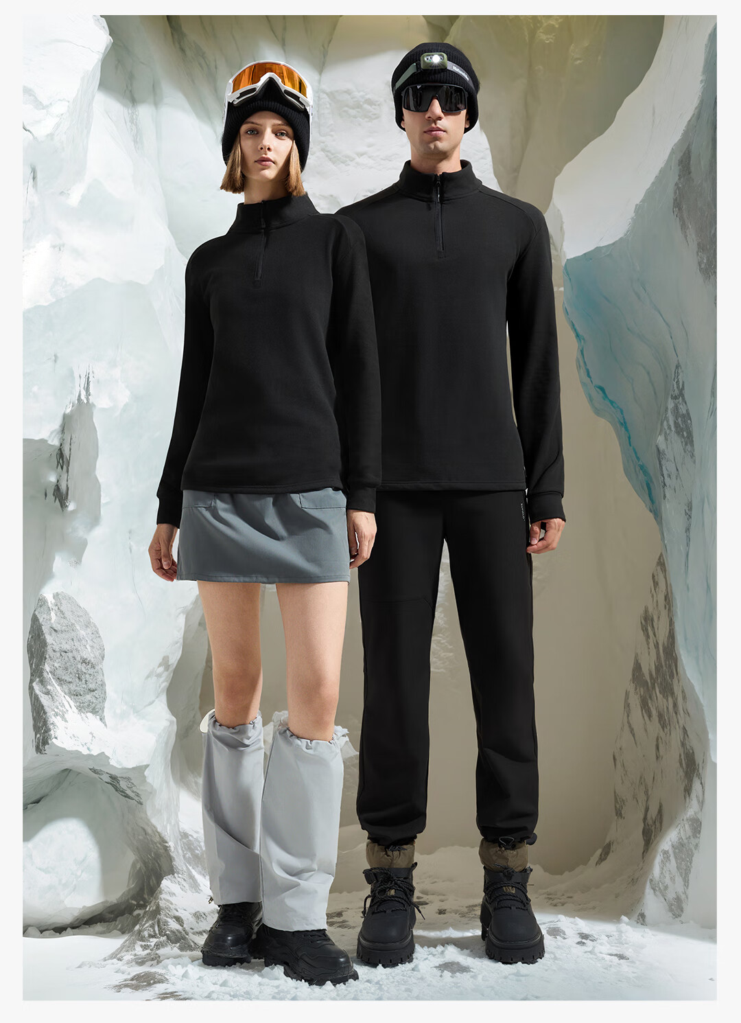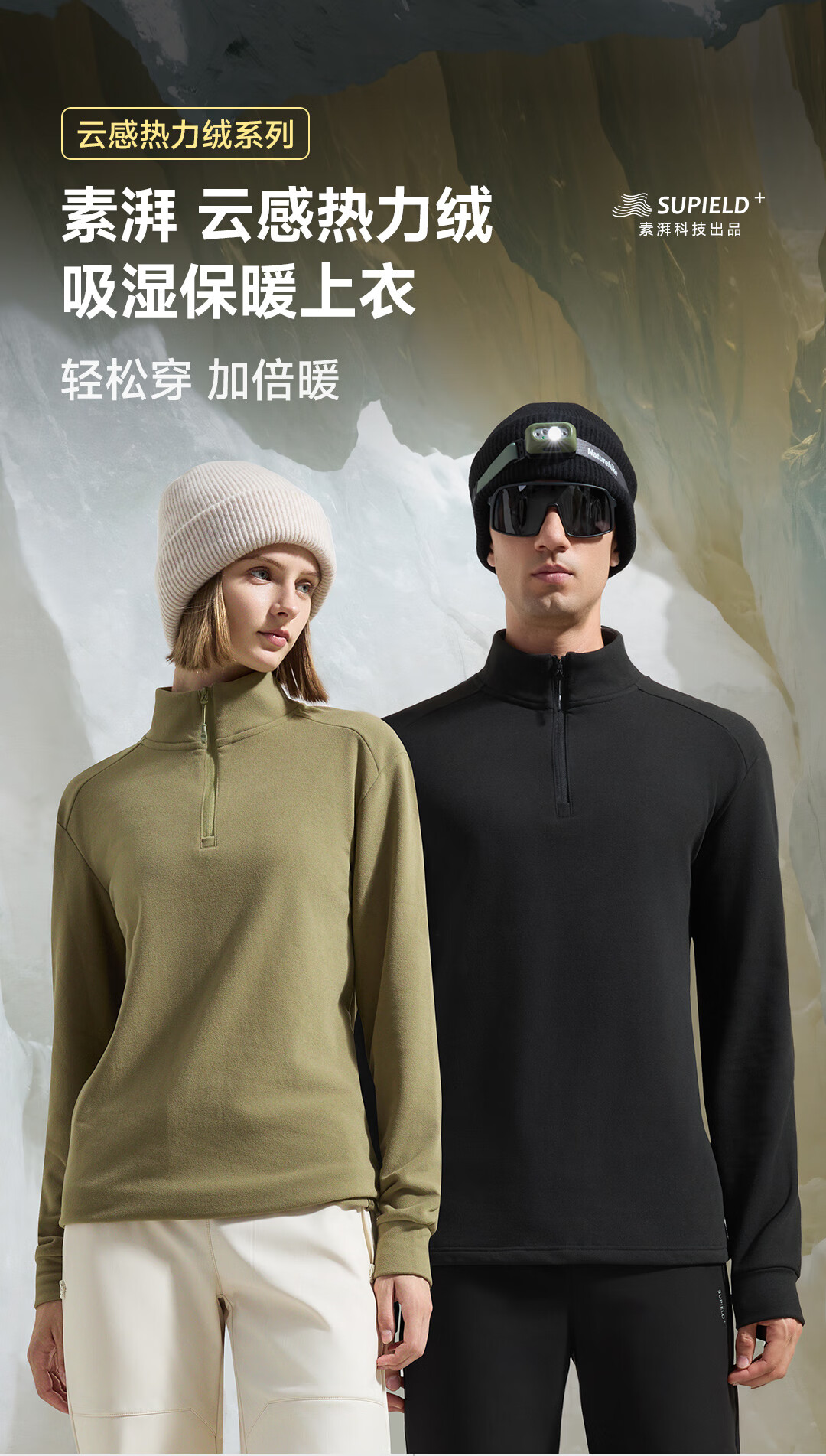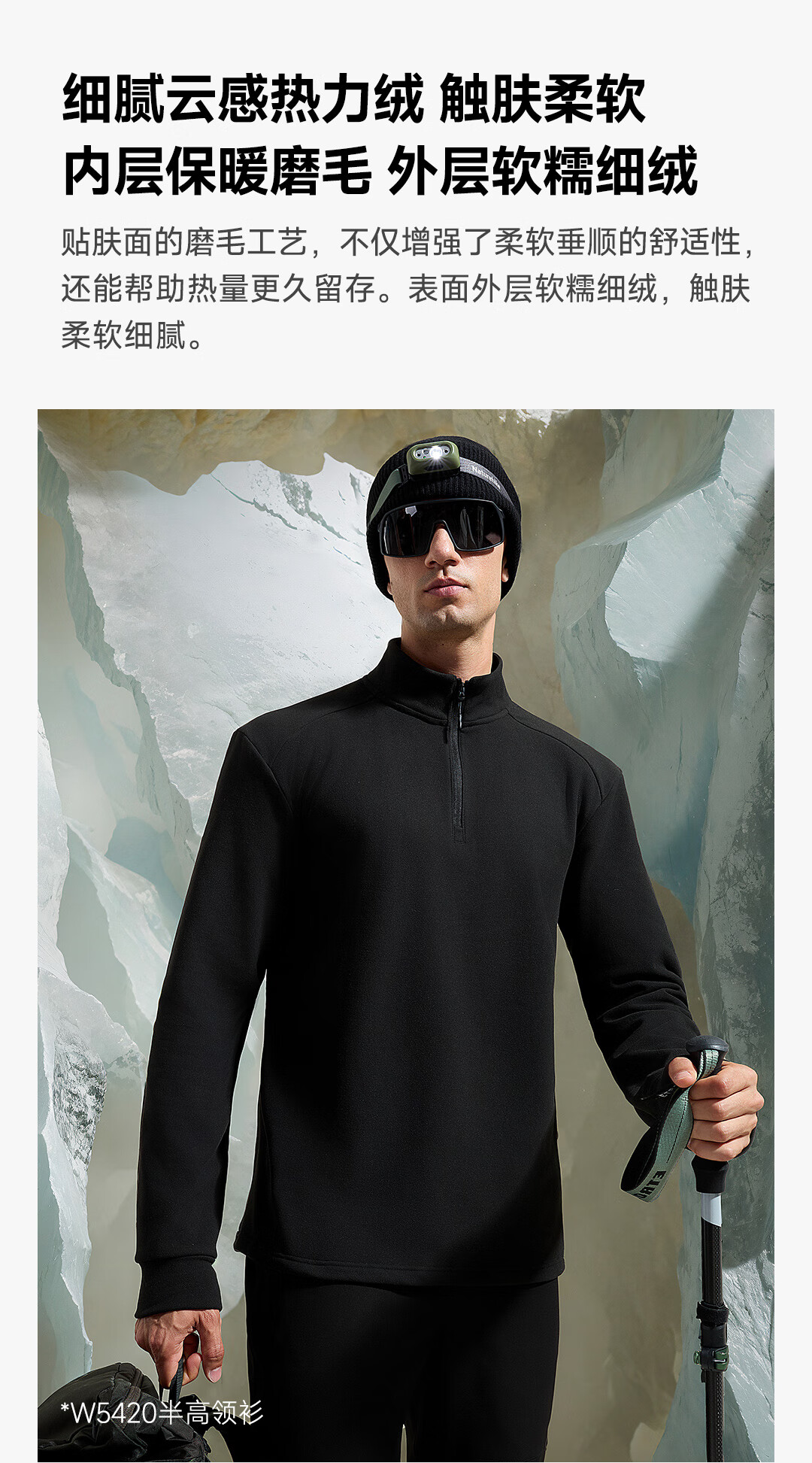 素湃云感热力绒半拉链打底衫户外运动男女秋冬保暖长袖T恤 漫暮黑 L