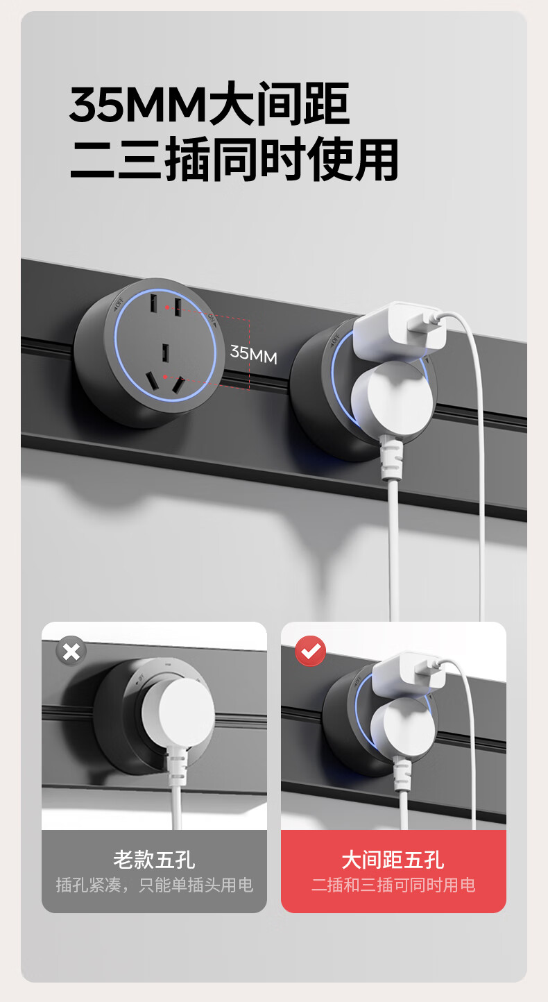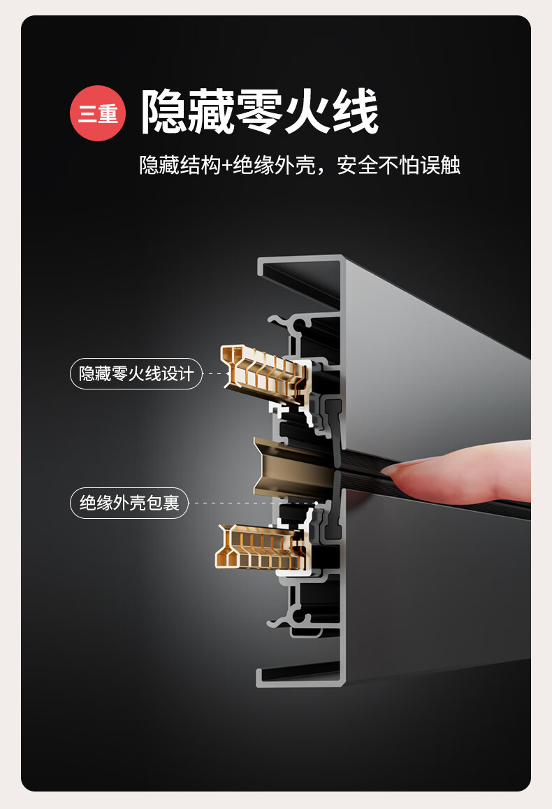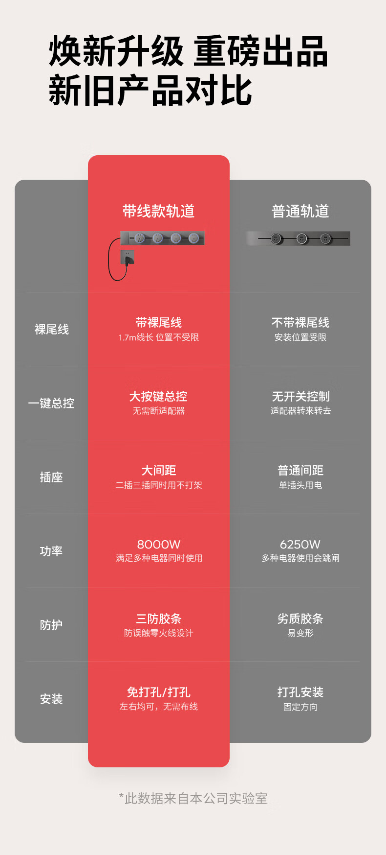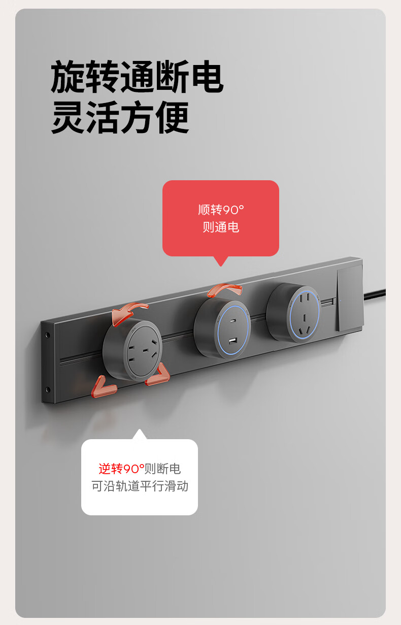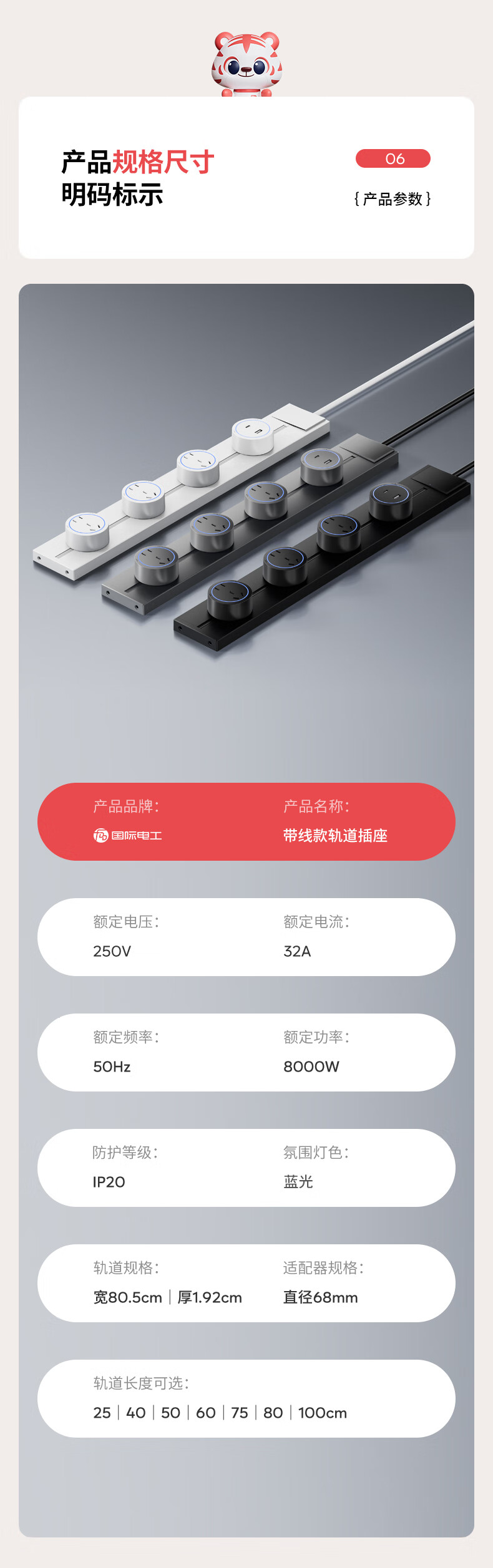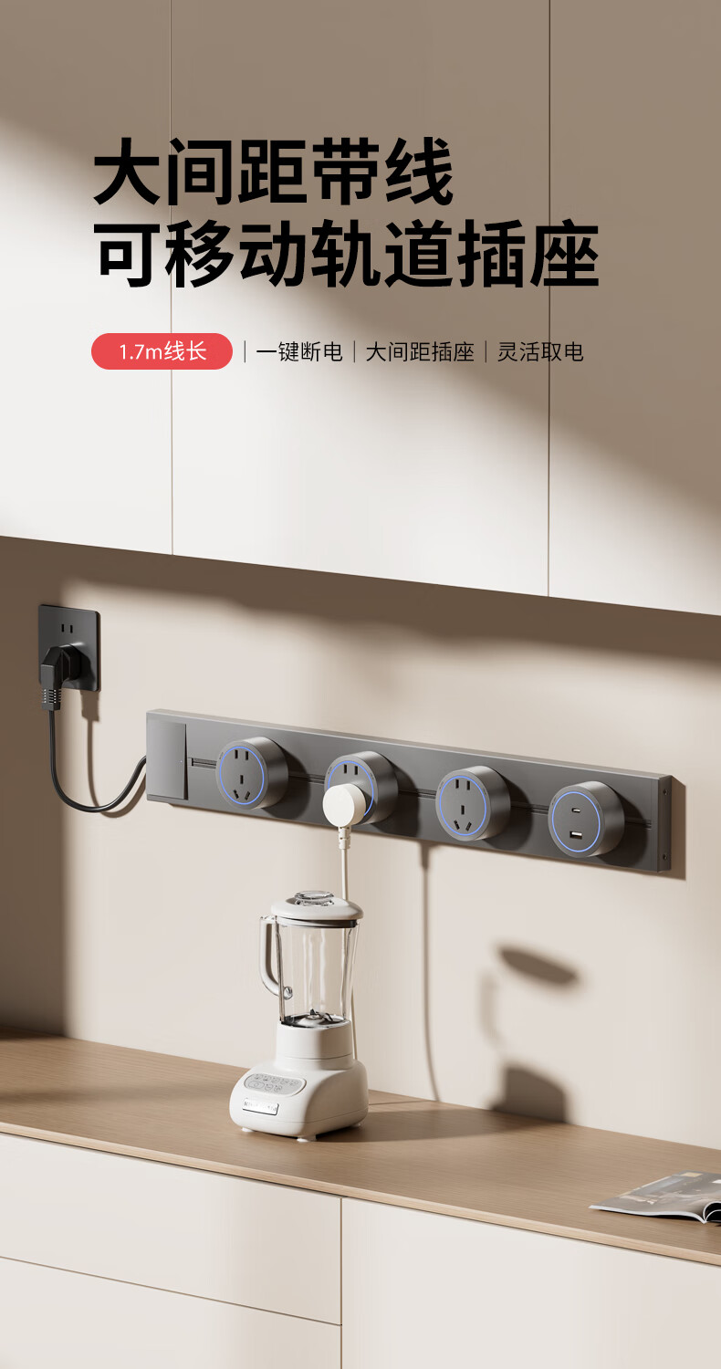 国际电工带线轨道插座带开关总控可移动滑轨插排厨房家用明装电源接线板 白色带线【带开关一键断电】 40厘米轨道+3个大五孔【线长1.7米】