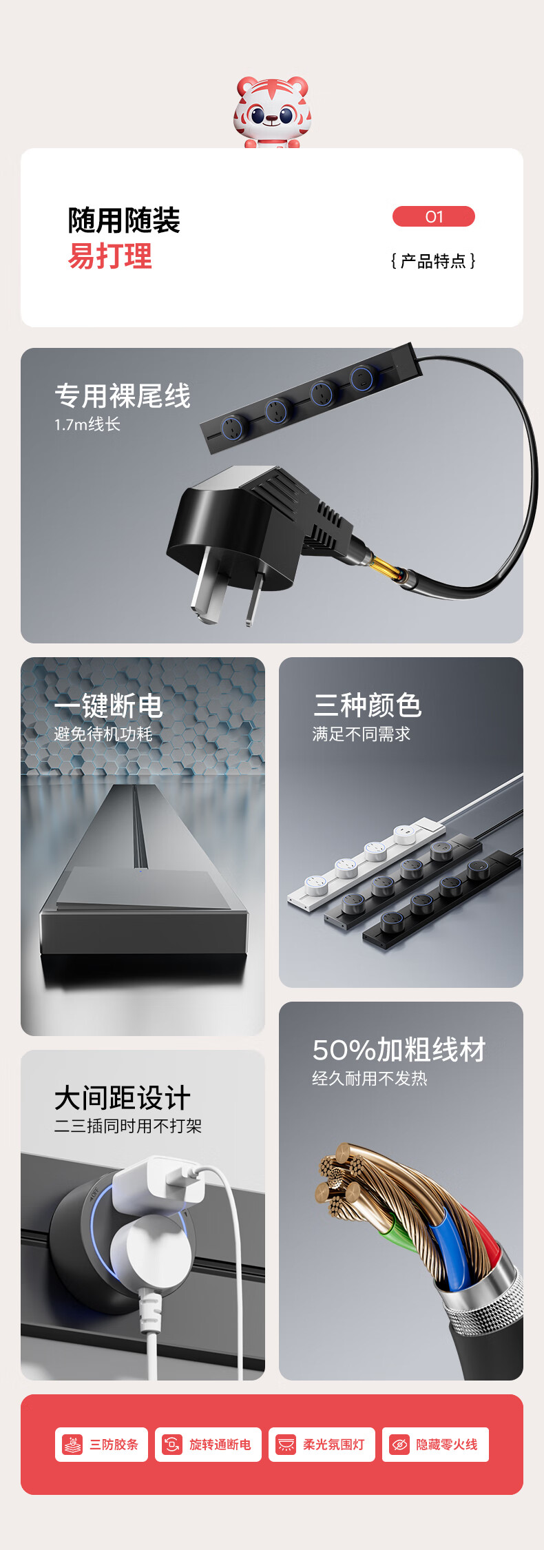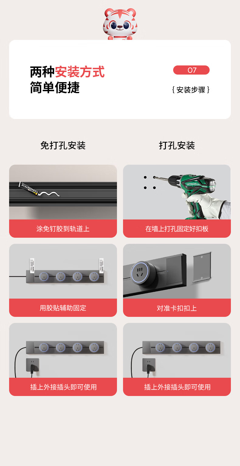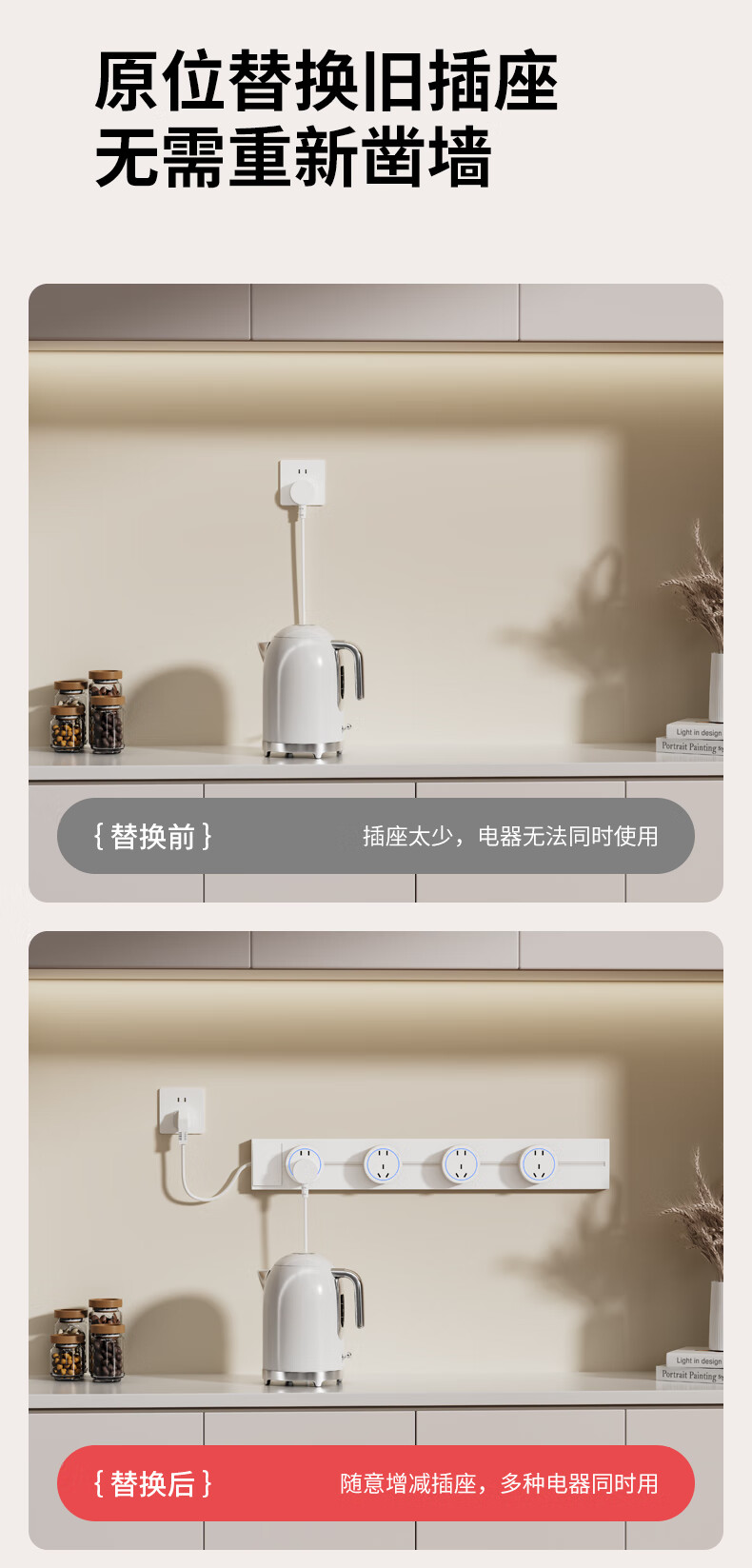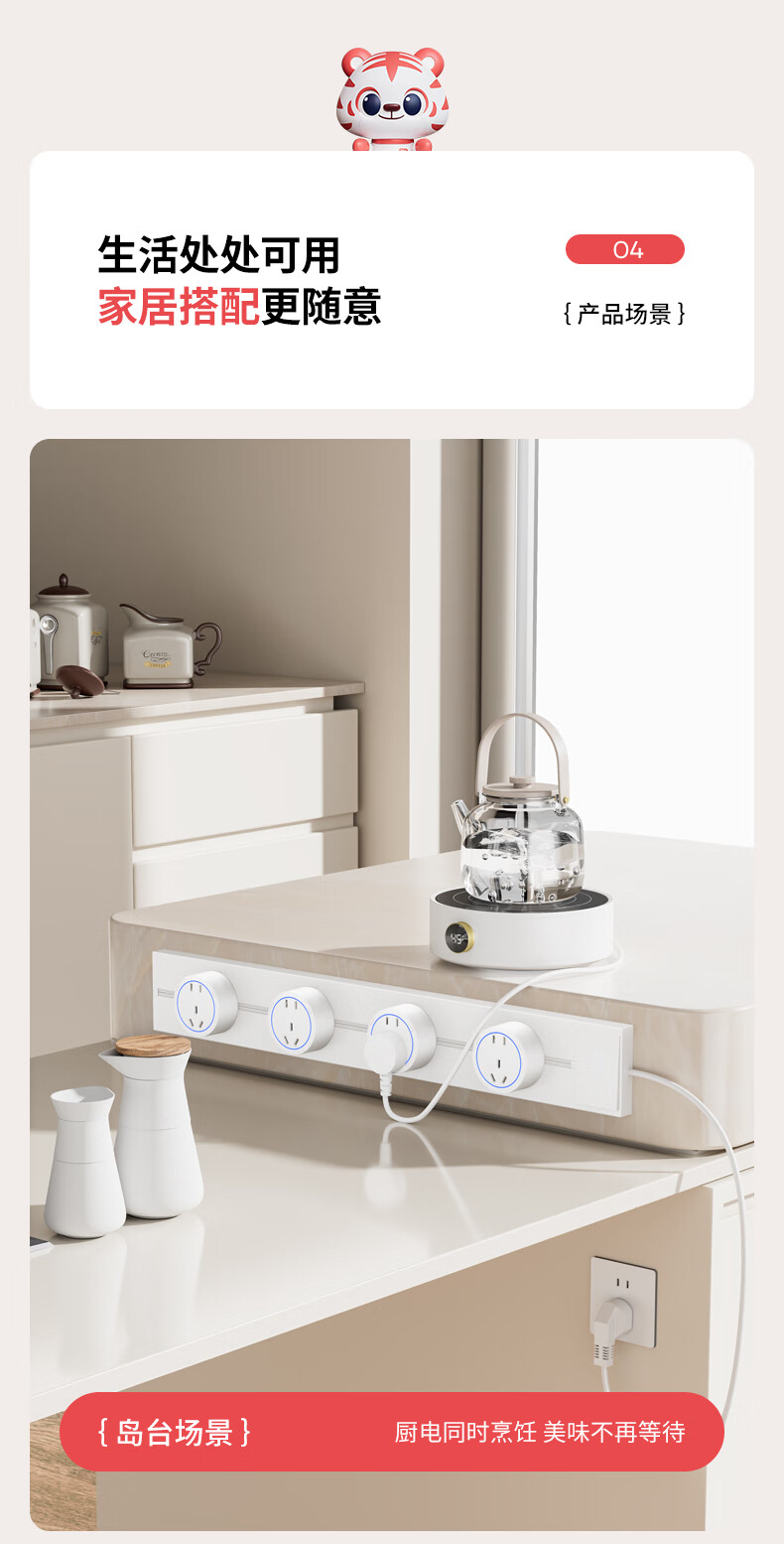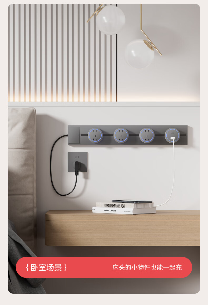 国际电工带线轨道插座带开关总控可移动滑轨插排厨房家用明装电源接线板 白色带线【带开关一键断电】 40厘米轨道+3个大五孔【线长1.7米】