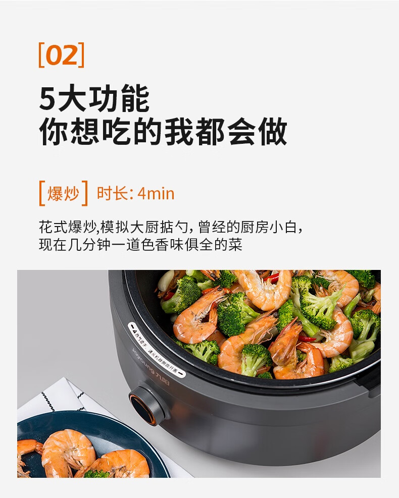 九阳(Joyoung)炒菜机机器人家用多用途锅电炒锅自动翻炒无油烟精准控温智能烹饪不粘内胆
