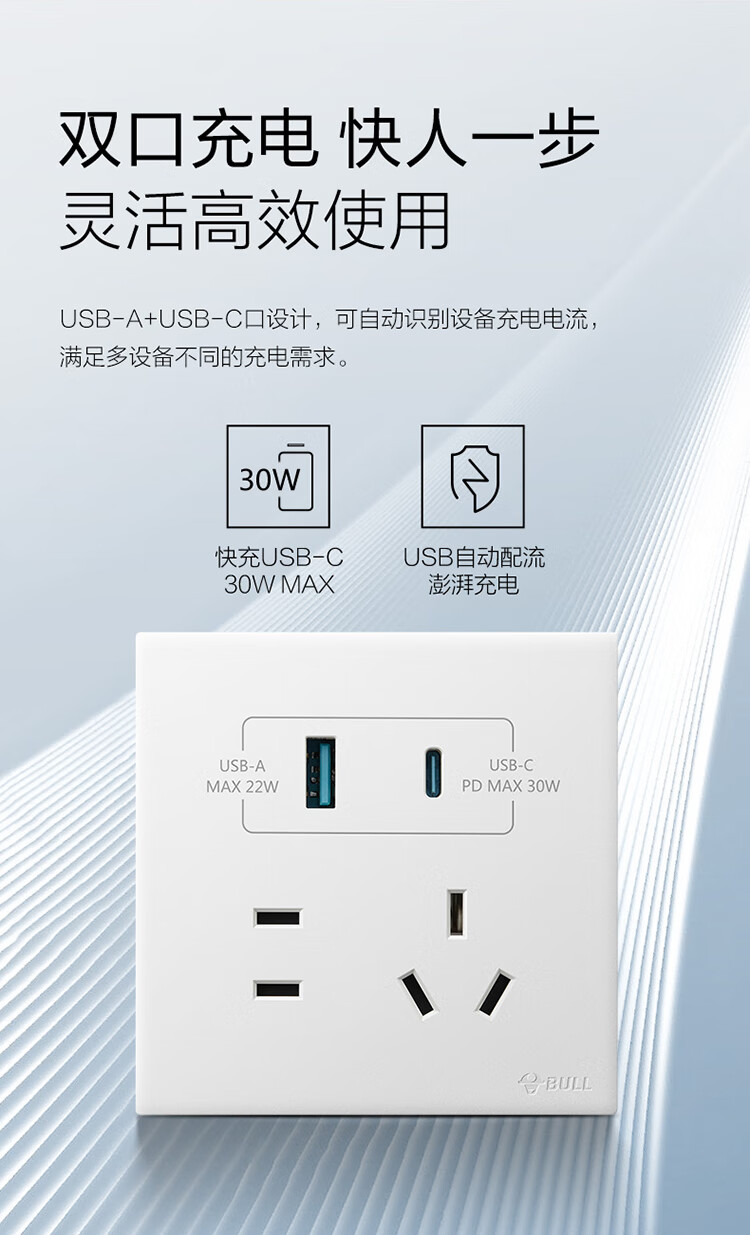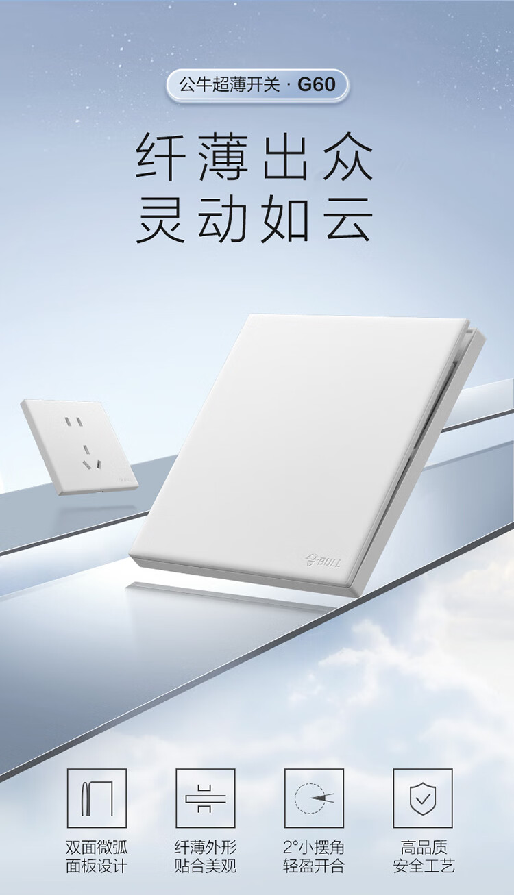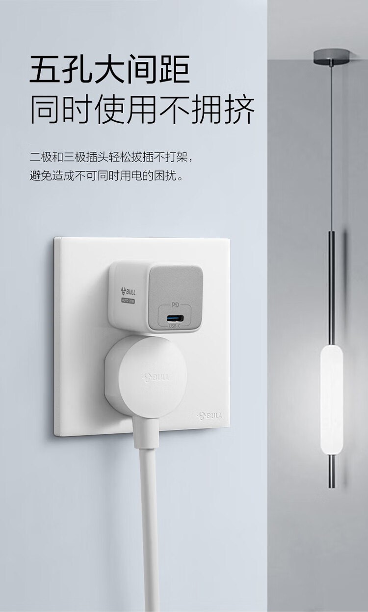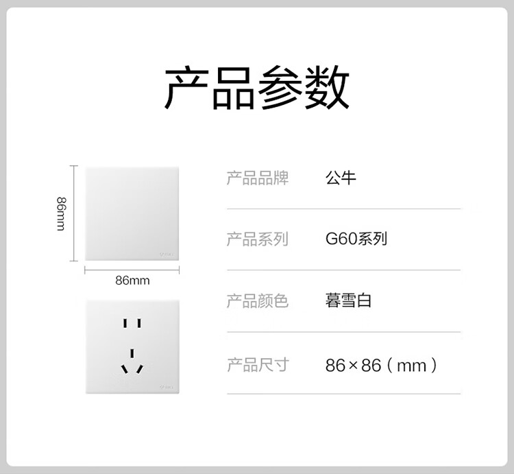 公牛(BULL)开关插座 G60系列10A斜五孔插座超薄插座面板G60Z223A暮雪白