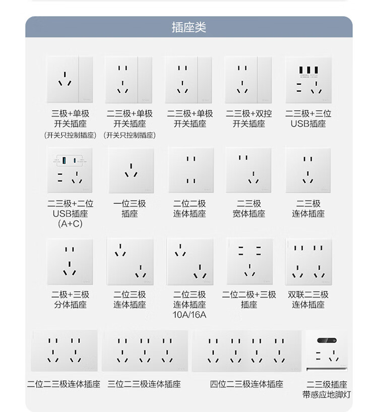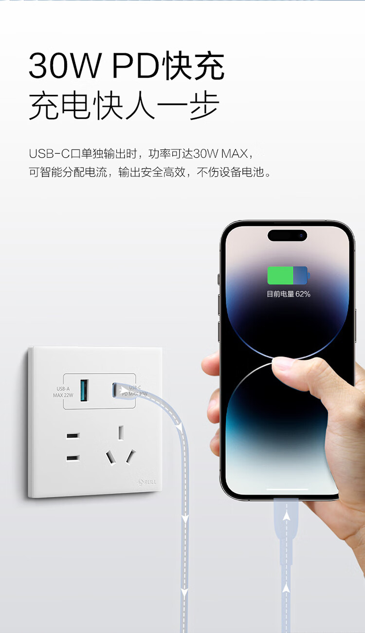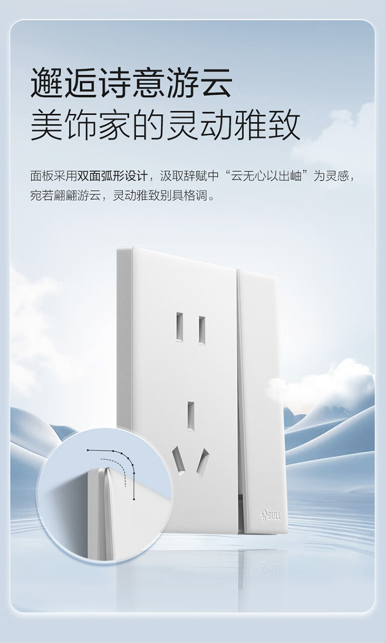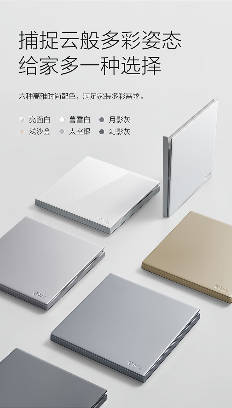 公牛(BULL)开关插座 G60系列10A斜五孔插座超薄插座面板G60Z223A暮雪白