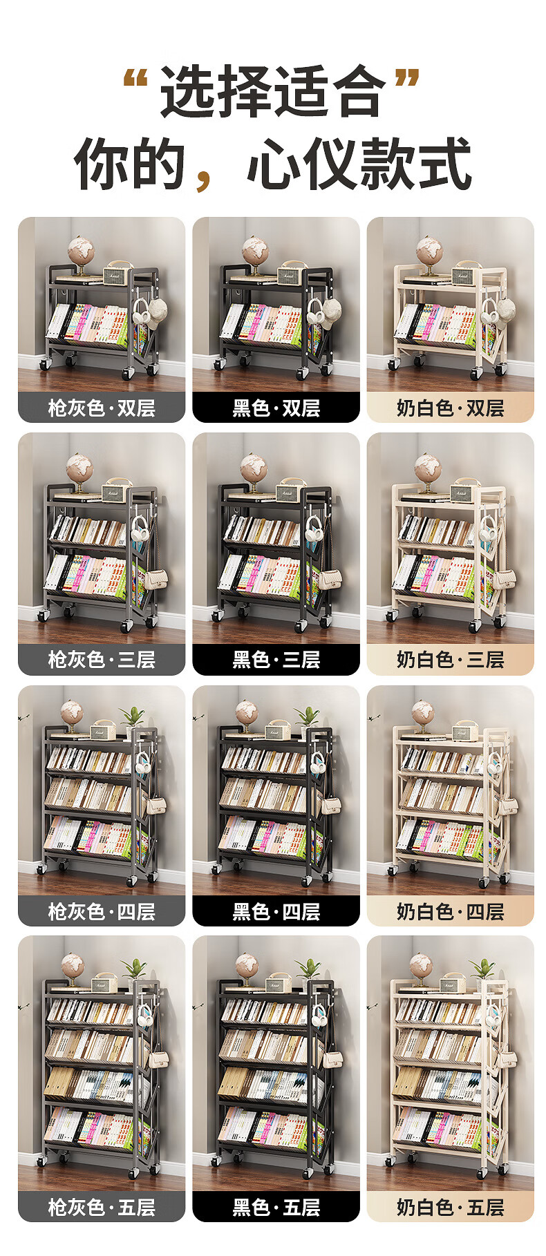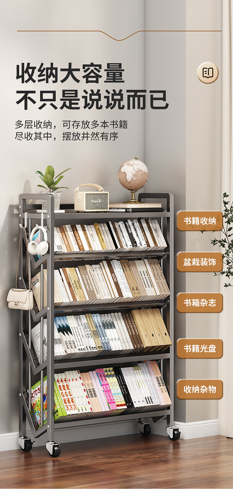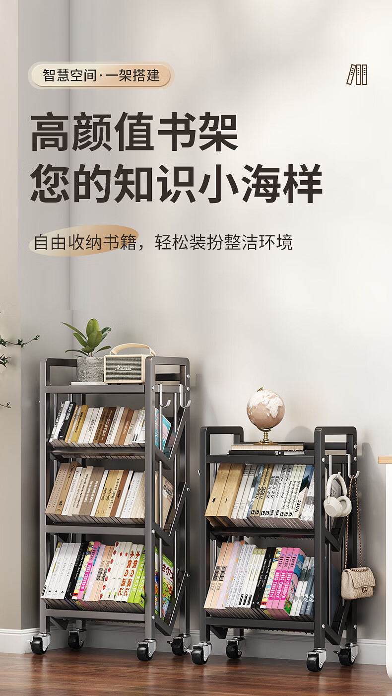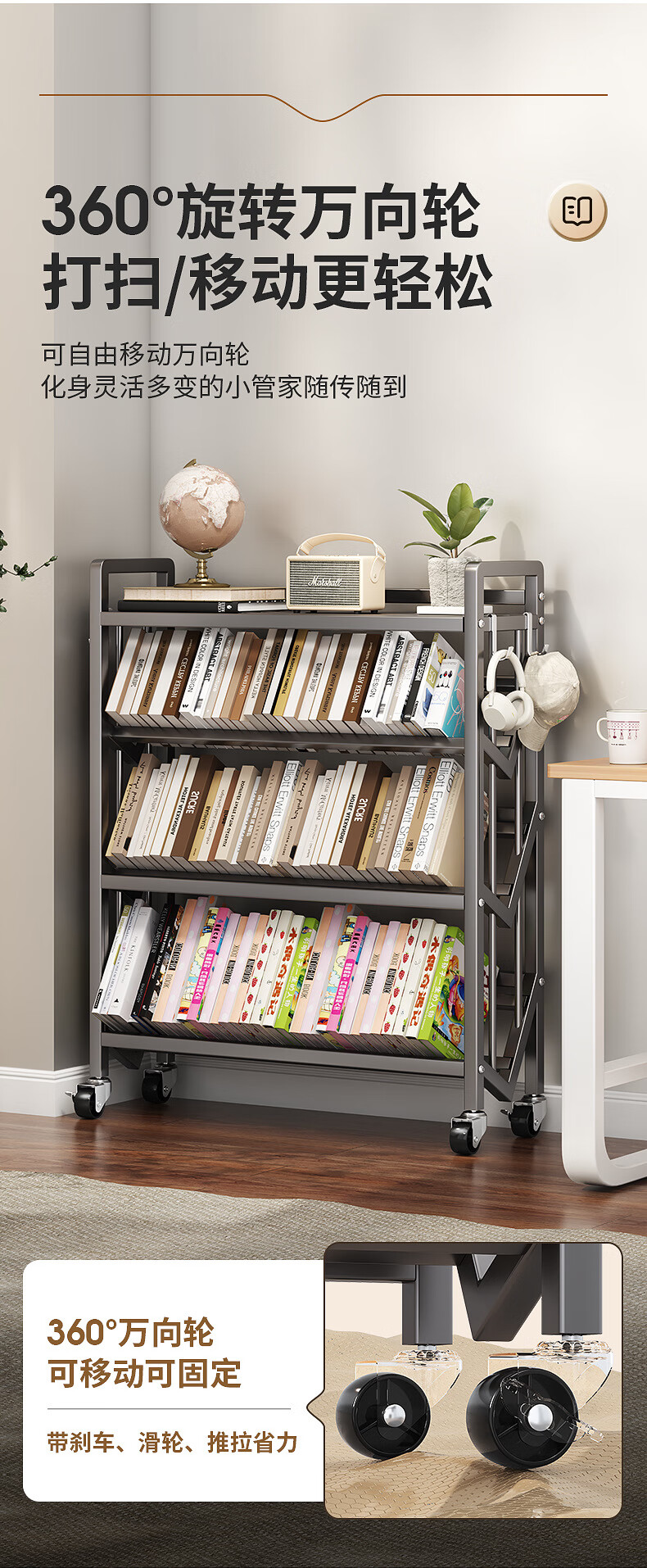 DSRAWMYT书架 落地置物架带轮一体靠墙移动儿童书本多层铁艺储物收纳柜