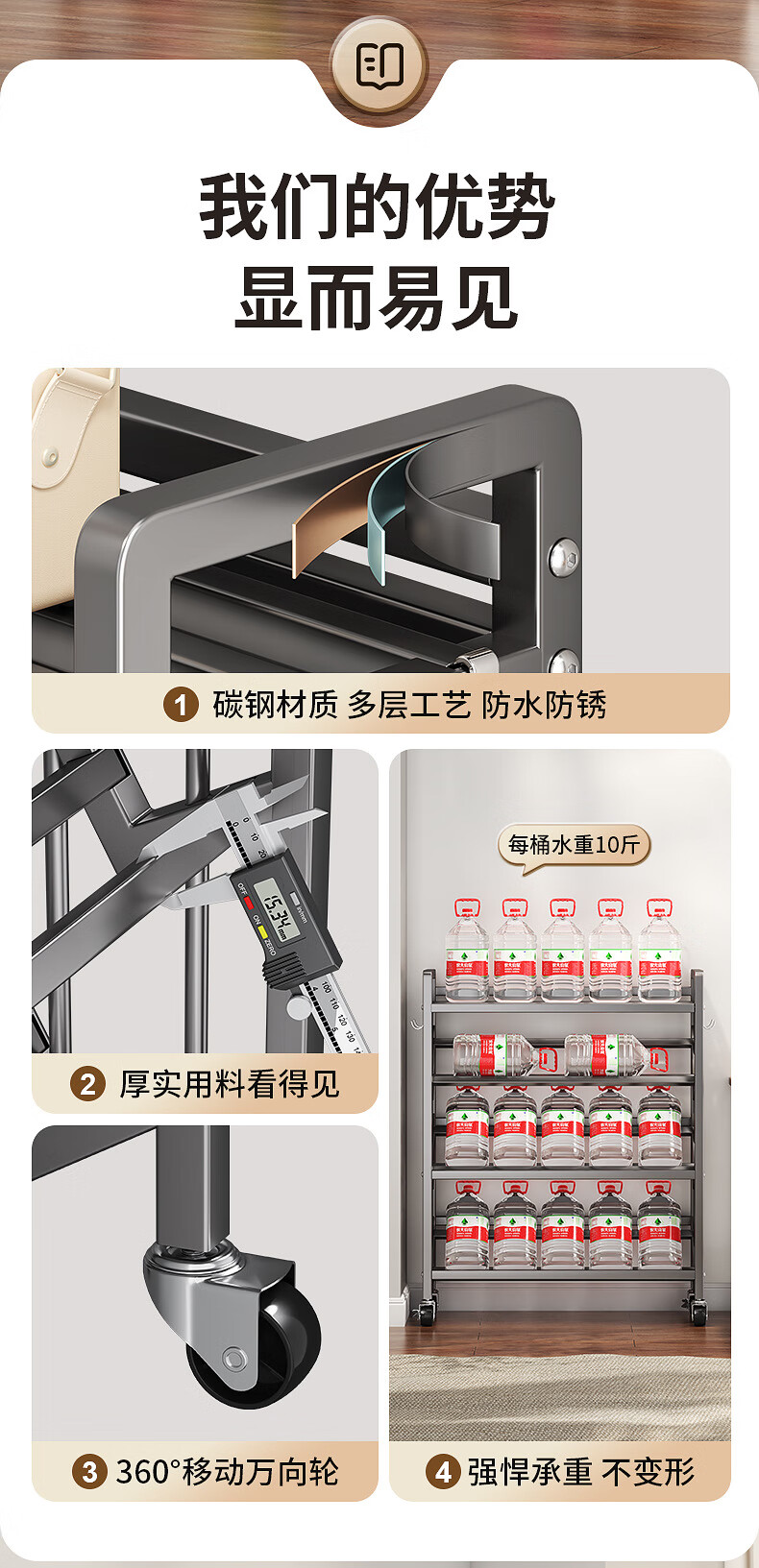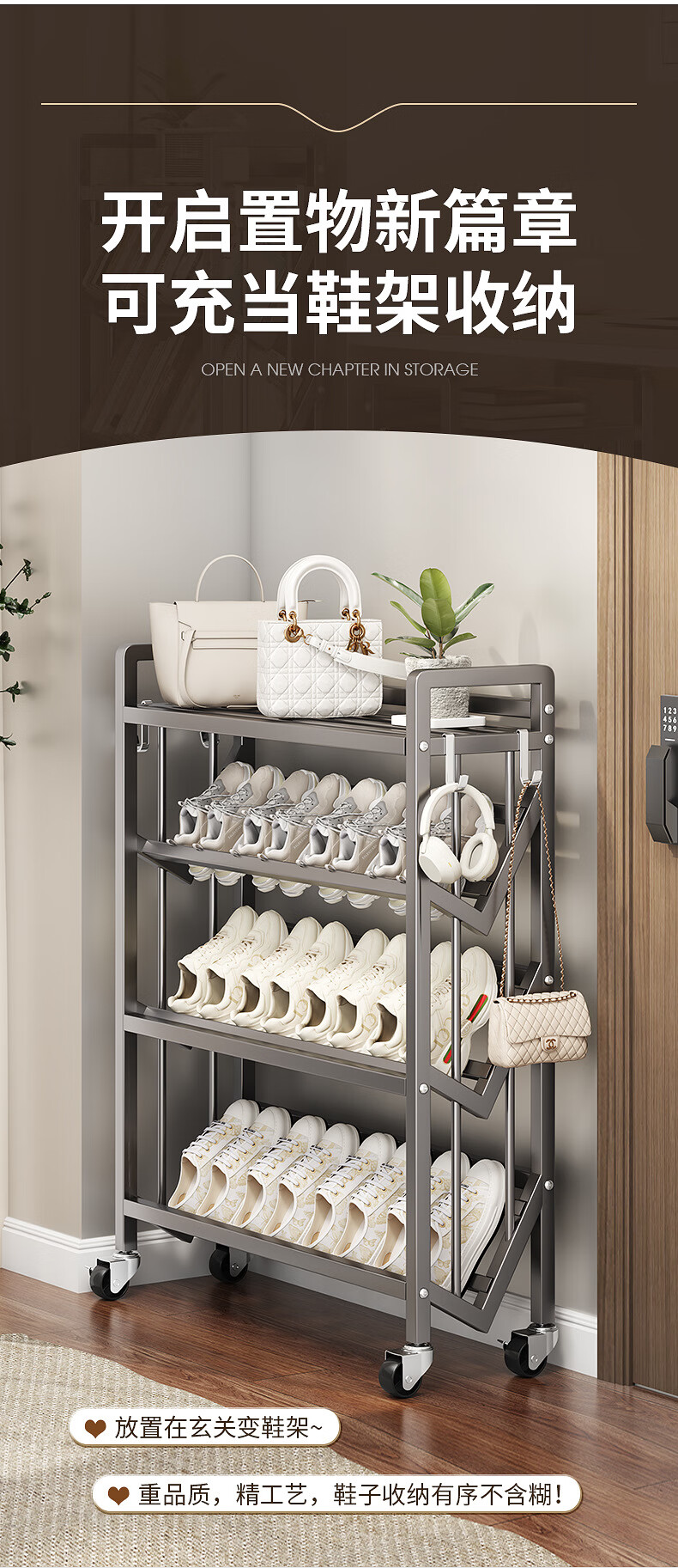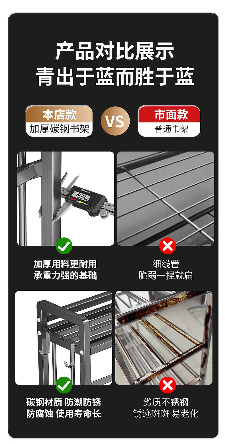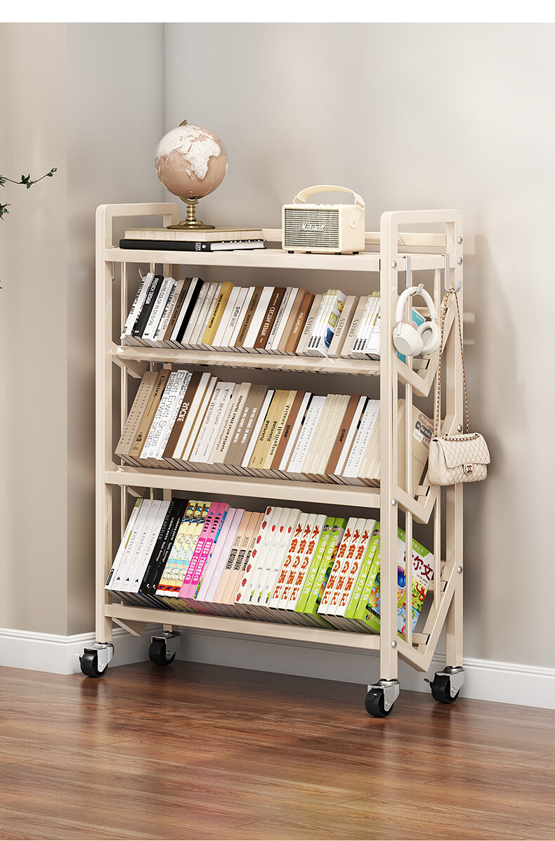 DSRAWMYT书架 落地置物架带轮一体靠墙移动儿童书本多层铁艺储物收纳柜